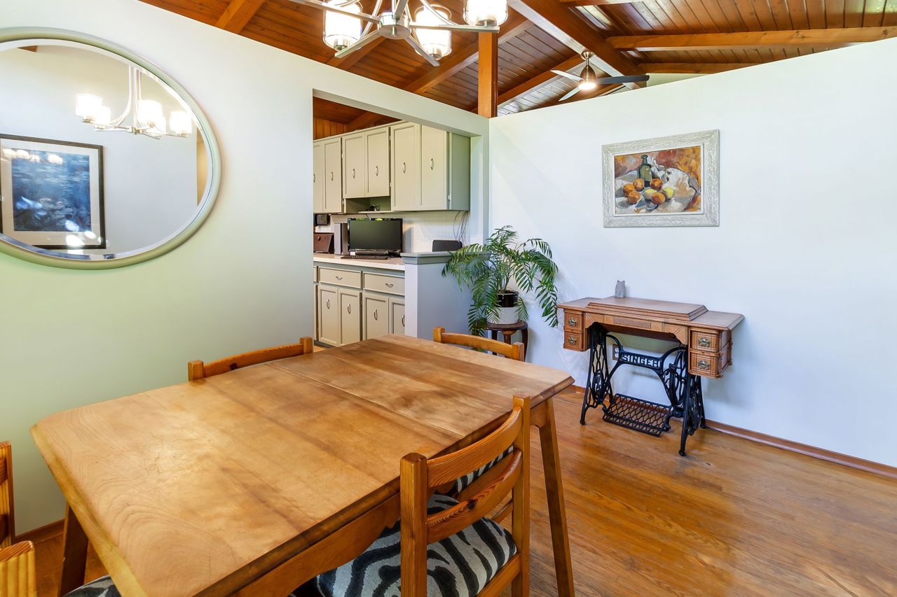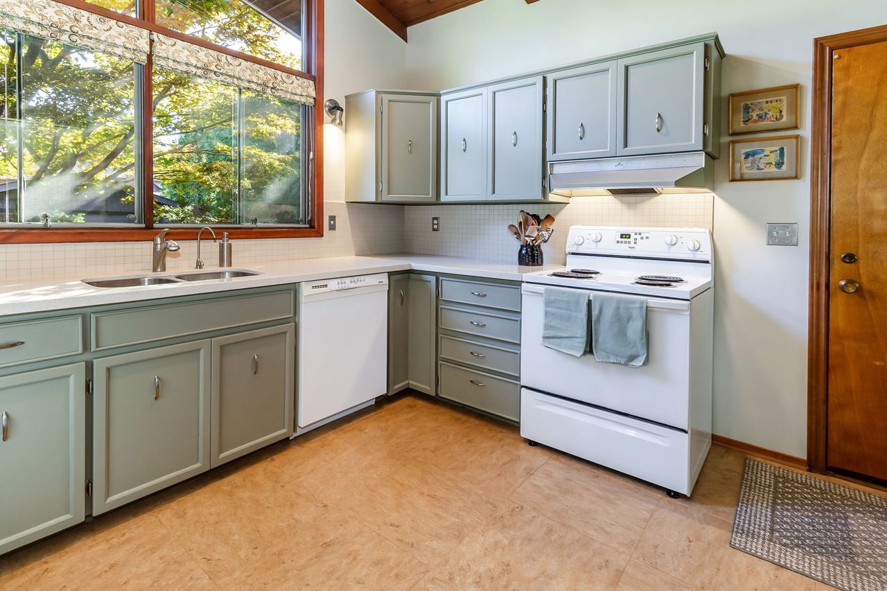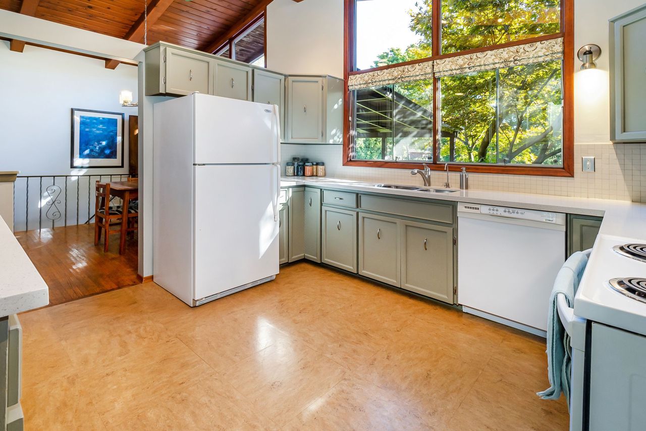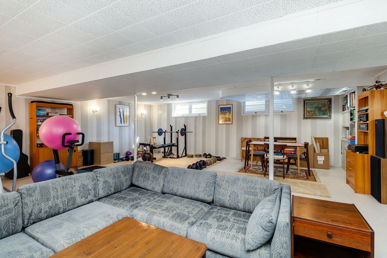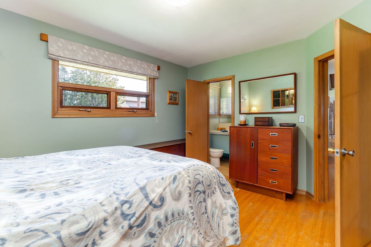 Nestled in the trees on a large 73 x 200 ft lot, this mid-century bungalow is anything but cookie-cutter! Lovingly maintained by the same family since 1986, this home offers loads of original charm. Main floor boasts original hardwood floors, with stunning 12-1/2" vaulted ceilings made from 2 x 6 cedar planks and Fir beams from B.C. Enjoy cold winter nights around the floor to ceiling angelstone fireplace surrounded by large windows that bring the outside in. The kitchen has been updated to fit with that original aesthetic, while offering modern finishes including beautiful quartz counters!. Three good-sized bedrooms provides room for the entire family, & the primary bedroom has a 3-piece ensuite, rare for the era of this home. Lower level has endless possibilities, with wide open spaces, high ceilings & large windows. The additional bathroom & laundry with kitchen appliance hookups, could be easily converted into a lovely in-law suite. Homes with this much character are hard to find!The oversized yard has loads of space for entertaining friends & family. The 28' 8" x18' 10" detached garage is the perfect spot for that car enthusiast or handyman. The long private driveway is ideal for accommodating extra vehicles.