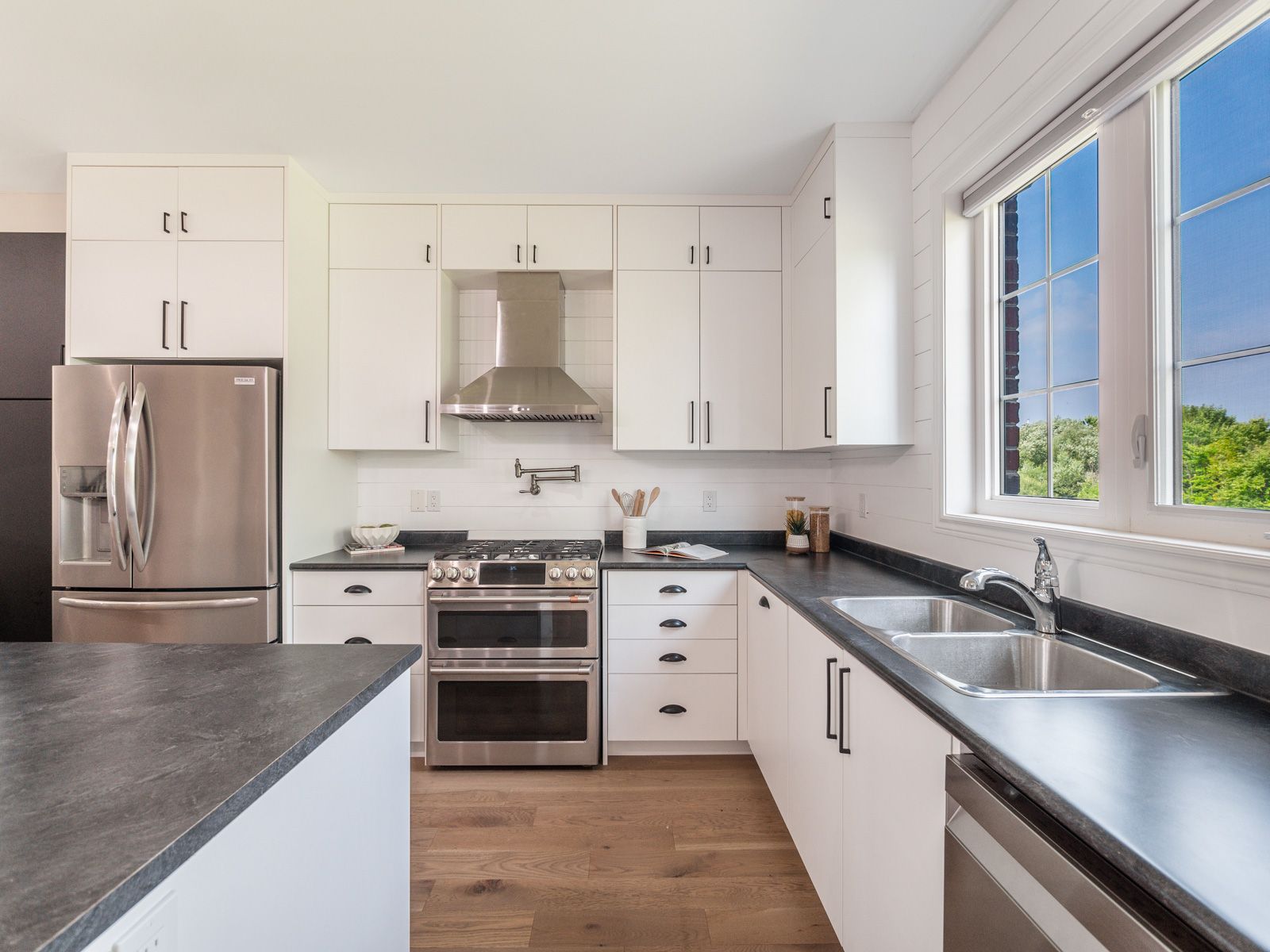 Hardwood Floor Centre Island Stainless Steel Appl