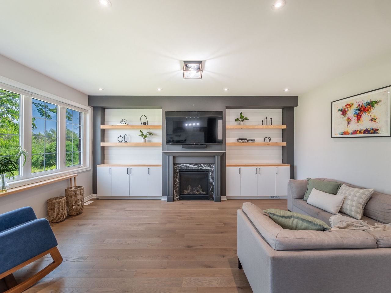 Hardwood Floor B/I Bookcase Gas Fireplace