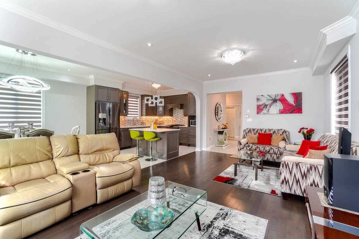独家4+1卧室/5浴室,位于需求量大的Williamburgs社区,位于Cul De Sac Ravine地段,全砖角地。约3600平方英尺的开放概念生活空间,9英尺的主楼。锻铁着色的橡木楼梯。建筑商完成了走出去的地下室,有额外的洗衣房和厨房。两个大的无框玻璃淋浴间在两个套间内。平滑的天花板和冠状装饰。后院绿洲,有聚会用的高台,前院、后院和侧院的景观。20万加元的豪华升级改造。包括2套所有电器,中央空调,软水系统,成品冷柜和书架,高级LED灯具,窗帘和格栅门开启器。12X24英寸的更新瓷砖,卧室和浴室的双面壁炉,厨房和浴室的石英台面。