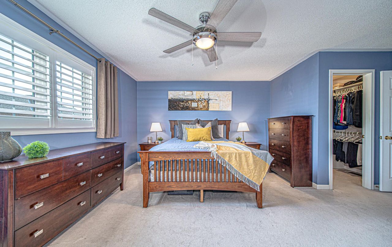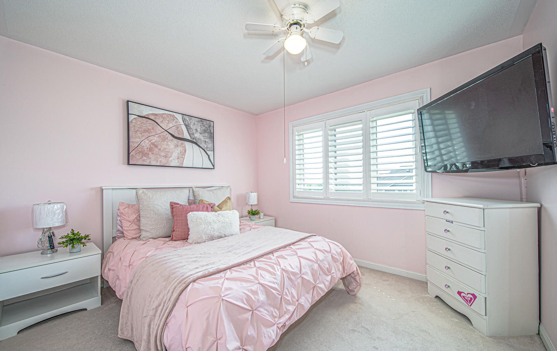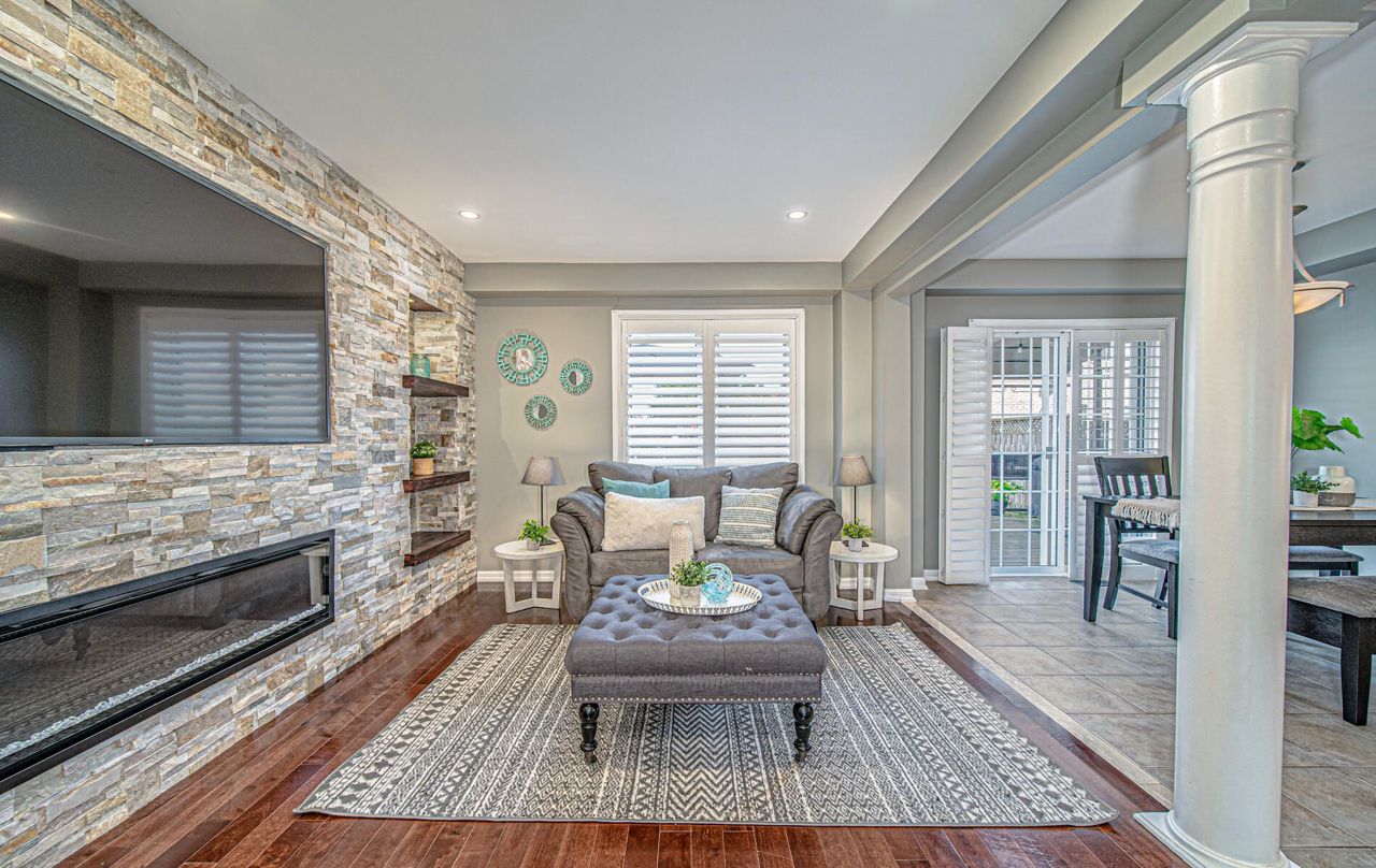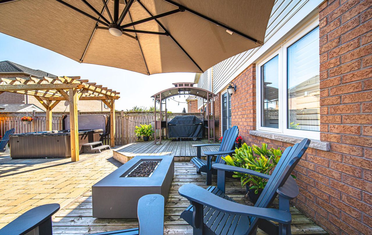 Gorgeous 3 bedroom 2 storey home in highly desirable Williamsburg family neighbourhood. Steps to the Rocketship park and splash pad, great schools and just 5 minutes to Hwy 412 and 407. This updated home features spacious and modern open concept design with California shutters throughout. The kitchen overlooks the family room with electric fireplace and the breakfast area with walk-out to deck. Garage access to main floor, 2 piece powder room and an upgraded laundry room. The upper level showcases 3 well-sized and comfortable bedrooms all with closet organizers. The primary bedroom features an updated 4 piece ensuite bath and walk-in closet. Outside boasts of landscaped backyard, a sunken pool partially above ground and partially in ground, pergola for relaxing or entertaining, and custom shed with power and lights. No are no neighbors directly behind the property, only on the sides.Fridge and freezer in basement Cabinets in basement (white upper and grey bottom) Gazebo over the BBQ ( BBQ is excluded) Nest thermostat