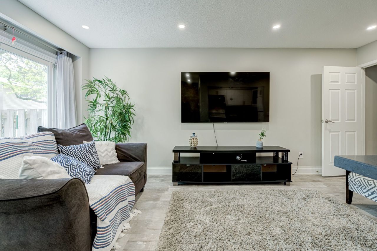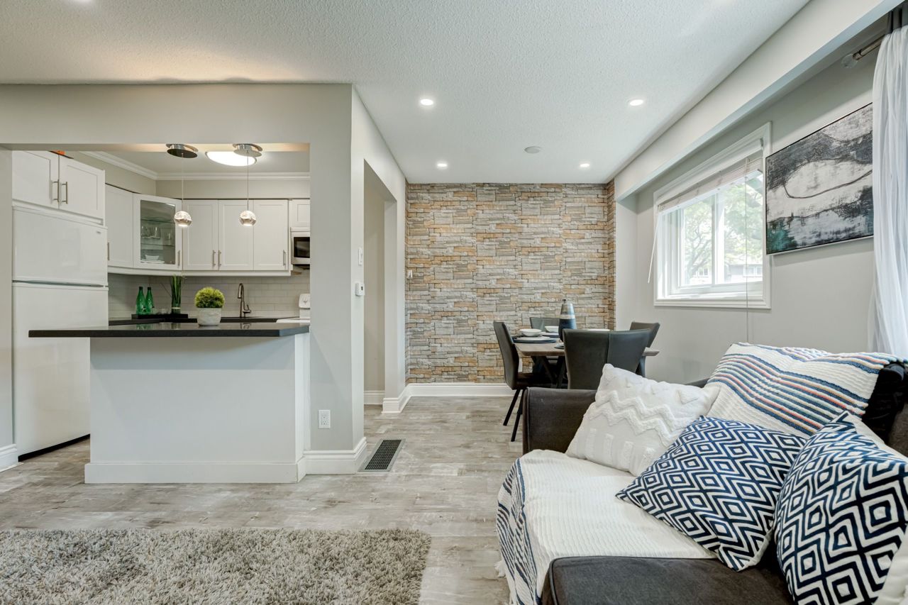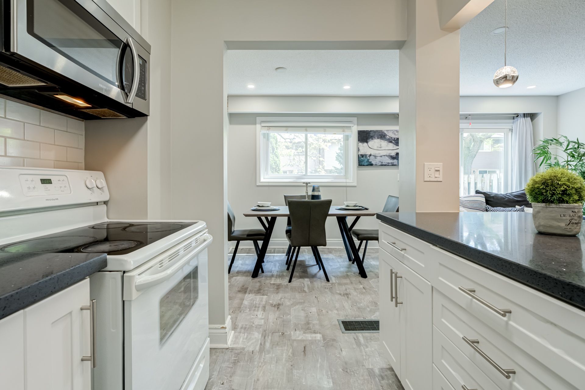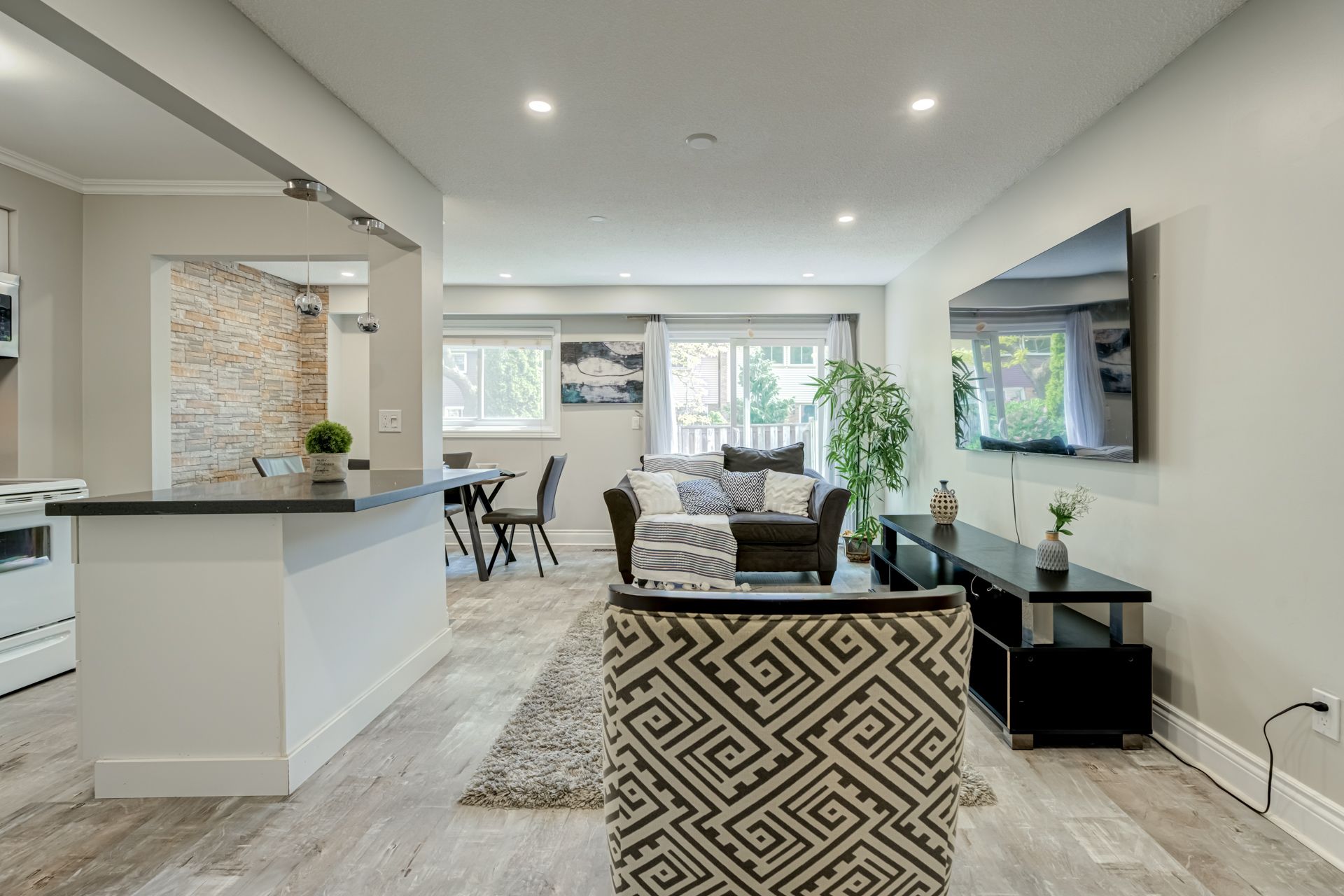Beautiful 2 Story Town House With All The Fixings! Fully Renovated With Style & Class. Entertainer's Dream W/Open Concept Main Floor! Chef's Kitchen Boasts Of Large Island, Breakfast Bar & Quartz Counters. W/O To Fully Fenced Yard! Large Master Br With W/I Closet! Beautifully Renovated Main Bath W/Upgraded Fixtures Incl Rain Shower! Finished Basement W/Rec Room, Cold Cellar And 2 Pc Bath. Forget The Hype! Feel The Buzz!! This Home Is For You!Fridge, Stove, D/Washer, W&D, Elec. Lighting Fixtures, Wind. Coverings. Newer Vinyl Flooring, Kitchen & Bath '19! Newer Windows! Newer Roof! Gas Line For Bbq! Potlights Galore! P/Ground, Outdoor Pool, Visitors Pkg. Mins To 401 & Go Transit.
