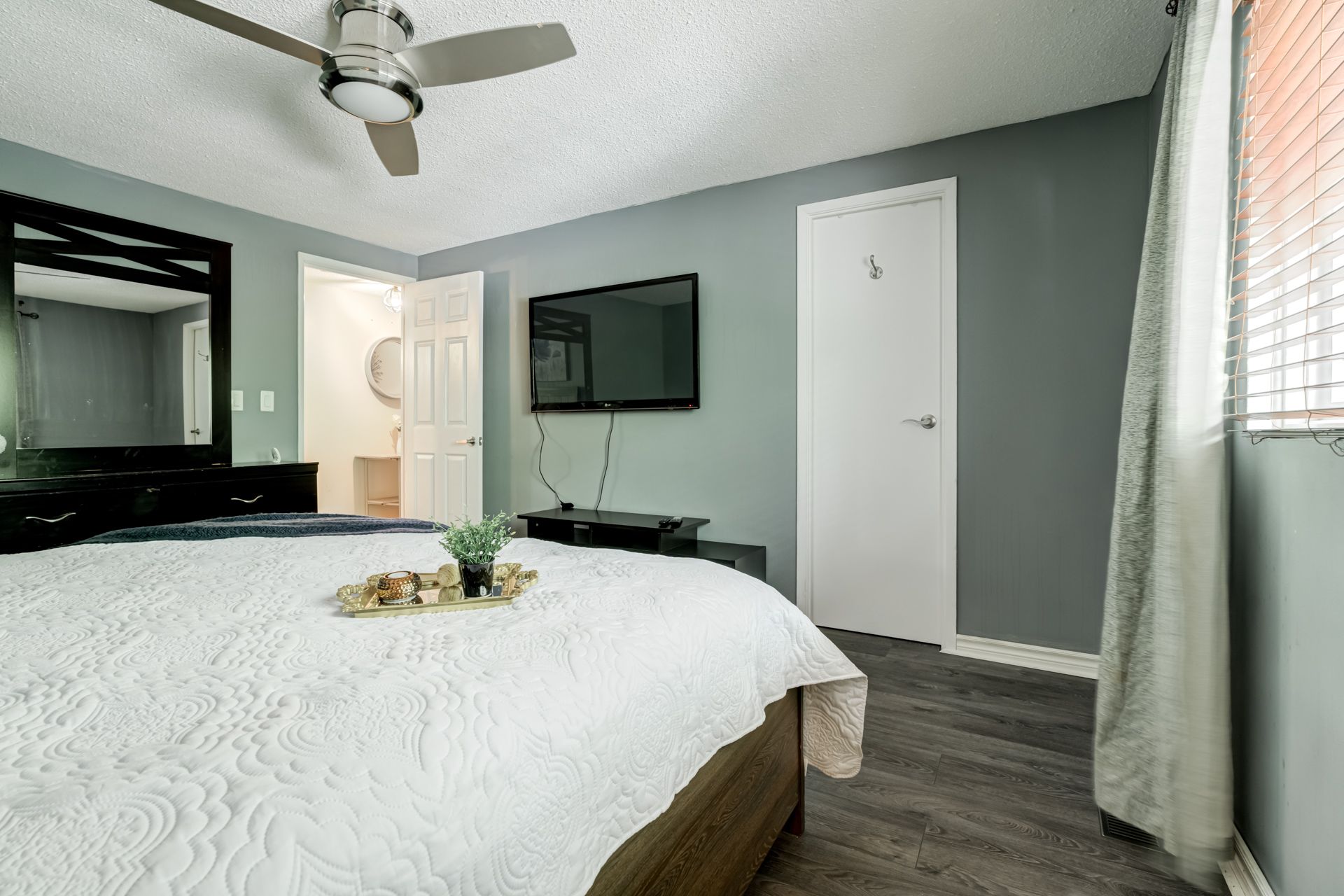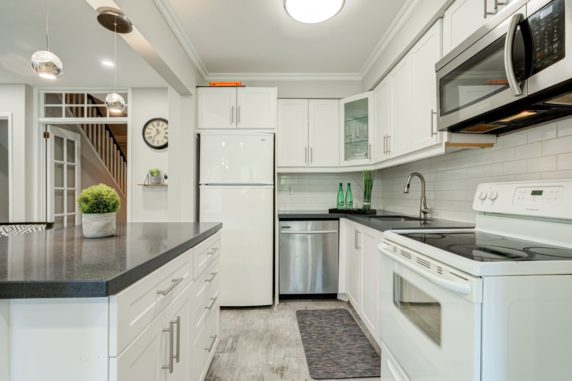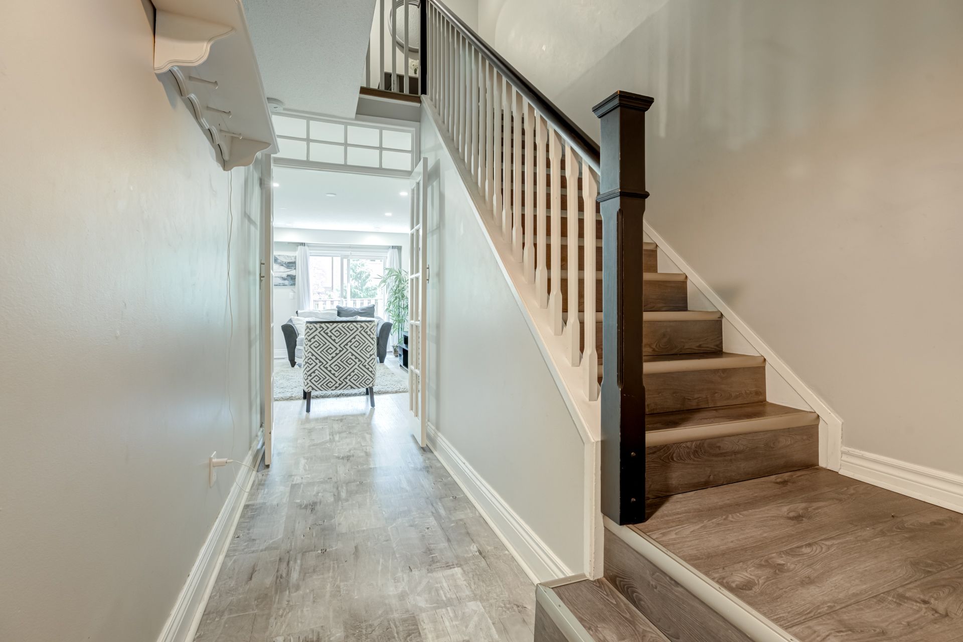 Beautiful 2 Story Town House With All The Fixings! Fully Renovated With Style & Class. Entertainer's Dream W/Open Concept Main Floor! Chef's Kitchen Boasts Of Large Island, Breakfast Bar & Quartz Counters. W/O To Fully Fenced Yard! Large Master Br With W/I Closet! Beautifully Renovated Main Bath W/Upgraded Fixtures Incl Rain Shower! Finished Basement W/Rec Room, Cold Cellar And 2 Pc Bath. Forget The Hype! Feel The Buzz!! This Home Is For You!Fridge, Stove, D/Washer, W&D, Elec. Lighting Fixtures, Wind. Coverings. Newer Vinyl Flooring, Kitchen & Bath '19! Newer Windows! Newer Roof! Gas Line For Bbq! Potlights Galore! P/Ground, Outdoor Pool, Visitors Pkg. Mins To 401 & Go Transit.