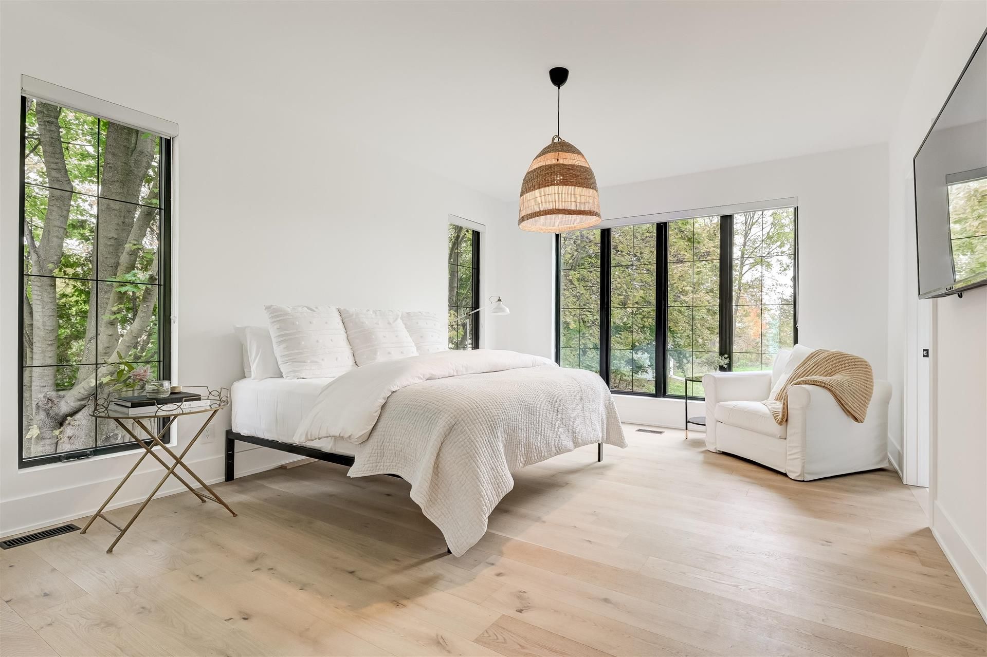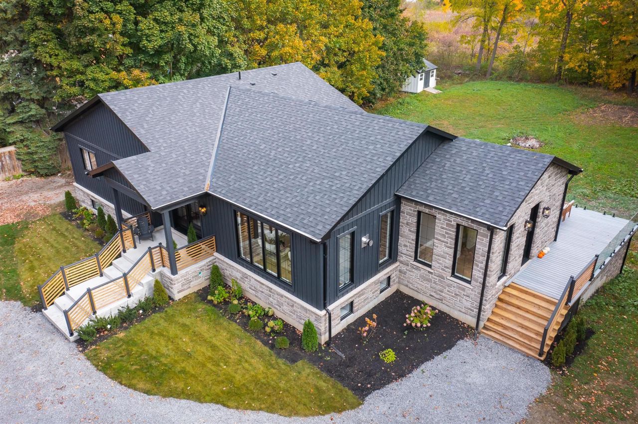 Welcome to your dream home! This custom-built bungalow offers luxury and comfort on a sprawling 1+ acre lot. With exquisite features and meticulous attention to detail, this property is a rare find. Step inside to discover a beautiful custom kitchen, complete with high-end appliances and elegant finishes. The spacious bedrooms feature large custom closets, providing ample storage space. The primary en-suite is a true oasis with a freestanding tub and a spa-like atmosphere. Natural light floods every corner of the home, creating a warm and inviting ambiance. The large terrace offers breathtaking views of the lush trees surrounding the property, making it the perfect spot for outdoor gatherings and relaxation. Experience ultimate comfort with heated floors throughout the basement and washrooms. For fitness enthusiasts, a generously sized gym is ready to accommodate your workout routine without ever leaving home. Don't miss the chance to make this custom bungalow your own.Water softener, boiler, Well equipment