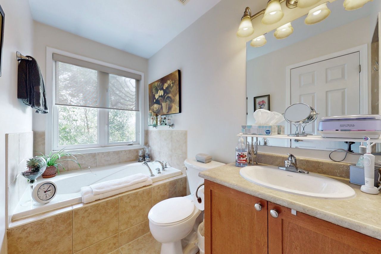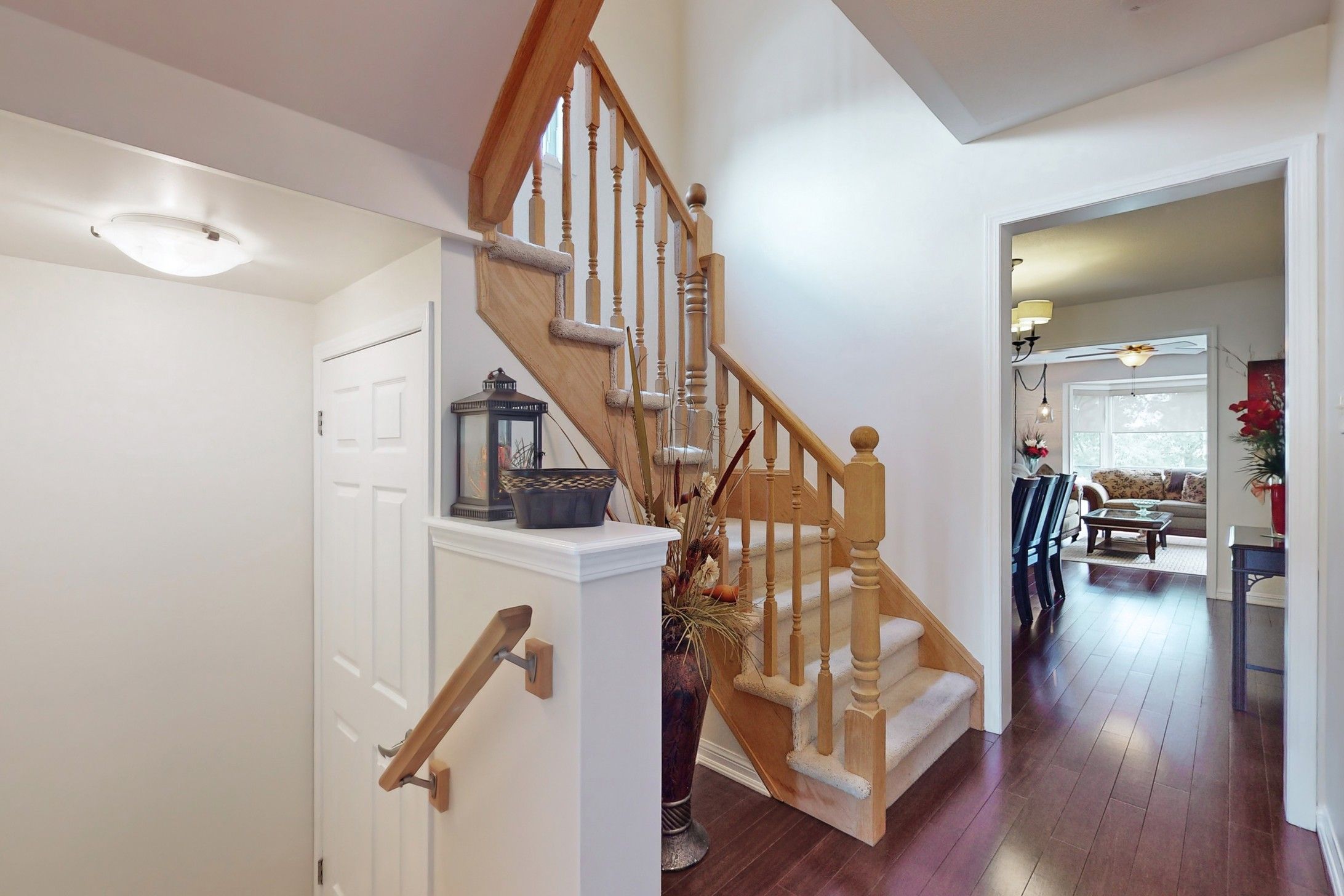 Welcome to this Beautifully maintained home in the heart of Stouffville. Large bright main floor layout leads to a quiet backyard deck backing onto green space. Walkout basement would make an easy rental unit with separate entrance. 2nd floor offers 3 well sized bedrooms and a den that could be easily converted into a 4th bedroom if needed and currently makes a great office area. Master bedroom has a large ensuite with a soaker tub and separate shower. 2nd floor laundry. Short walk to high school and 2 public schools, Parks, trails, pool, gym, splash pads and shopping. Walking distance to GO Station. 3 car parking.Roof 2021, Fridge, washer, dryer 2022. Rough in for bathroom already in basement. Ample storage in basement.