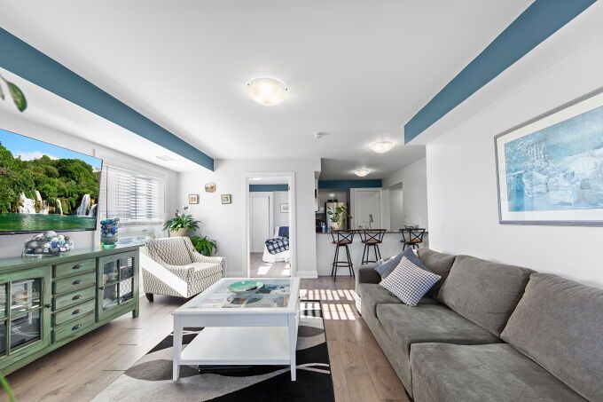 WELCOME TO GLENGROVE ON THE PARK in the heart of stouffville. Beautiful 2 bedroom unit . very spacious hallway , main bathroom & living area , lots of windows for natural light. granite counters , stainless steel appliances, built in microwave. ensuite laundry. beautiful wide plank flooring through out. open concept design perfect for entertaining.inc- S/S fridge stove, dishwasher, BI microwave, washer dryer, all electric light fixtures , window coverings.