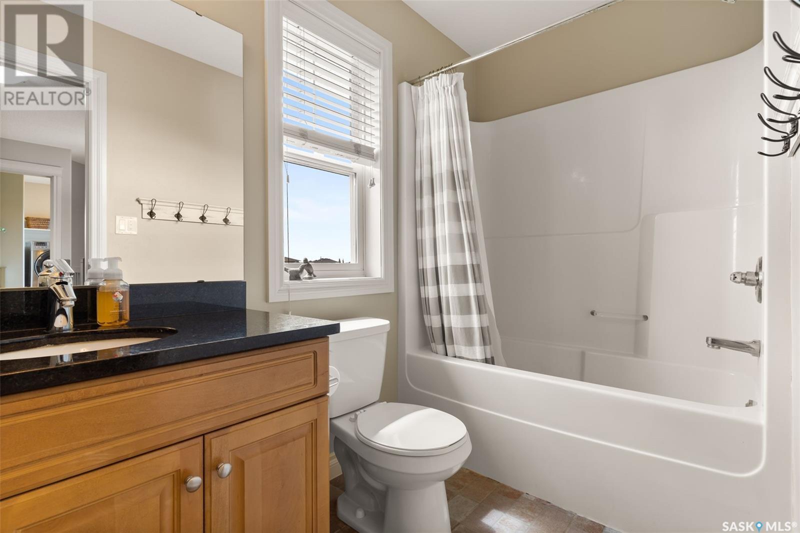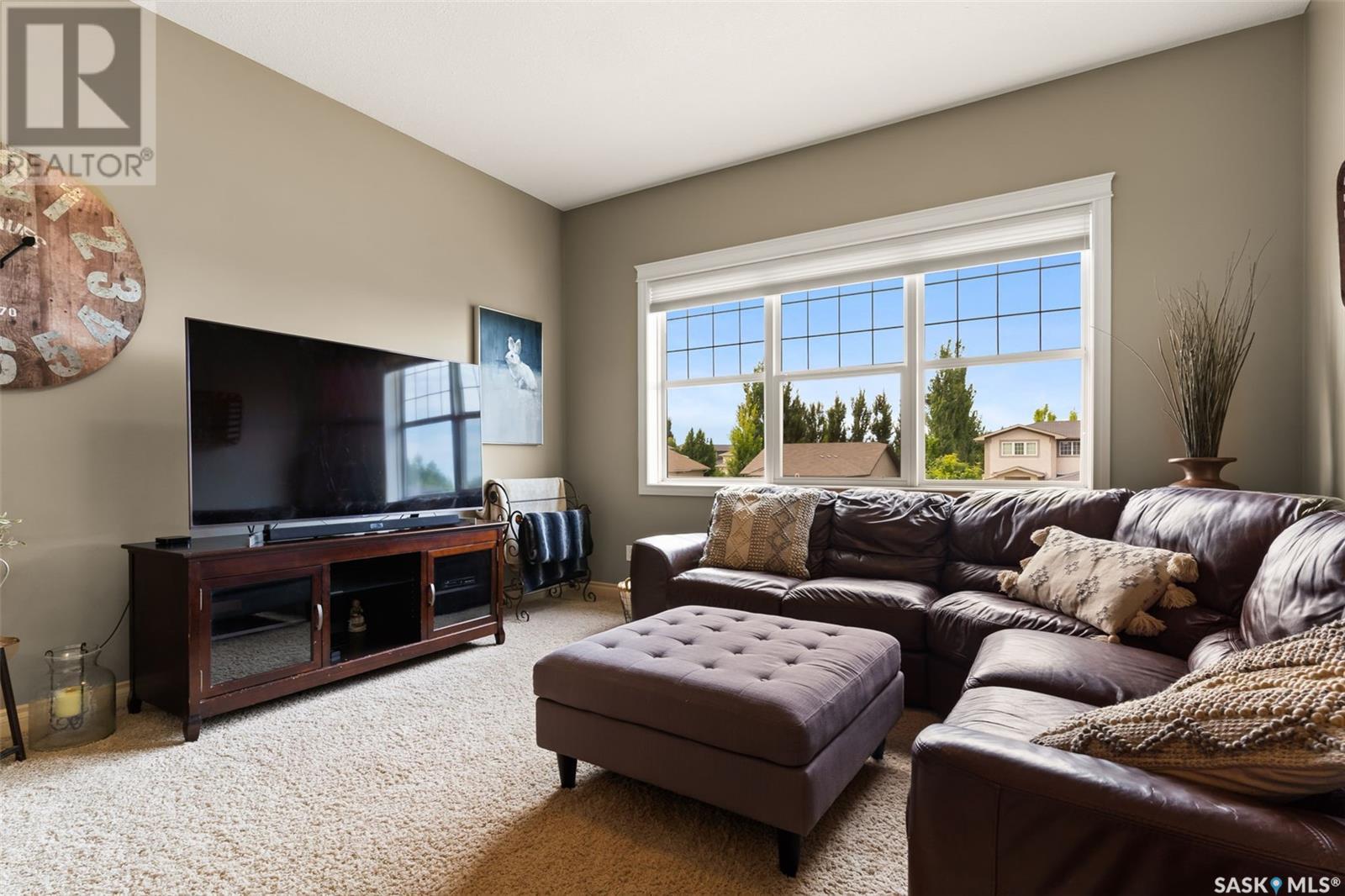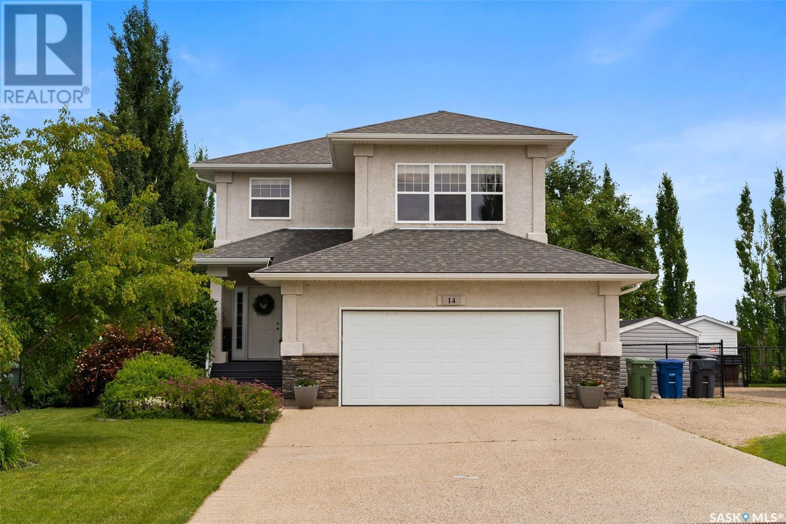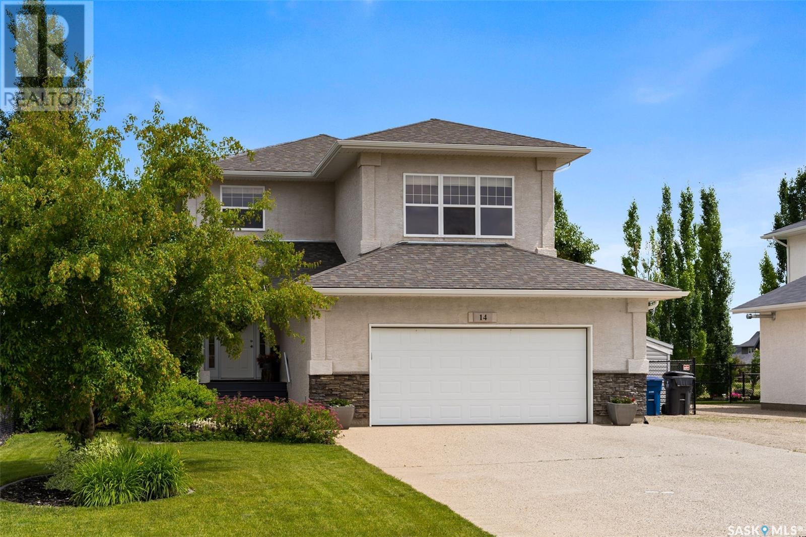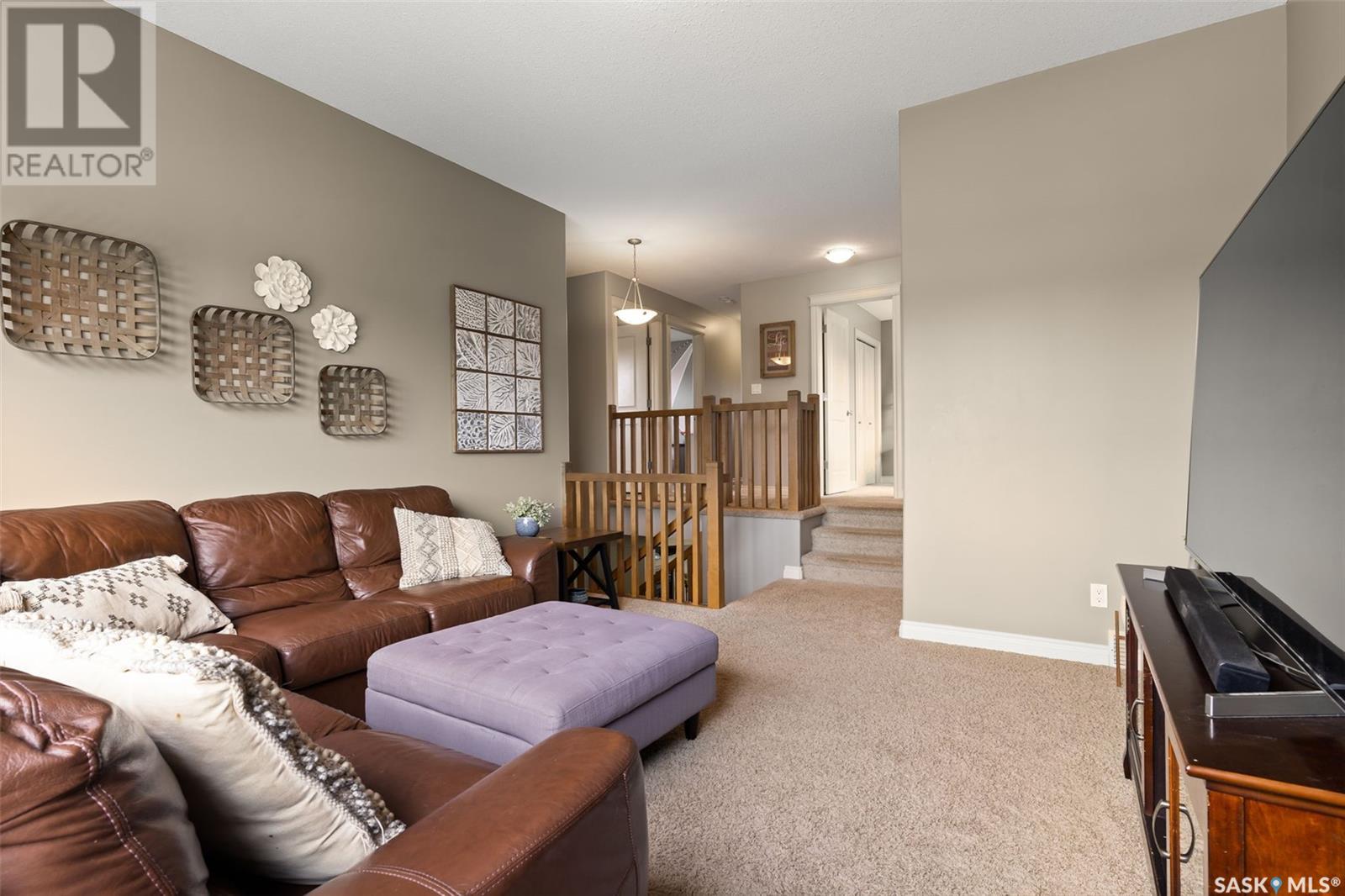 Welcome to 14 Fairway Crescent located in the thriving community of White City! This two story property, which backs the golf course is very appealing for a growing family. The spacious main floor has a living room that boasts a gas fireplace. The kitchen offers a center island, granite counter tops, plenty of cupboard space and a corner pantry. Off the dining room there are doors that lead onto the very private, well kept and maintained backyard that comes with a large deck area and patio great for entertaining during the summer months. Near the front entry there is a flex room that has many options and could be used for a den or kids play area. Up to the second level there is a bonus room over the garage. Three generous sized bedrooms upstairs with the primary, which overlooks the backyard having a full ensuite and walk-in closet. For convenience the laundry room is located on the 2nd level. The basement is tastefully finished with a very big recreation room, a 4th bedroom and full bathroom. Plenty of space for parking at this home and also includes RV parking to the side of the garage. White City has so much to offer with schools, parks, grocery and just a short drive to the city. All the perks of living outside the busy city in a relaxing community. (id:22211)