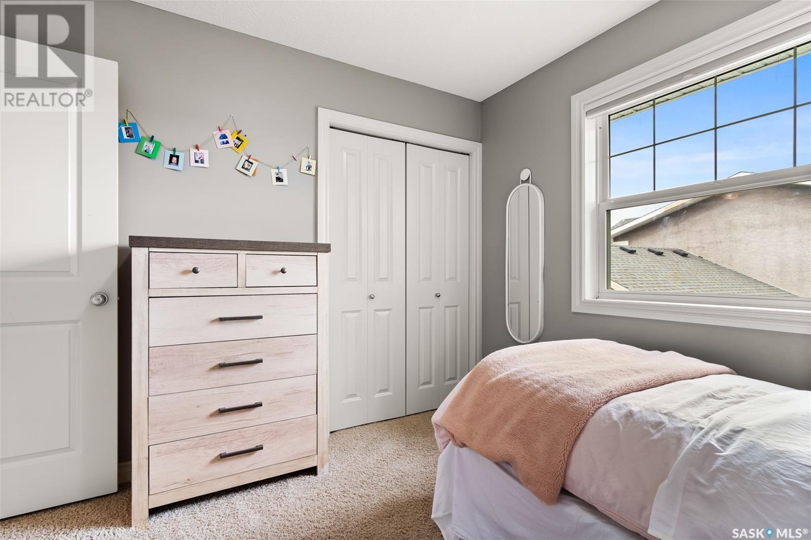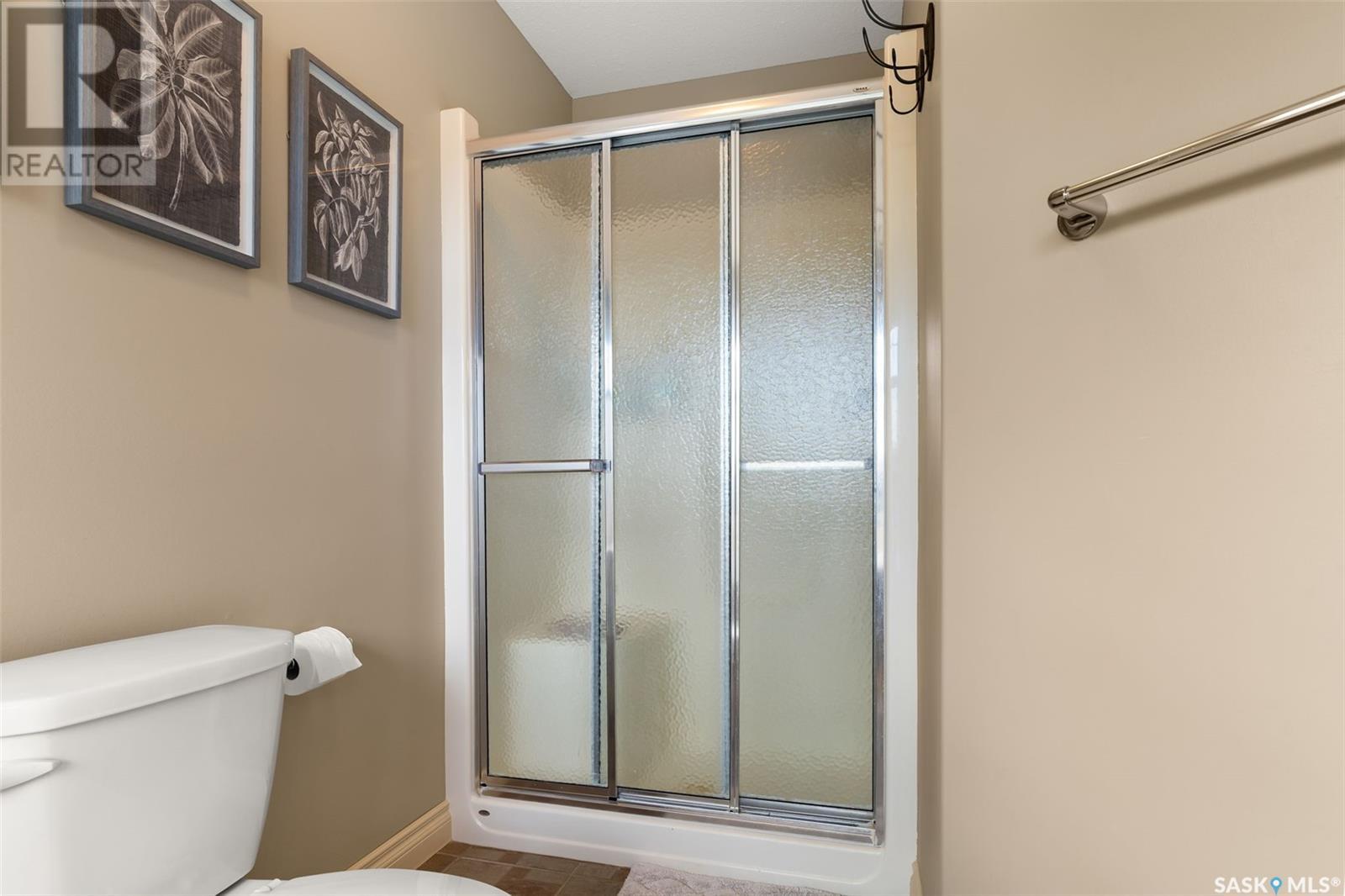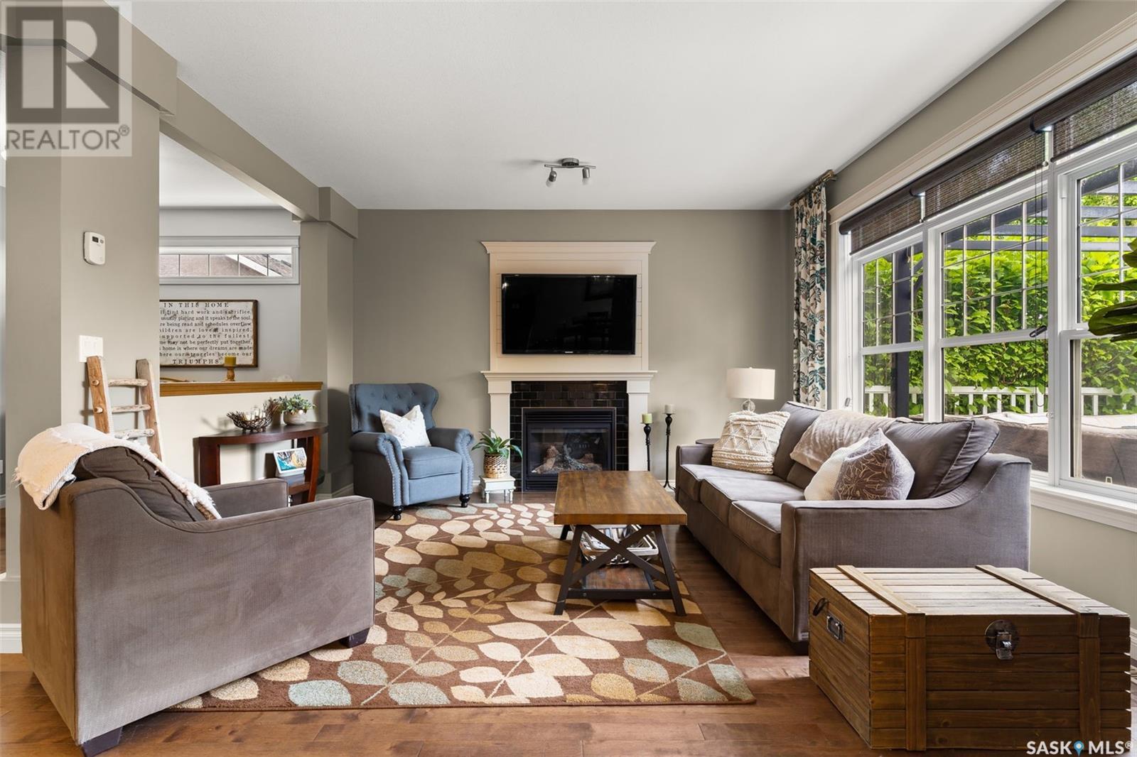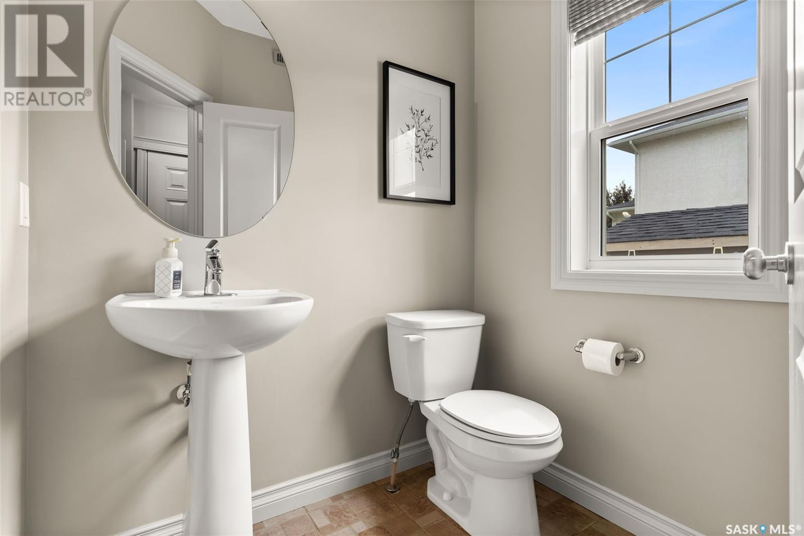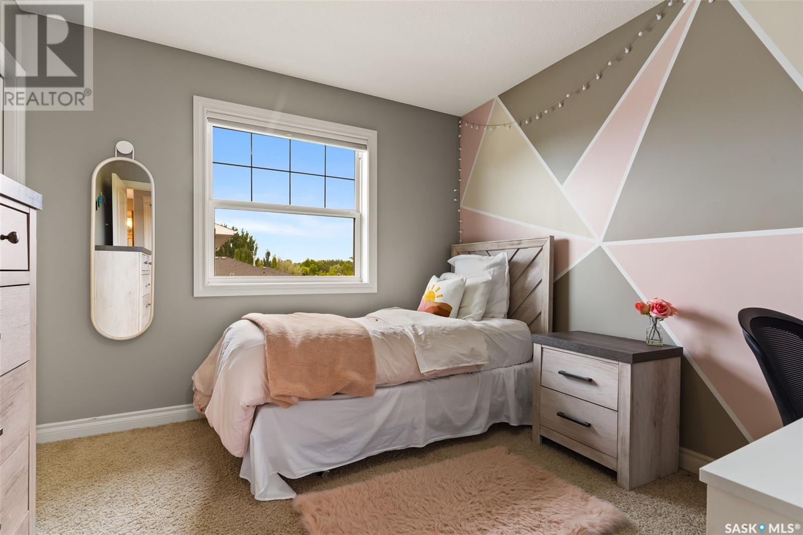 Welcome to 14 Fairway Crescent located in the thriving community of White City! This two story property, which backs the golf course is very appealing for a growing family. The spacious main floor has a living room that boasts a gas fireplace. The kitchen offers a center island, granite counter tops, plenty of cupboard space and a corner pantry. Off the dining room there are doors that lead onto the very private, well kept and maintained backyard that comes with a large deck area and patio great for entertaining during the summer months. Near the front entry there is a flex room that has many options and could be used for a den or kids play area. Up to the second level there is a bonus room over the garage. Three generous sized bedrooms upstairs with the primary, which overlooks the backyard having a full ensuite and walk-in closet. For convenience the laundry room is located on the 2nd level. The basement is tastefully finished with a very big recreation room, a 4th bedroom and full bathroom. Plenty of space for parking at this home and also includes RV parking to the side of the garage. White City has so much to offer with schools, parks, grocery and just a short drive to the city. All the perks of living outside the busy city in a relaxing community. (id:22211)