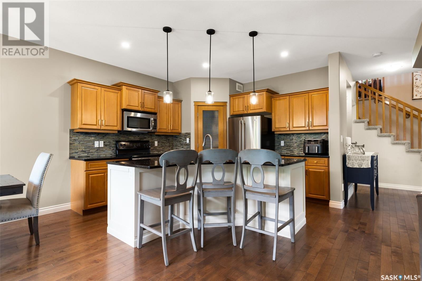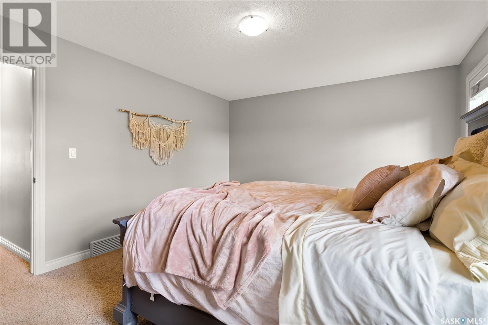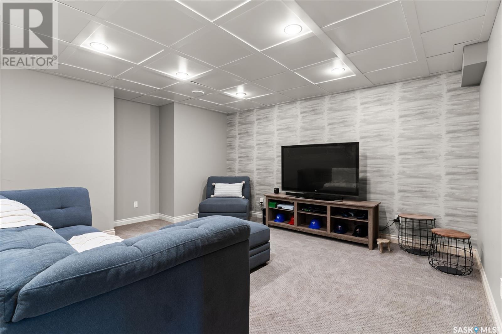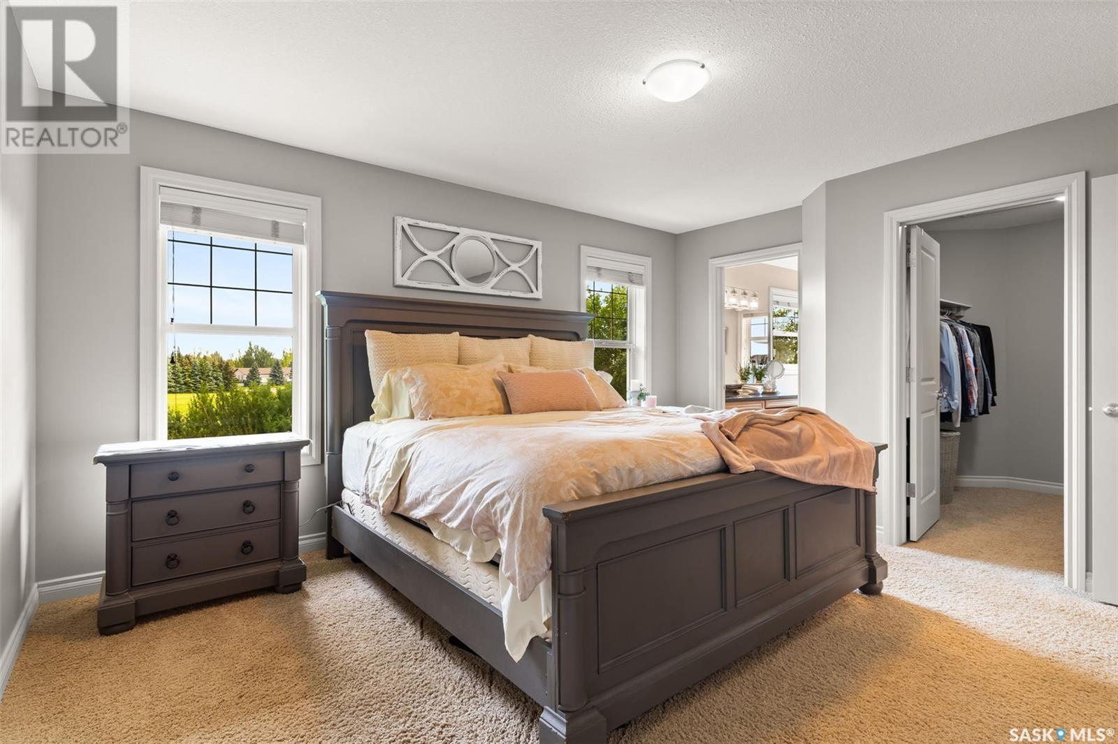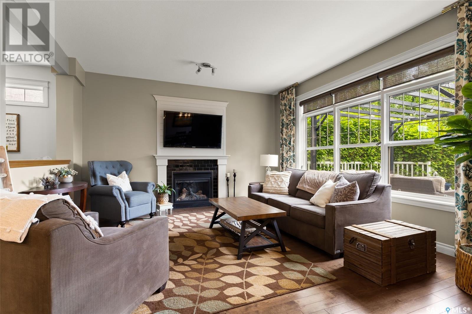 Welcome to 14 Fairway Crescent located in the thriving community of White City! This two story property, which backs the golf course is very appealing for a growing family. The spacious main floor has a living room that boasts a gas fireplace. The kitchen offers a center island, granite counter tops, plenty of cupboard space and a corner pantry. Off the dining room there are doors that lead onto the very private, well kept and maintained backyard that comes with a large deck area and patio great for entertaining during the summer months. Near the front entry there is a flex room that has many options and could be used for a den or kids play area. Up to the second level there is a bonus room over the garage. Three generous sized bedrooms upstairs with the primary, which overlooks the backyard having a full ensuite and walk-in closet. For convenience the laundry room is located on the 2nd level. The basement is tastefully finished with a very big recreation room, a 4th bedroom and full bathroom. Plenty of space for parking at this home and also includes RV parking to the side of the garage. White City has so much to offer with schools, parks, grocery and just a short drive to the city. All the perks of living outside the busy city in a relaxing community. (id:22211)
