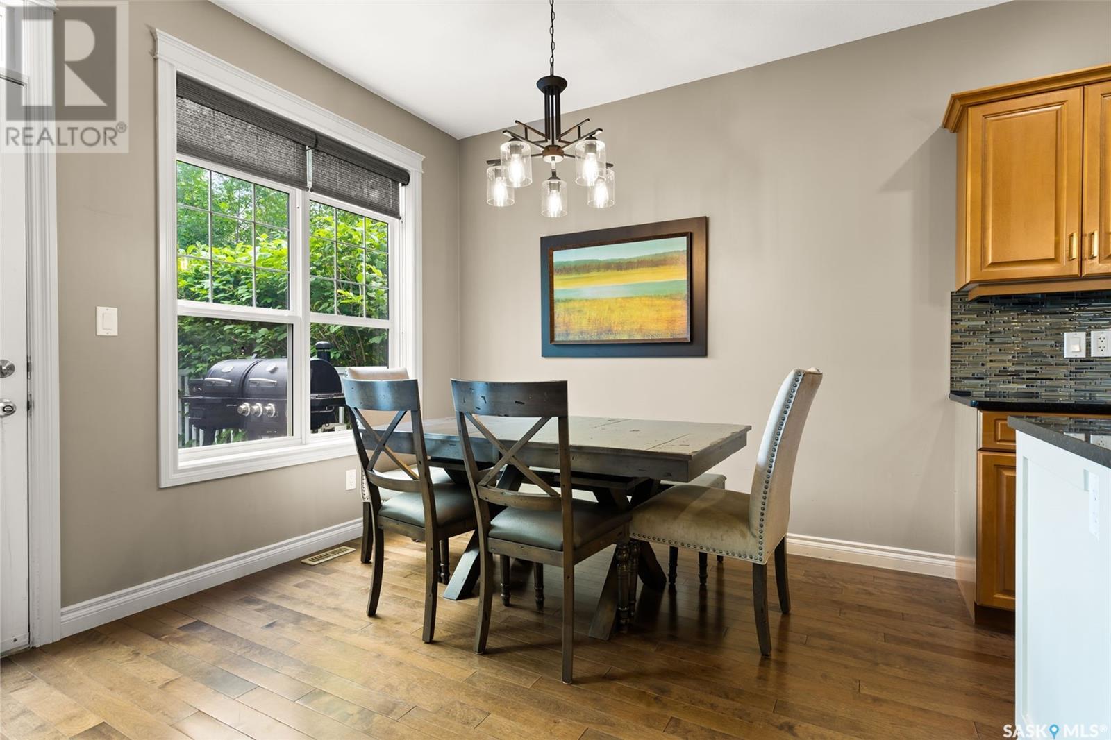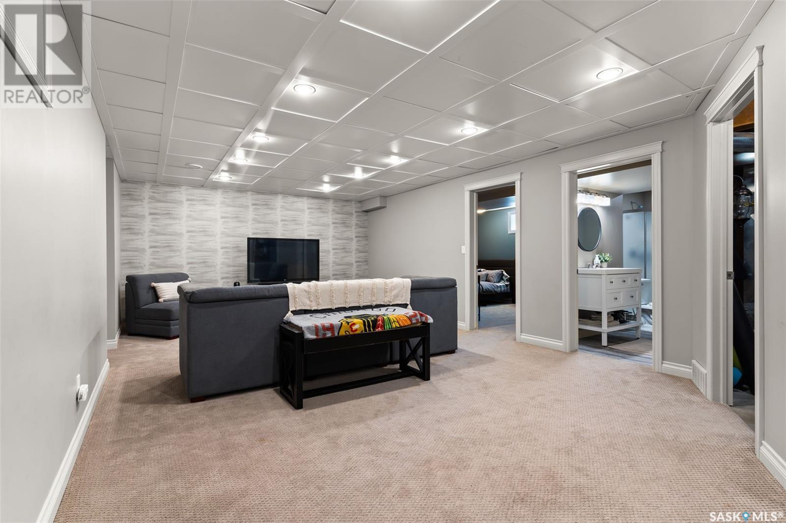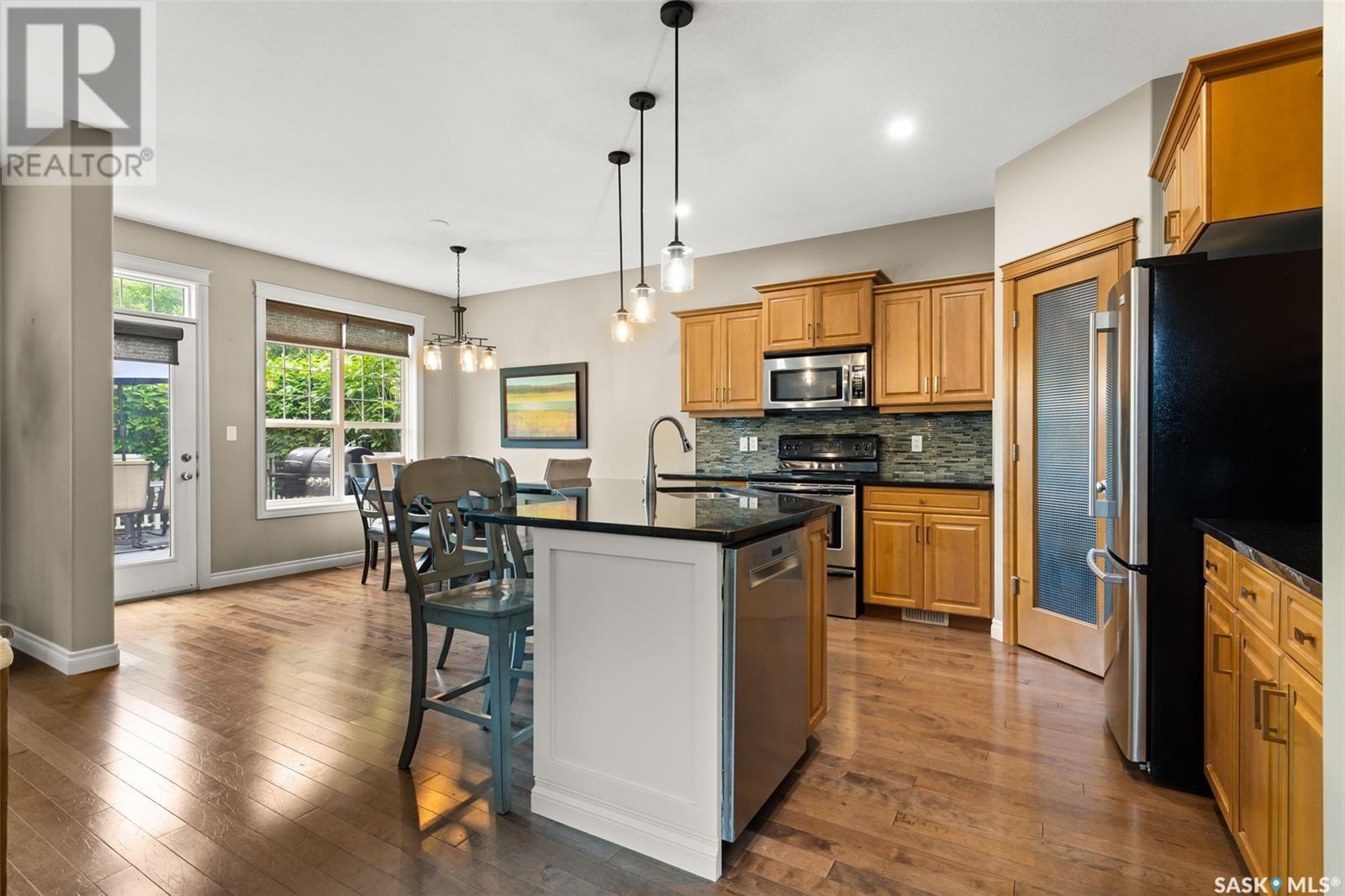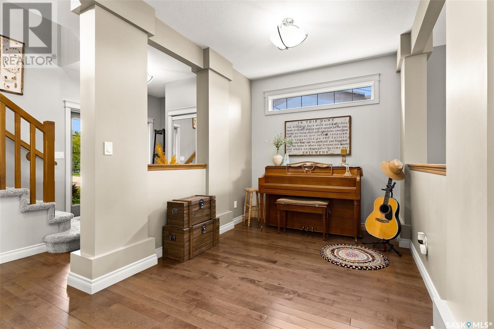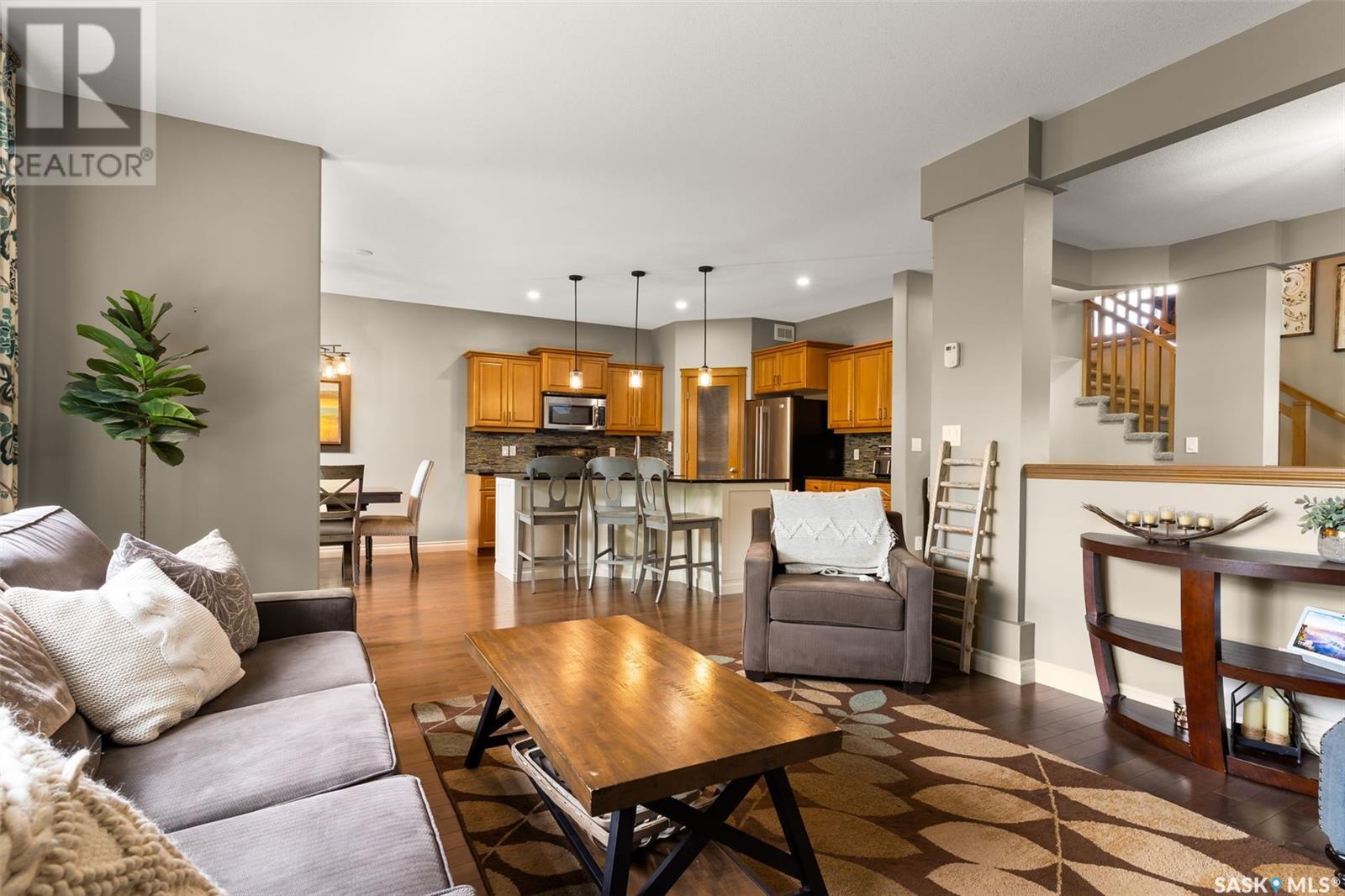 Welcome to 14 Fairway Crescent located in the thriving community of White City! This two story property, which backs the golf course is very appealing for a growing family. The spacious main floor has a living room that boasts a gas fireplace. The kitchen offers a center island, granite counter tops, plenty of cupboard space and a corner pantry. Off the dining room there are doors that lead onto the very private, well kept and maintained backyard that comes with a large deck area and patio great for entertaining during the summer months. Near the front entry there is a flex room that has many options and could be used for a den or kids play area. Up to the second level there is a bonus room over the garage. Three generous sized bedrooms upstairs with the primary, which overlooks the backyard having a full ensuite and walk-in closet. For convenience the laundry room is located on the 2nd level. The basement is tastefully finished with a very big recreation room, a 4th bedroom and full bathroom. Plenty of space for parking at this home and also includes RV parking to the side of the garage. White City has so much to offer with schools, parks, grocery and just a short drive to the city. All the perks of living outside the busy city in a relaxing community. (id:22211)