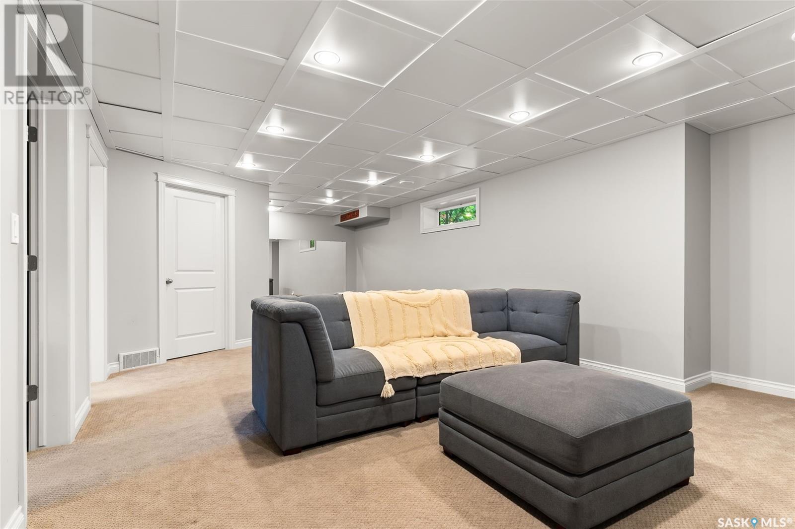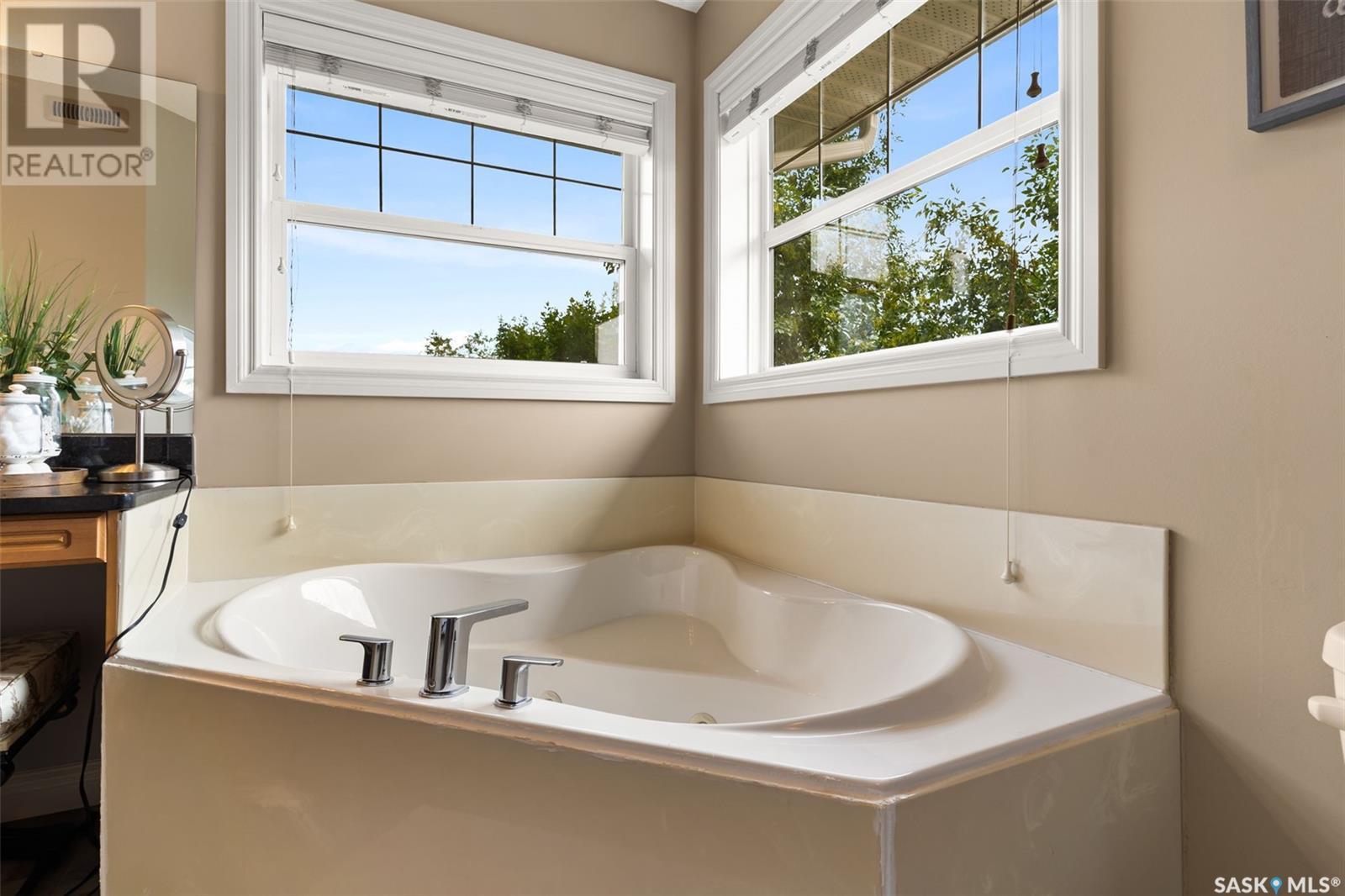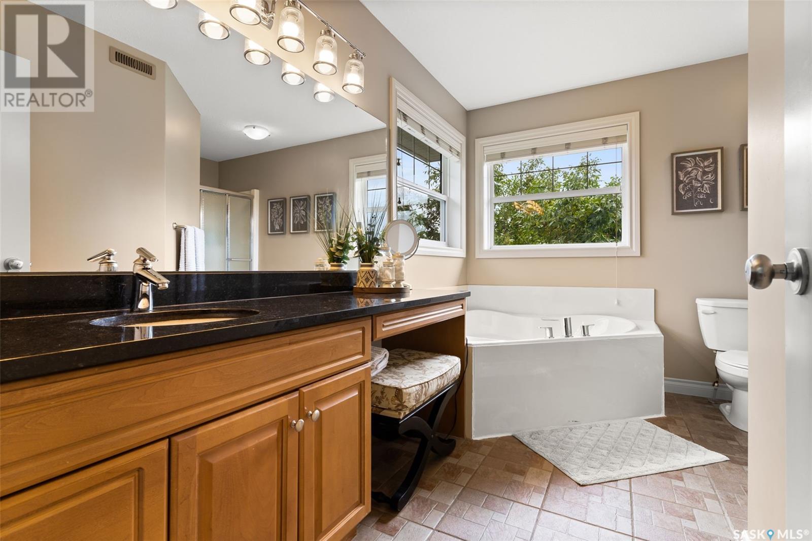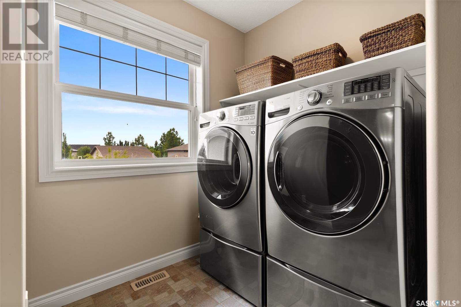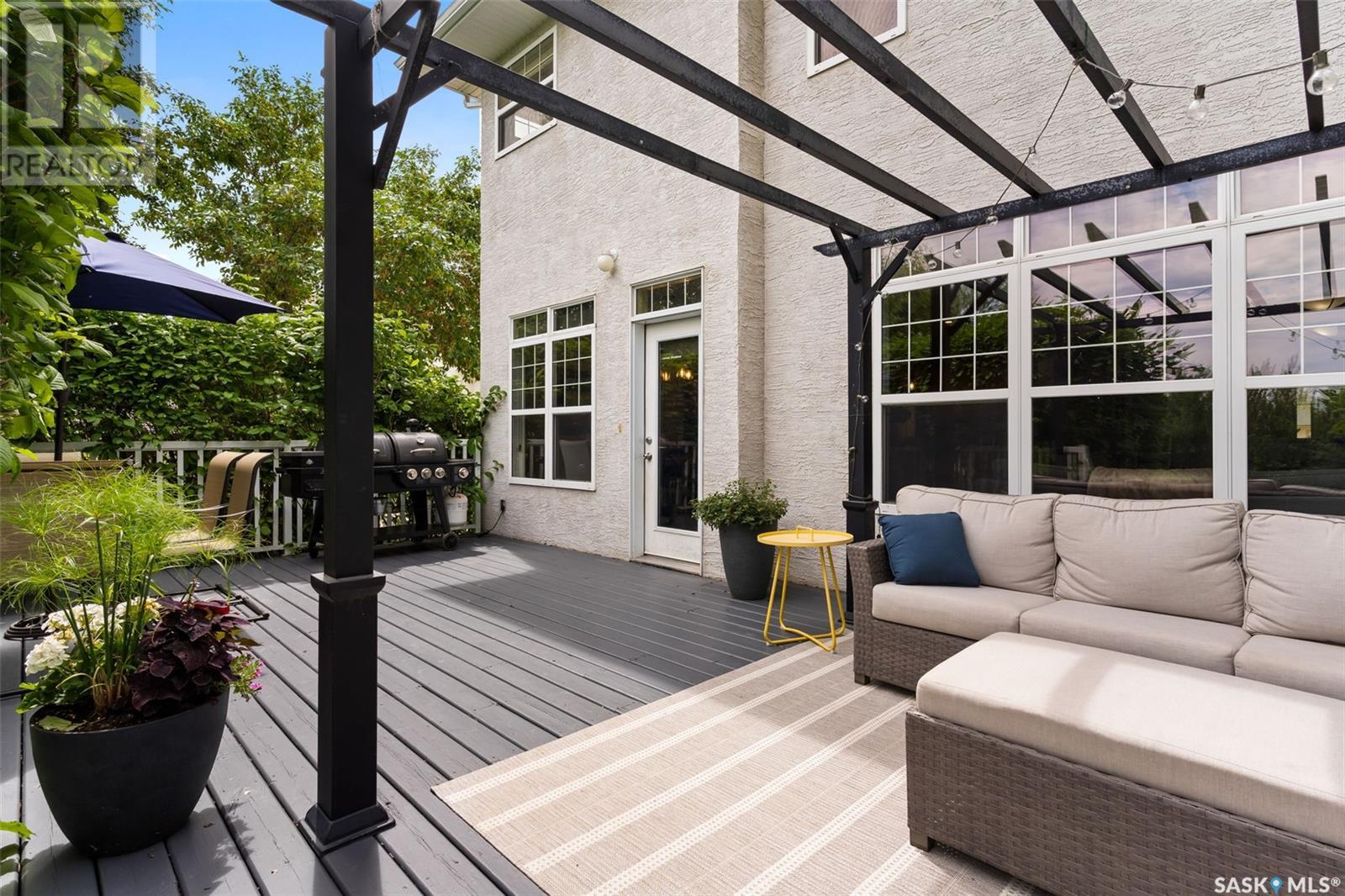 Welcome to 14 Fairway Crescent located in the thriving community of White City! This two story property, which backs the golf course is very appealing for a growing family. The spacious main floor has a living room that boasts a gas fireplace. The kitchen offers a center island, granite counter tops, plenty of cupboard space and a corner pantry. Off the dining room there are doors that lead onto the very private, well kept and maintained backyard that comes with a large deck area and patio great for entertaining during the summer months. Near the front entry there is a flex room that has many options and could be used for a den or kids play area. Up to the second level there is a bonus room over the garage. Three generous sized bedrooms upstairs with the primary, which overlooks the backyard having a full ensuite and walk-in closet. For convenience the laundry room is located on the 2nd level. The basement is tastefully finished with a very big recreation room, a 4th bedroom and full bathroom. Plenty of space for parking at this home and also includes RV parking to the side of the garage. White City has so much to offer with schools, parks, grocery and just a short drive to the city. All the perks of living outside the busy city in a relaxing community. (id:22211)