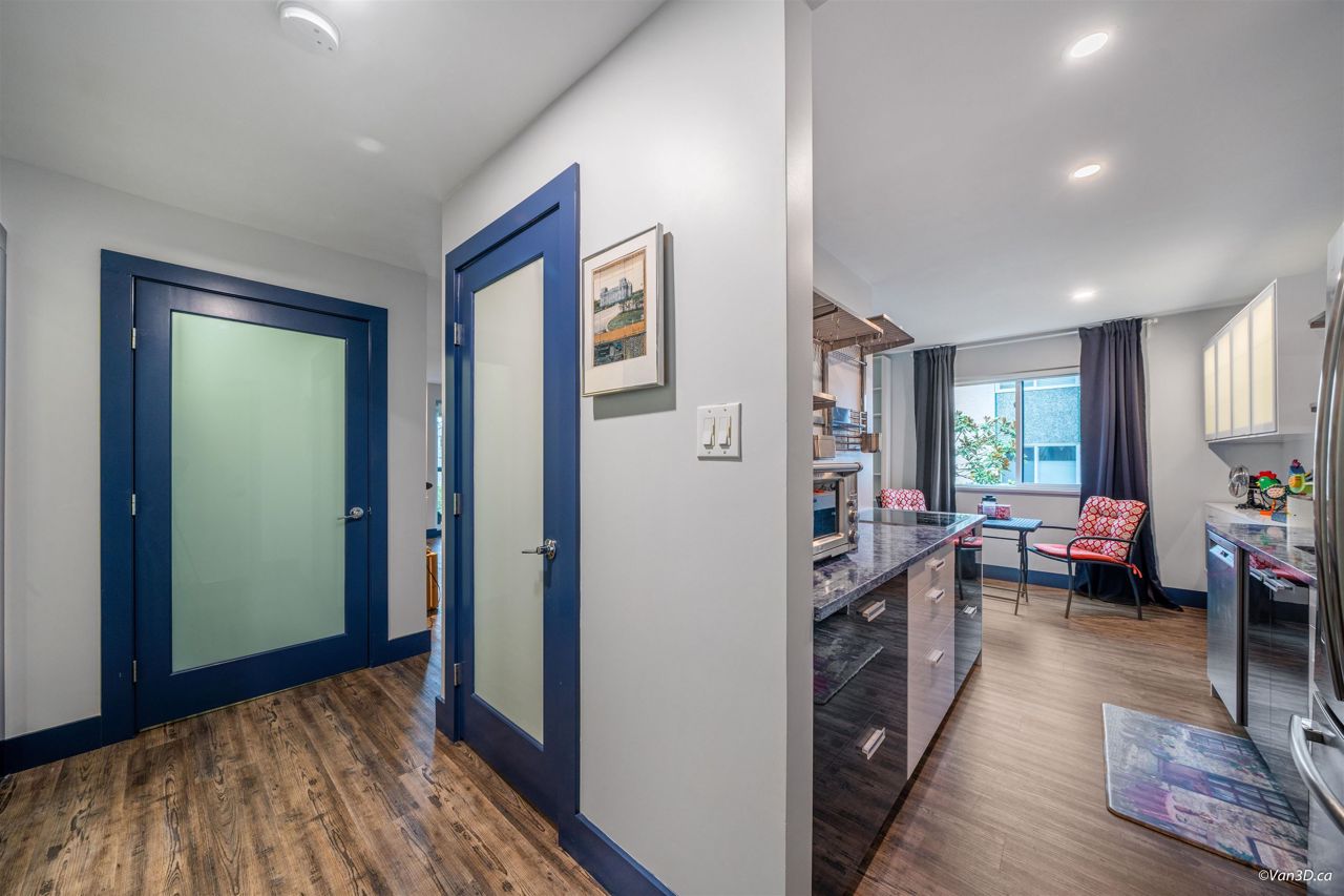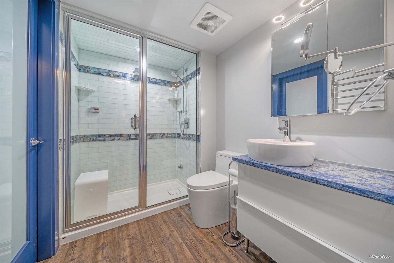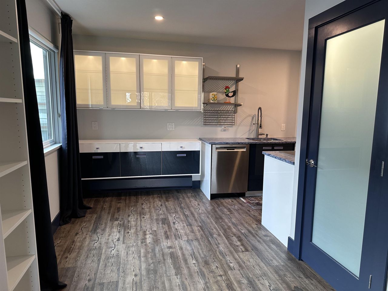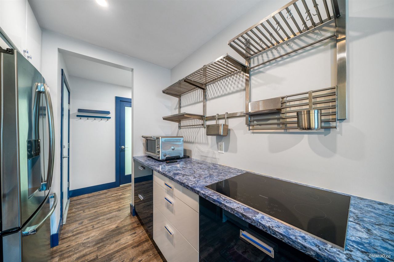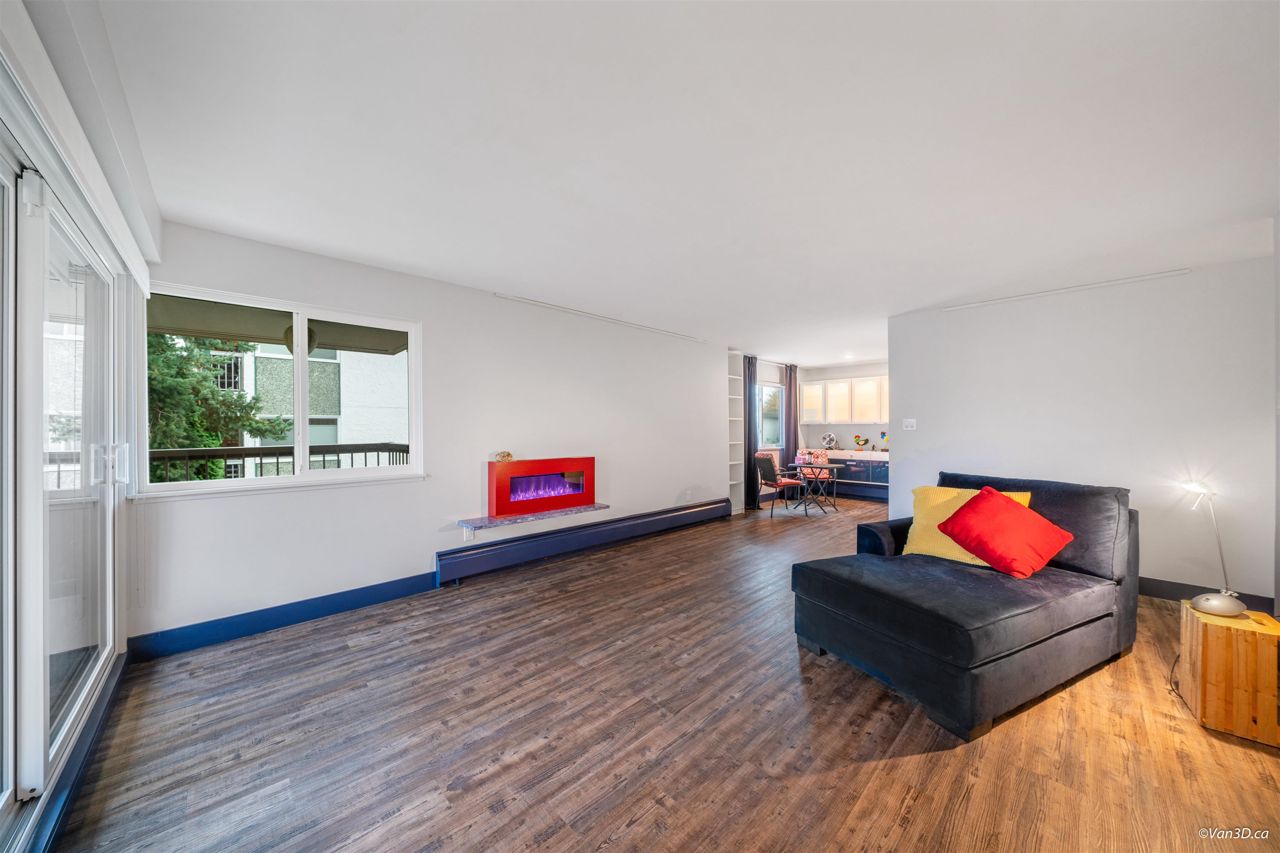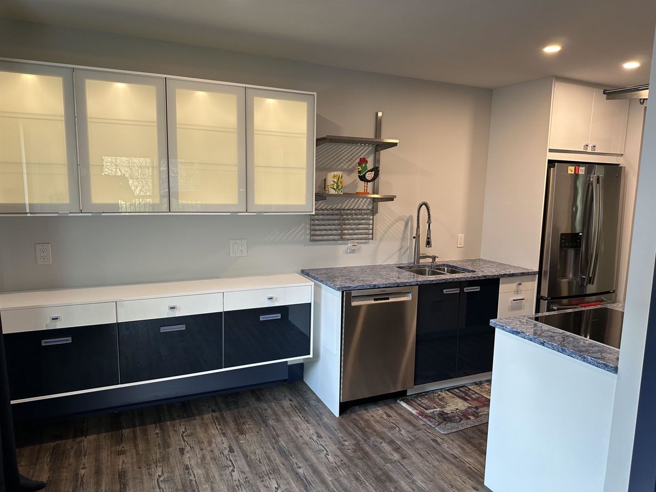 Complete quality renovation, bright S/E corner, white ceilings & off-white walls w/blue trim. Qualified/licensed trades conducted all work. Featuring 829 sqft. of living space, an outdoor corner balcony with a treed view & some ocean view in winter. Attention to detail and quality workmanship are evident. Vinyl plank flooring, smooth ceilings with pot lighting. Enjoy a walk-in glass steam shower; all interior custom doors have tinted glass fillers. Well-run boutique 17-unit strata, with a new central boiler, guest room, and main floor new laundry facility. Underground parking stall equipped for EV + storage locker & workshop. Pleasant & well-maintained building in a central location for all essentials. Walk to 5-Corners + Thrift Ave shopping & cafes. No age restrictions and pet-friendly!