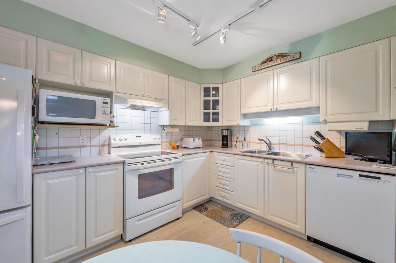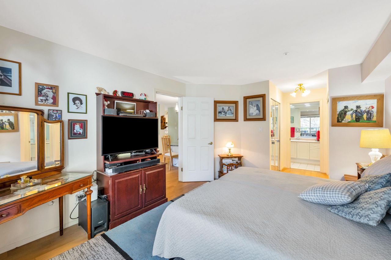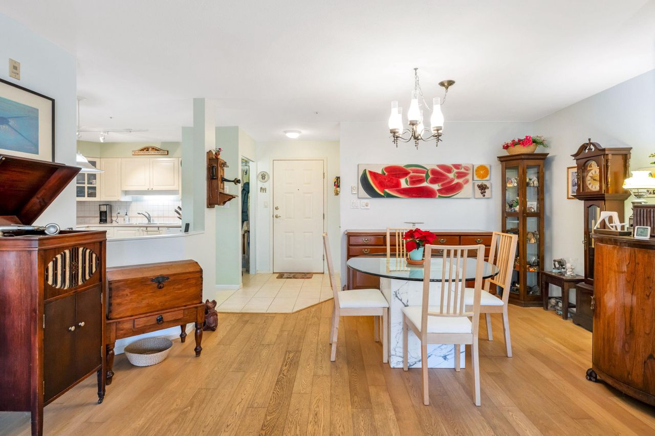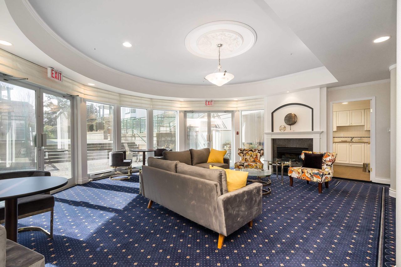 Well maintained 2 bedroom and 2 bathroom condo at The Embassy in uptown White Rock! Bright and roomy suite with engineered hardwood, spacious primary bedroom that features his/hers closets and an ensuite with radiant heat flooring. Second bedroom is located at the opposite end of the suite for additional privacy. Living room features a cozy gas fireplace and allows in an abundance of light. Large kitchen with eating area plus a dining area for entertaining. Laundry room that includes extra storage space. This building allows 1 dog or 1 cat and boasts a fitness centre, 2 guest suites, amenities room, 2 elevators, library, workshop, guest parking and an interior courtyard. Just minutes to walk to Semiahmoo Mall, restaurants and bus stop. Call for your private showing today!