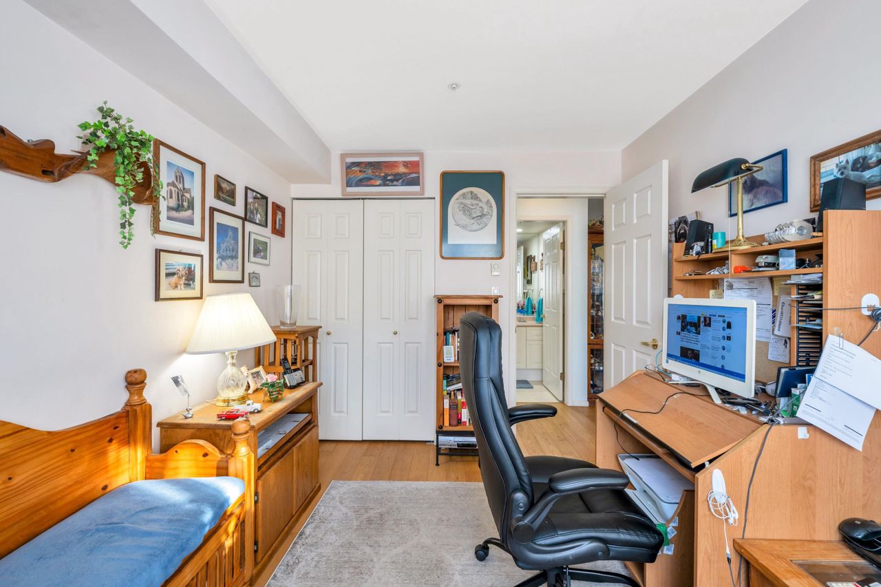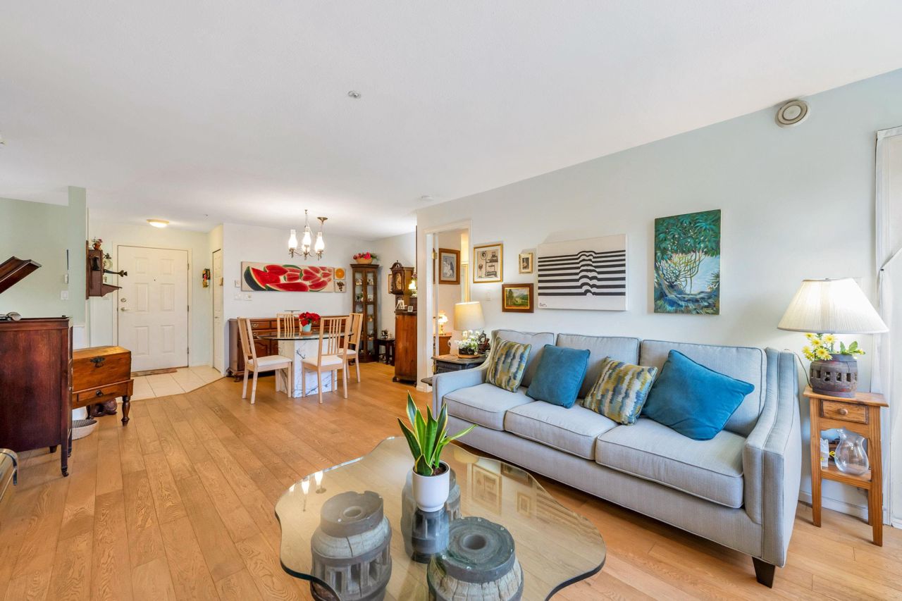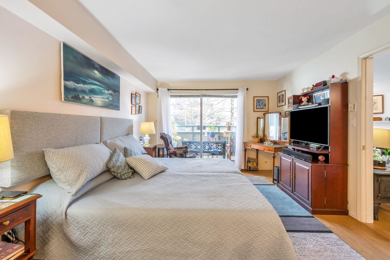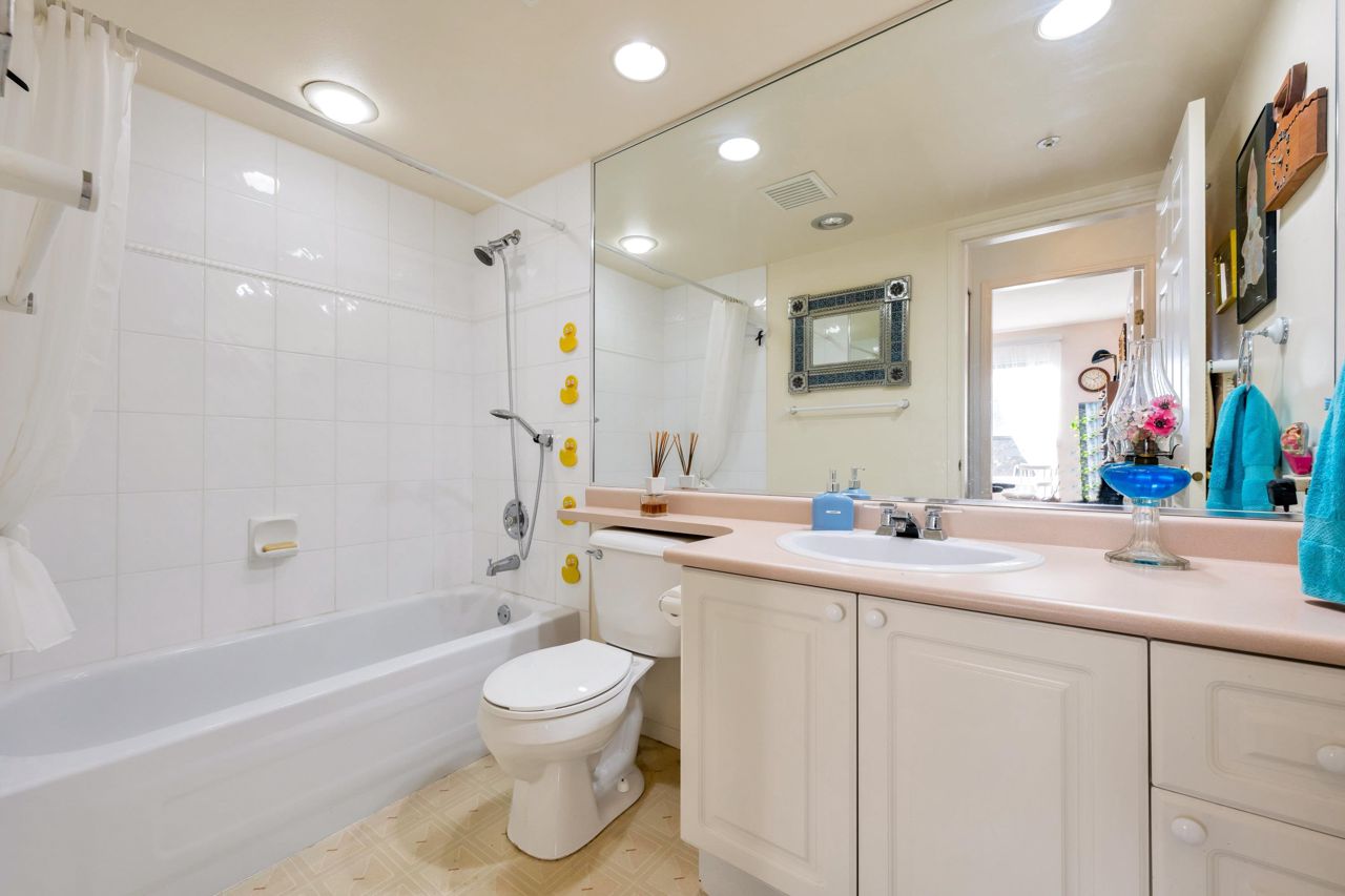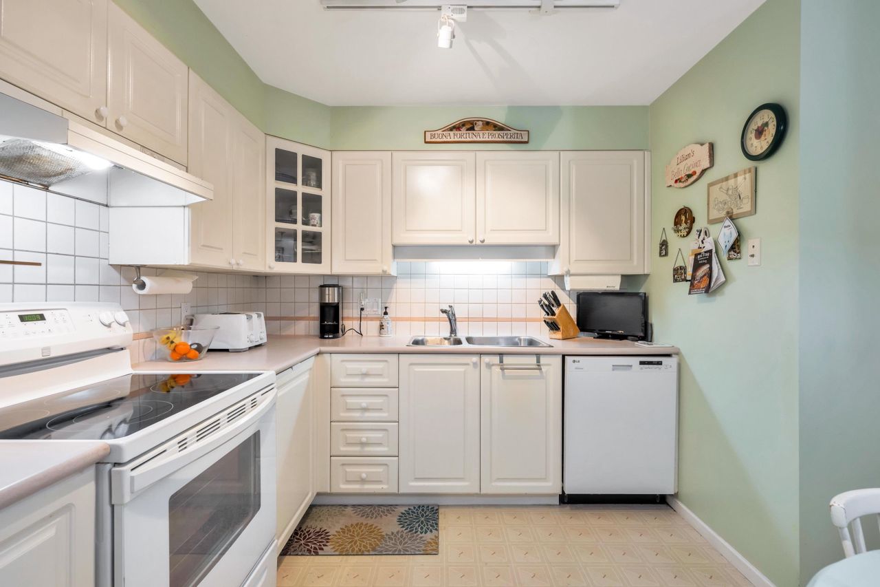 Well maintained 2 bedroom and 2 bathroom condo at The Embassy in uptown White Rock! Bright and roomy suite with engineered hardwood, spacious primary bedroom that features his/hers closets and an ensuite with radiant heat flooring. Second bedroom is located at the opposite end of the suite for additional privacy. Living room features a cozy gas fireplace and allows in an abundance of light. Large kitchen with eating area plus a dining area for entertaining. Laundry room that includes extra storage space. This building allows 1 dog or 1 cat and boasts a fitness centre, 2 guest suites, amenities room, 2 elevators, library, workshop, guest parking and an interior courtyard. Just minutes to walk to Semiahmoo Mall, restaurants and bus stop. Call for your private showing today!