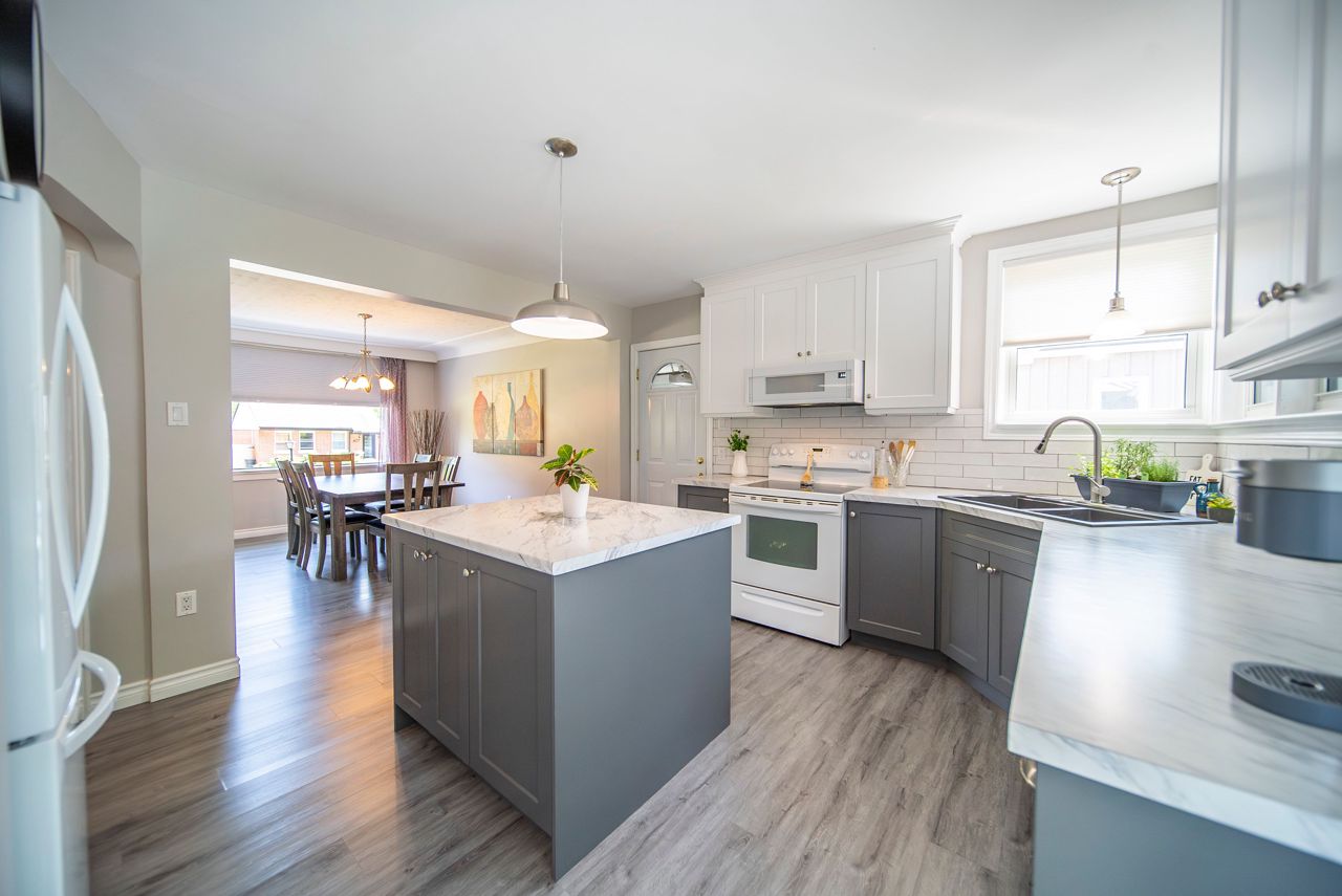 This immaculate home is framed with brick and stone and has been lovingly maintained for 22 years by its current owners - And The Love Shows! With care and attention to detail, this home has been upgraded over the last five years with tasteful finishes and neutral décor. The main floor features two good sized bedrooms, renovated bathroom, laundry room, spacious living and dining room, and bright open concept kitchen, with pantry and lots of closet space! Downstairs is unfinished – the owners thoughtfully framed, insulated and prepared it to be completed by the new owner - so the new owner could make this incredible home Their Own! Featured downstairs is a large foyer, large sized recreation room – a bonus room, storage room and utility room with work bench! Be prepared to catch your breath when you open the French doors off the kitchen and view the outstanding back yard extending 221 Feet deep! Filled with beautiful, mature trees, this is the backyard of your dreams!