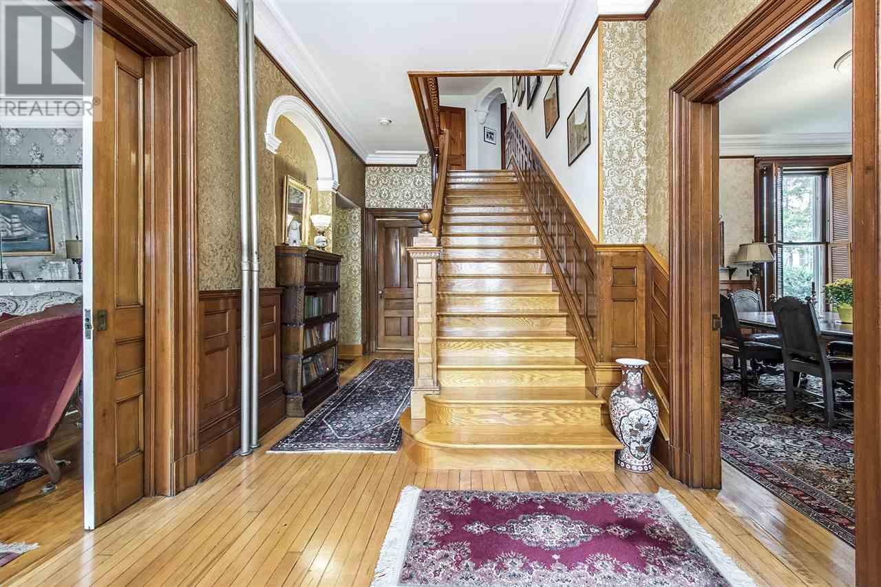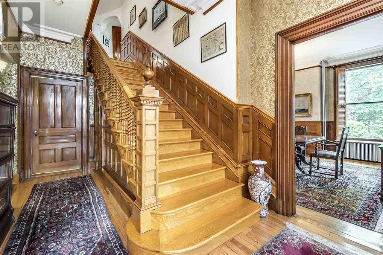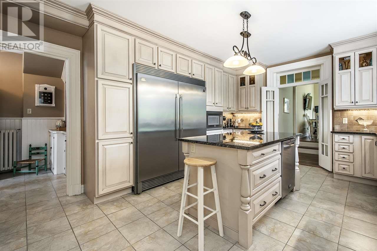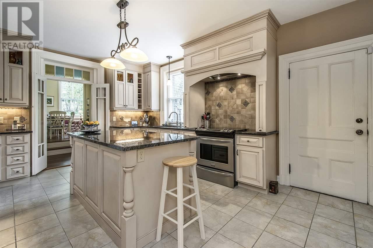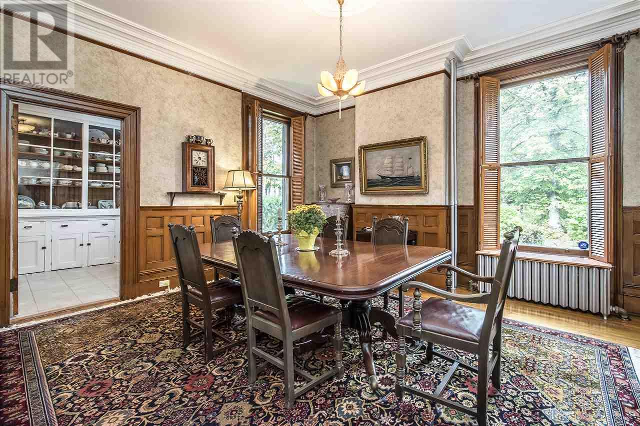Remarkable Georgian style home, rich in history with stunning architecture. The house has high ceilings, original plaster crowning and oak trim, pocket doors, and a hand carved centre staircase adding to the home's elegance. The main floor offers a spacious living room, den, formal dining room, kitchen that was completely renovated with granite countertops and Stainless Steel appliances, 3 large bedrooms, a full bath with ample storage space, and a laundry room and half bath. A secondary suite on the upper level features a large landing, kitchen, dining room, 3 bedrooms, and a full bath. The upper level also provides access to the large balcony overlooking the incredible property. Additional living space in attic area if desired. This beautiful property is situated on 1.55 acre in the heart of Windsor and is only minutes from all amenities. (id:22211)