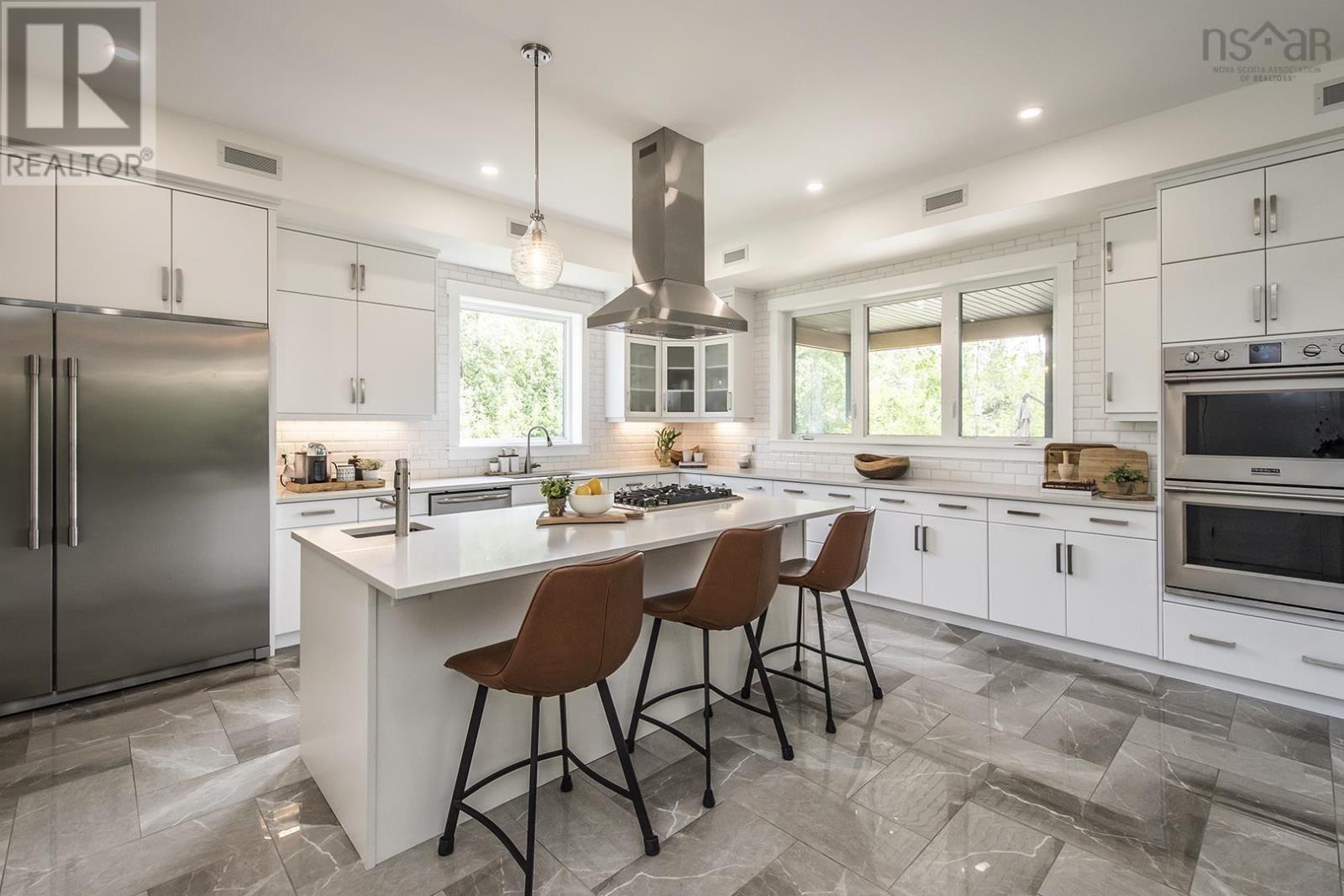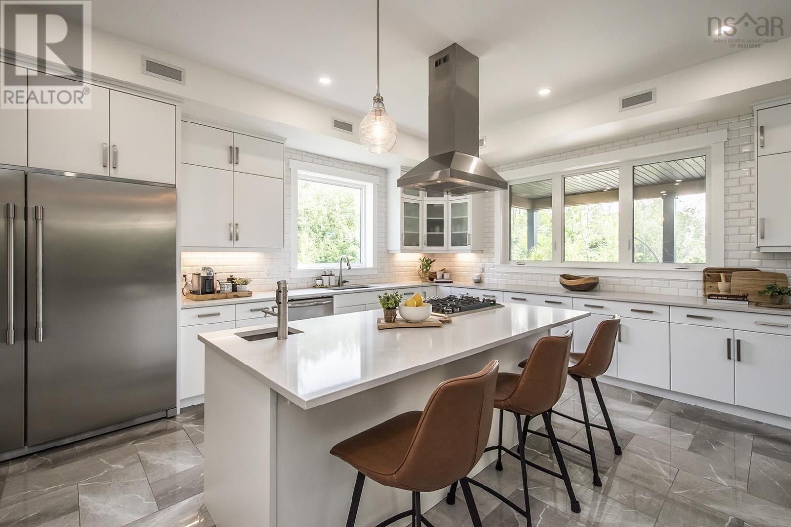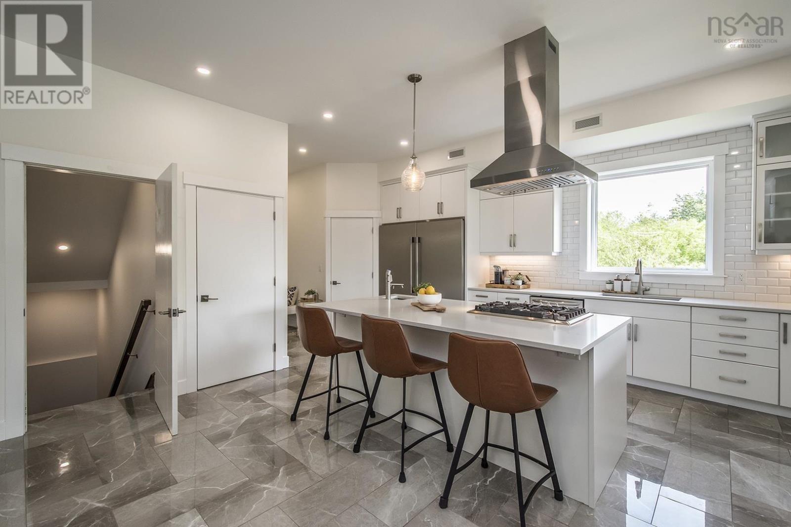 Welcome to this stunning, custom-built modern home nestled in the picturesque town of Wolfville, Nova Scotia. This architectural masterpiece boasts a seamless blend of luxury, functionality, and energy efficiency, offering an unparalleled living experience for those who appreciate the finer things in life. As you approach the property, you'll be captivated by the grandeur of this home, sitting gracefully on an expansive lot, the exterior showcases an exquisite combination of sleek stone and wood siding, composite decks, and a striking metal roof, which not only adds to its visual appeal but also ensures long-lasting durability. Step inside, and be prepared to be enchanted by the contemporary design and attention to detail that define every corner of this residence. The open-concept floor plan creates a seamless flow between the living spaces, perfect for both relaxing family evenings and elegant entertaining. This smart home is equipped with the latest technology, allowing you to control various aspects of the house with ease. Every inch of this home has been meticulously crafted with top-quality materials, from the flooring to the fixtures, ensuring a luxurious and enduring finish. The bedrooms are spacious and offer tranquil retreats, while the bathrooms are elegantly designed with luxurious finishes, modern fixtures, and soothing colour palettes. Enjoy the close proximity to the renowned vineyards that the region is known for, allowing residents to indulge in the pleasures of wine tasting and breathtaking views of the surrounding valleys. 132 Orchard Avenue is a statement of architectural brilliance and luxurious living that provides a harmonious blend of aesthetics, comfort, and sustainability, making it a truly exceptional place to call home. (id:22211)
