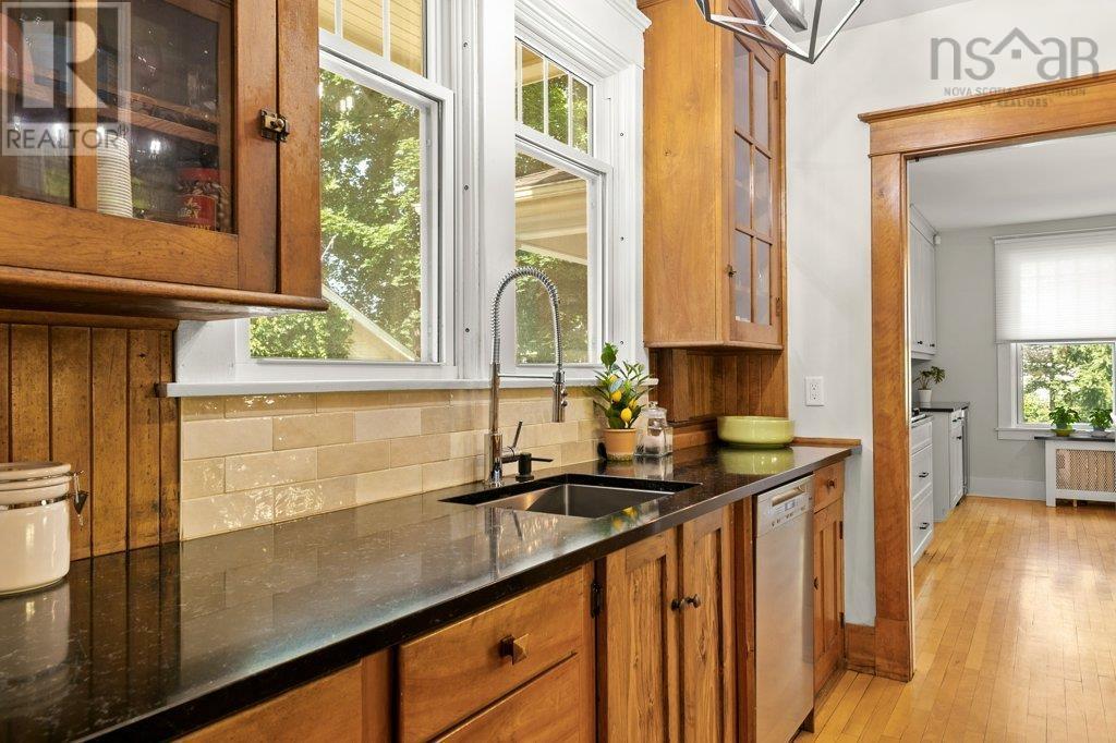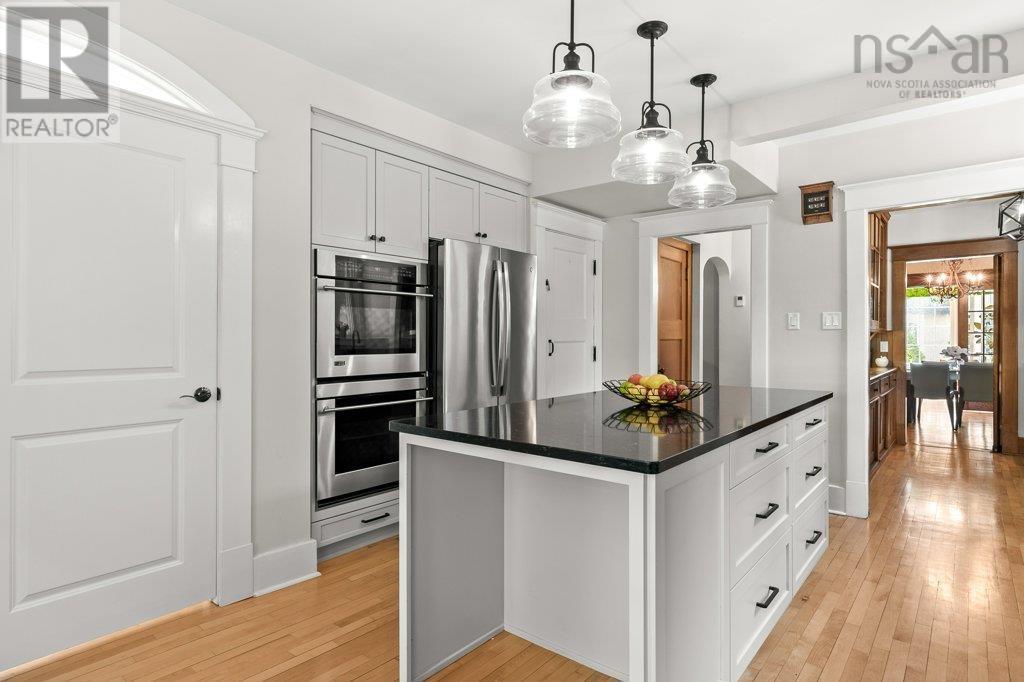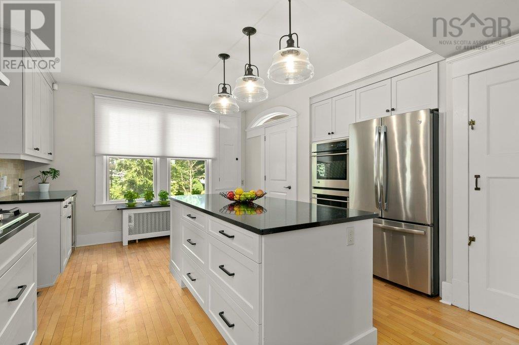 Welcome to 580 Main Street, a true reflection of a bygone era in the heart of Wolfville. This stunning home exudes the timeless charm and craftsmanship we have come to expect in such a grand-century home. The original character has been preserved while adding modern updates, including mostly new windows (2017), new doors (2017), renovated kitchen (2019), renovated baths (2022), and air conditioning throughout. The dining room will transport you to this home's past, boasting original trim and paneling, gorgeous built-in cabinetry, and painted wall art dating back nearly a century. A delightful sunroom bathed in natural light provides the perfect spot for relaxation with a cup of tea and a good book. The kitchen, and adjacent butler's pantry, have been tastefully renovated, featuring a spacious center island and high-end appliances, including double ovens, a 36" 5-burner propane cooktop, and a 36? refrigerator ? all included. A new powder room has been carefully tucked away, and an original mud room provides that little extra convenience. The second-floor, principal bedroom is transformed into a serene retreat thanks to a newly renovated ensuite, with custom-tiled shower, air tub with Chroma therapy, and plenty of gorgeous natural light. The second floor offers plenty of additional space, with two more generously-sized bedrooms, a spacious walk-in closet, a custom media room, and a beautiful 3-piece bath. A spacious third-floor loft and adjacent, renovated 3-piece bath provide a wonderful private space, ideal as a guest retreat or home office. Conveniently located, this residence provides easy walking access to various amenities in Wolfville. The town offers a vibrant lifestyle, enriched by its boutique shops, diverse cuisine, fitness facilities, parks, theaters, art galleries, and nature trails. (id:22211)