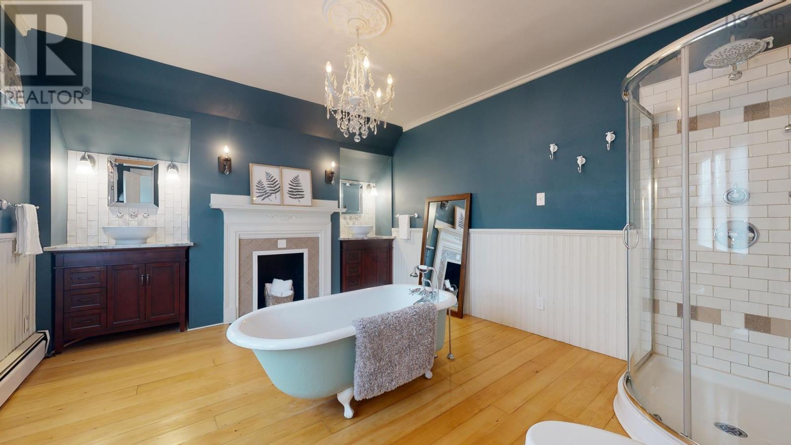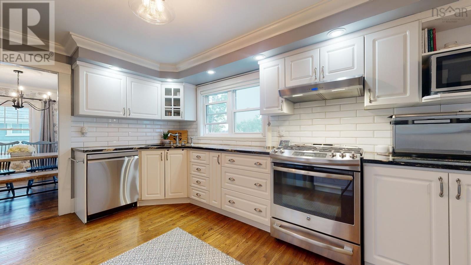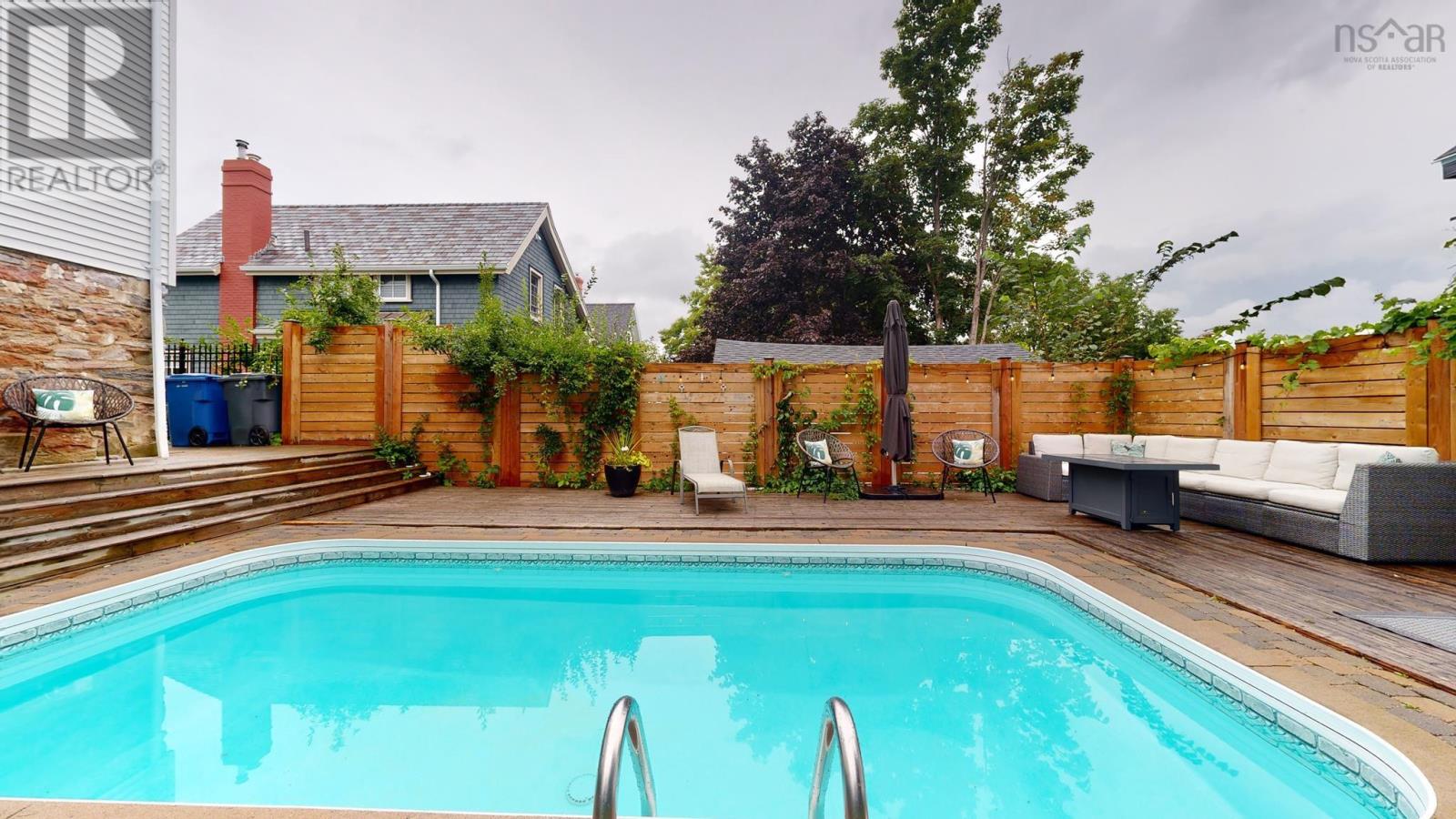 Exquisite 4-bed, 4.5-bath home in the charming town of Wolfville. The property boasts a unique feature of an optional 1-bed, 1-bath apartment with a private entrance, its own driveway, an excellent option for hosting guests or rental income. As you enter the residence, you'll immediately be captivated by its impressive design &features. This home masterfully combines contemporary conveniences with the allure of historical charm. Meticulous renovations showcase impeccable craftsmanship& a keen eye for detail. Outside, the house is adorned with modern paint hues, custom wrought iron railings, & updated landscaping that adds to its curb appeal. Stepping inside, the main floor greets you with a generously sized eat-in kitchen equipped with high-end appliances, solid surface countertops, & a newly added coffee/bar area. A charming double-sided gas fireplace imparts both warmth & character. The formal dining room is tailor-made for hosting gatherings, while the three-season porch offers a serene space for your morning coffee or evening beverages. The living room is adorned with wainscoting & a wood fireplace that enhances its ambiance. An office/den, family room, recently renovated half bathroom, & mudroom round out the offerings on the main floor. Upstairs, the Primary suite is sure to impress with its expansive walk-in closet & luxurious ensuite bathroom. Each bedroom has its own bathroom & features custom built-ins. The property has been refreshed with new paint, light fixtures, 4 heat pumps, & smart plugs, infusing a modern touch throughout. Fenced-in backyard is a haven, complete with an inground pool that has been converted to salt water, accompanied by a lounge area & a hot tub nestled under a Toga Pergola, the perfect outdoor living space. Professionally landscaped yard also includes a new custom shed, an interlock stone driveway, a carport,& a walkway. Conveniently situated within walking distance of downtown Wolfville's amenities. An opportunity not to be missed (id:22211)