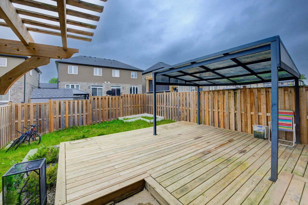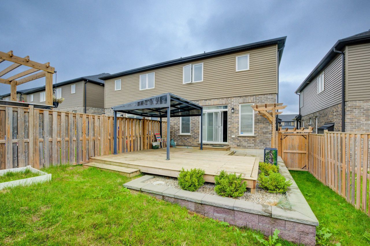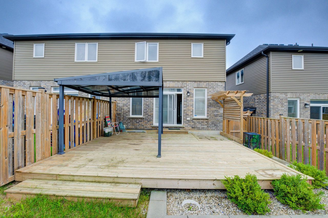 Welcome to Stunning Bright rare to find This semi-detached home with double car garage is sure to impress with its fantastic upgrades. The layout of this house is top notch. Open concept on the main level features a dining area, living room with fireplace, all tiled flooring, and a stunning kitchen. Lots of natural light with some California Shutters. The beautiful kitchen has bright white cupboards, sparkling white shade quartz counter tops . The second level offers a fabulous family room, office, exercise area, really anything you would need some extra space. A couple more stairs takes you to 3 decent sized bedrooms and a 4pc bath. The master bedroom is amazing with attached 4pc ensuite and a walk in closet. This spring and summer enjoy your private back yard that is fully fenced, with a beautiful deck and gazebo for shade. Close to all amenities ,401/403 and short walk to amazing Thames River and Pittock conservation area.