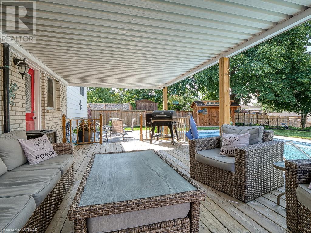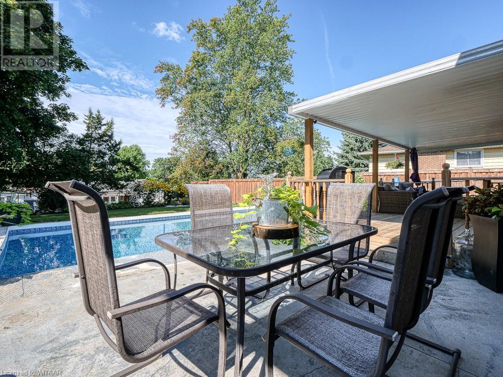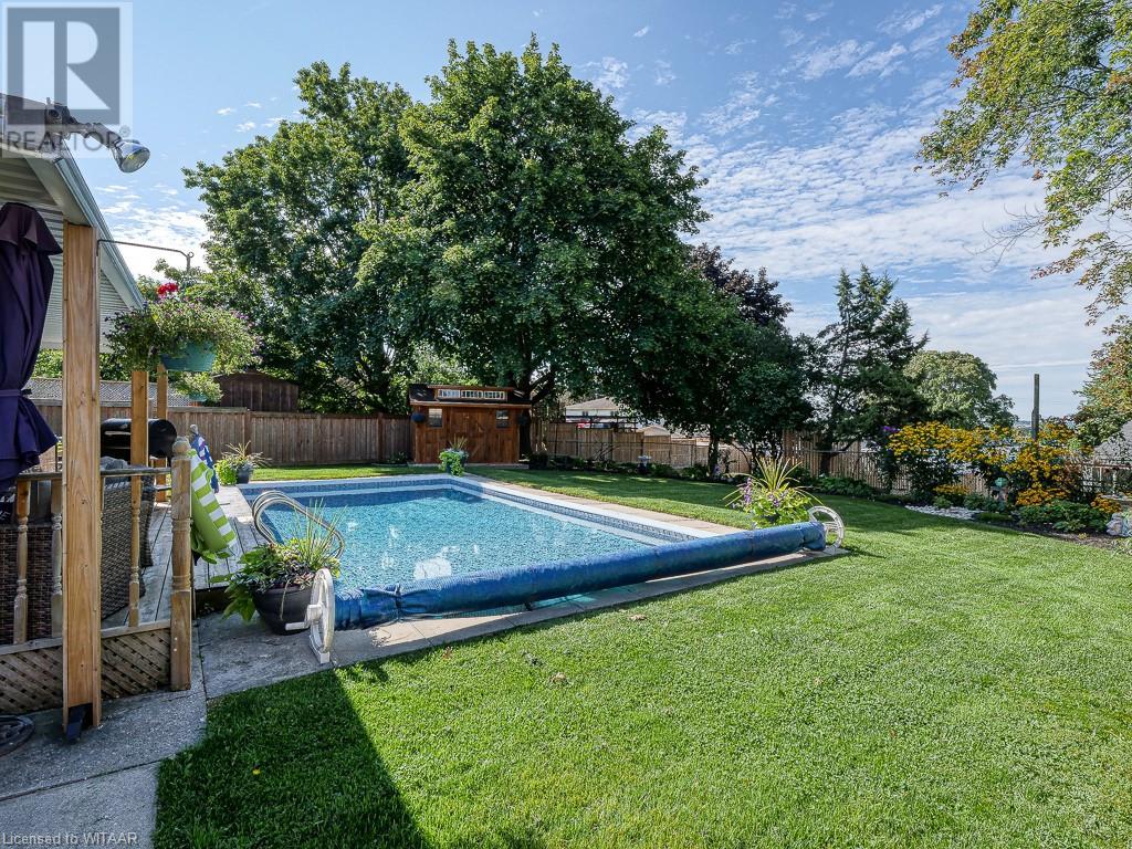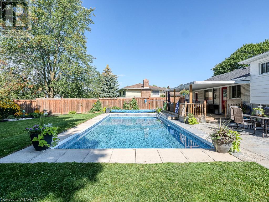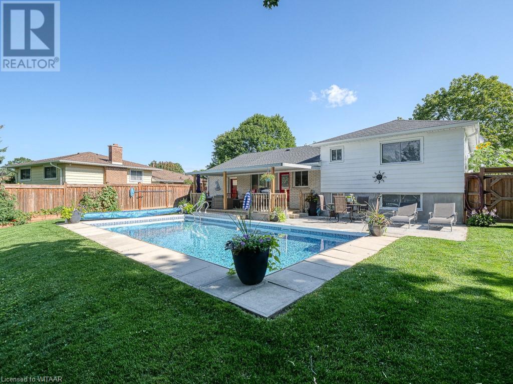 Location, Location, Location!! This neighbourhood is a hidden gem on a family friendly cul-de-sac and this 3 bedroom home provides everything you are looking for, including the potential for a 4th bedroom. The layout provides both space and functionality with 3 bedrooms and 4pc bath on the second level and a main level with an open concept appeal with an inviting foyer, kitchen, dining and living rooms. The kitchen and dining room overlook the beautiful backyard featuring modest gardens and an in-ground pool (new liner 2022, new pool equipment 2023). There is both a covered deck and a patio area perfect for the entertainer to host backyard parties oor for those that just wan a peaceful place to relax and a sunset view every evening. The lower level has a newly finished family room with space for a study area, a half-bath and laundry room and an unfinished space for a 4th bedroom. The home is almost entirely carpet free with original hardwood on the main level and bedrooms (under the carpet in the primary). The goyer, kitchen and family room feature fuss-free durable vinyl tile. It's just minutes away from schools, parks, shopping and major highways making your daily routines a little bit easier. (id:22211)