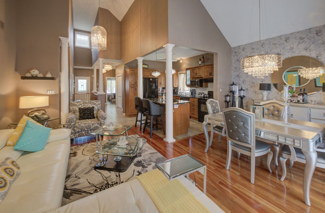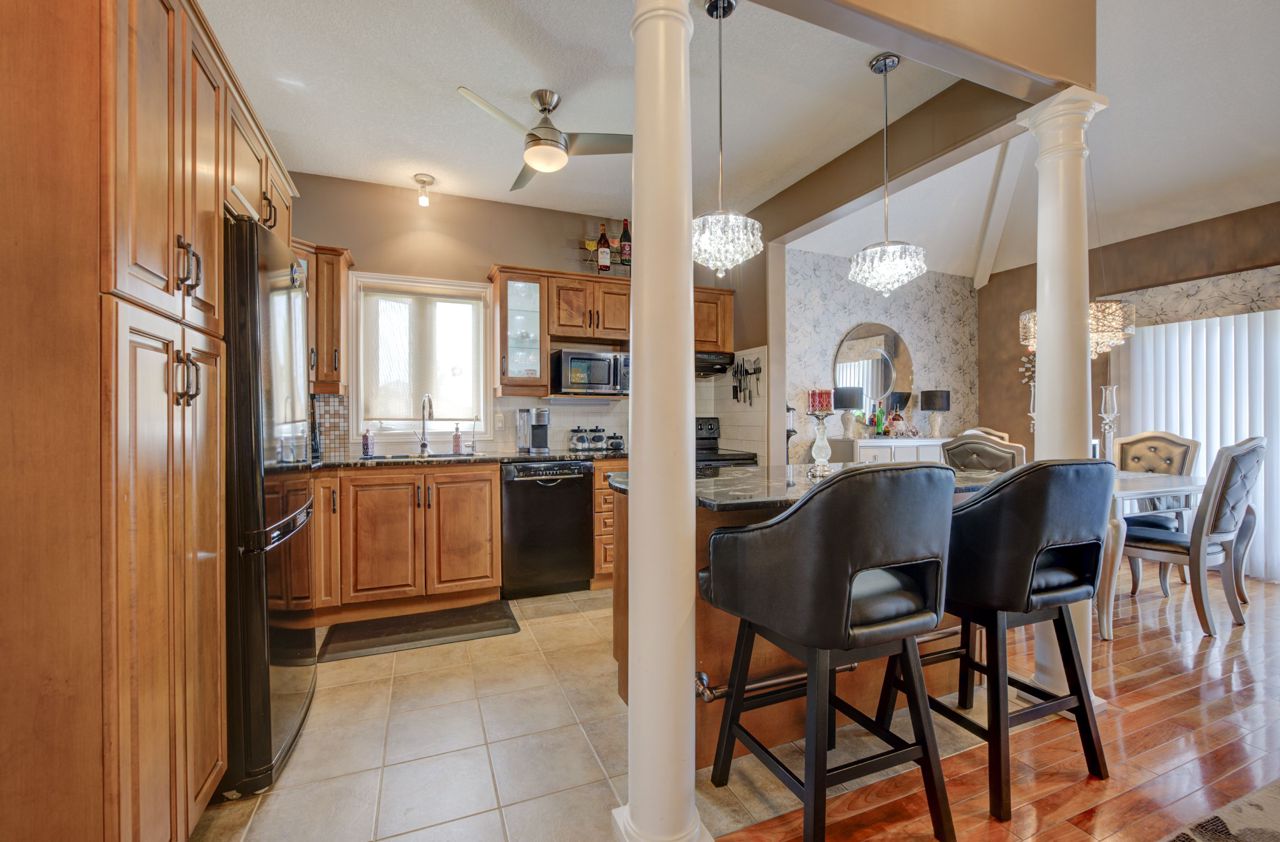 Welcome to 767 Garden Court Cres, nestled in the highly sought-after Villages of Sally Creek, this exquisite end unit offers the unique advantage of permanent green space on one side, providing a sense of tranquility and privacy. Designed with 55+ adults in mind, this thoughtfully crafted home showcases two main floor bedrooms and bathrooms, ensuring convenience and comfort. The primary bedroom boasts a walk-in closet and ensuite featuring a low barrier shower. Step inside to discover a wealth of features, including a 1.5 car garage, a recently updated roof (2021), beautiful hardwood flooring, and a stylish granite kitchen. The open concept living area boasts soaring ceiling details and recessed lighting, creating an inviting and spacious atmosphere. The convenience of main floor laundry adds to the ease of living. This home offers a floor plan that keeps on giving, as the fully finished basement features a large recreational room, an additional bathroom, and ample storage spaceExclusive acess to the rec center, lounge, bar, dining hall, kitchen, arts room, games room, gym, and library. Close to Sally Creek Golf Course, Bistro, Birckhouse Brewpub, trail and other amentities.
