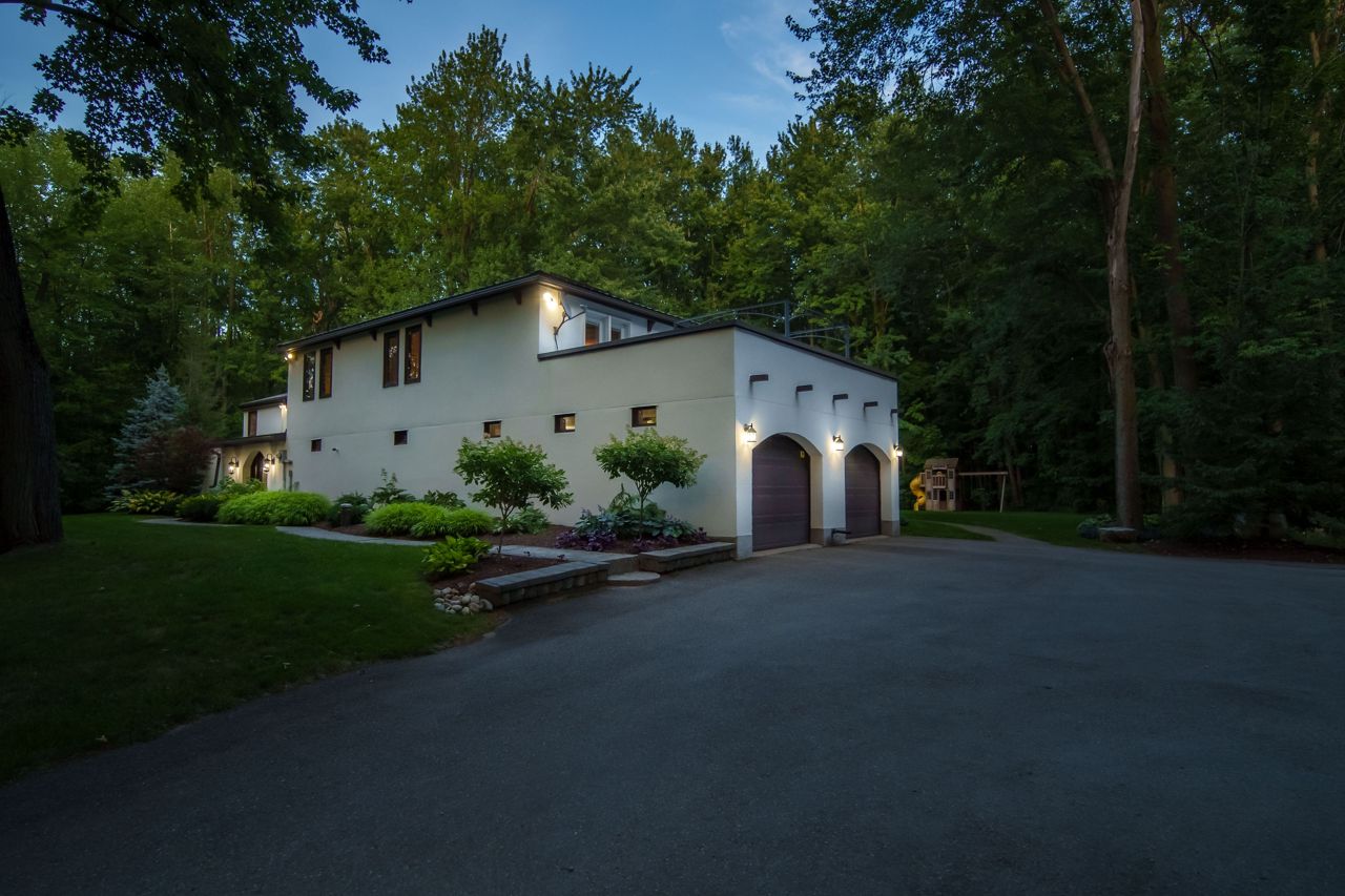 ORIGINALLY LISTED FOR $2,688,000. YOUR CHANCE TO OWN A BEAUTIFUL COUNTRY PROPERTY UNDER MARKET VALUE! Tremendous value, rare opportunity. 7.12 acres of breathtaking views. This spectacular property features a charming home AND detached winterized three-car garage with finished loft. Upwards of 400k in upgrades! New roof reconstruction (2021), heat pump (2020), entrance, laundry room and basement reno. including heated floors (2022), new well (2015 & 320 feet deep), kitchen (2016), wood burning stove replacement (2015), interior paint and hardwood (2014), exterior re-stuccoed & re-painting (2016), & more! Elegantly stated entrance with herringbone tile, perfect floor plan for entertaining, cozy fireplaces, chef’s kitchen and walk out to large deck/outdoor gazebo – this home has it all! The property includes a detached two level, three car garage with heated floors. Low property taxes ($3,663.81 in 2022) through the conservation land tax incentive program.This property is located so close to two major cities and beautiful walking trails- Truly a incredible location!