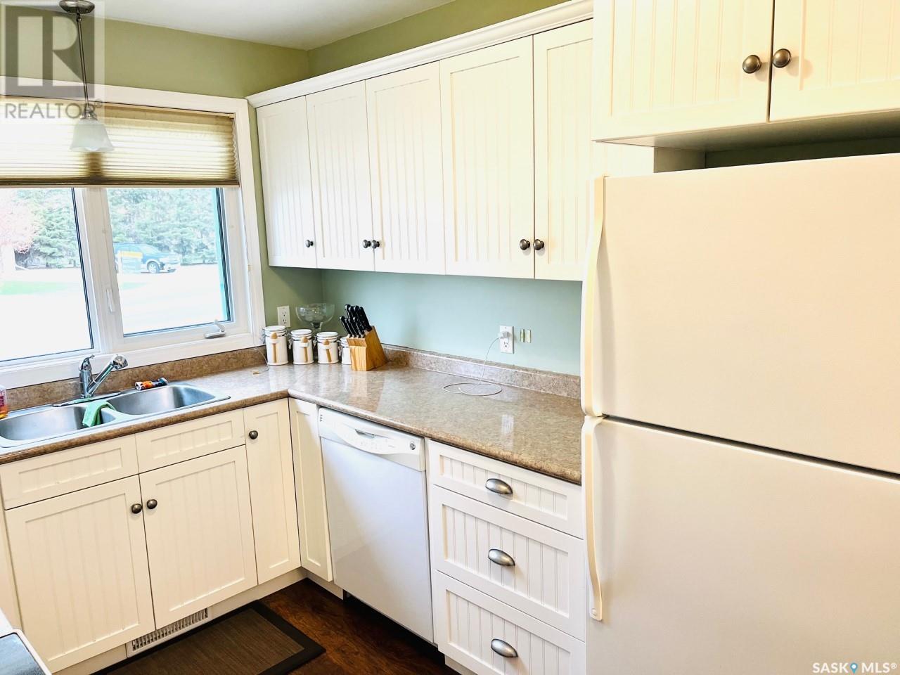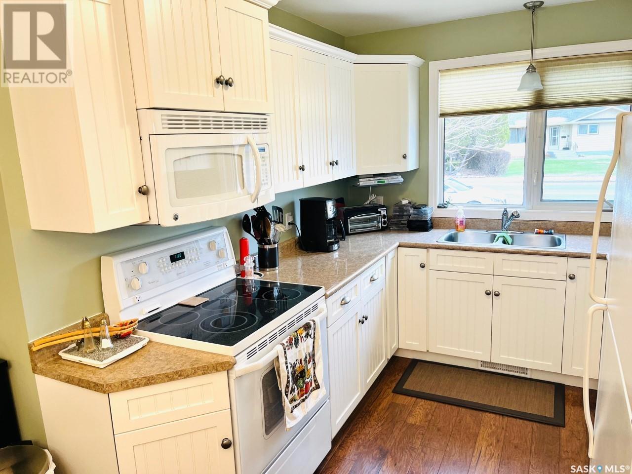 This 1059/SF impeccable family home is located in the southwest area of Yorkton, just minutes from schools, parks and the Gallagher Centre. Recent updates include triple pane windows, kitchen cabinets, high quality laminate throughout the main level, and vinyl siding. The main level has 3 nice size bedrooms, 4-piece bath, kitchen with ample cupboards and counterspace, and a dining room the seamlessly connects to a large living room flooded with natural sunlight! The basement features a large recreation room, an updated 2nd bathroom, a 4th bedroom and ample area for cold/dry storage. This home also features a beautifully landscaped fenced yard, with singe garage and carport. Call listing agent today for your private showing. (id:22211)