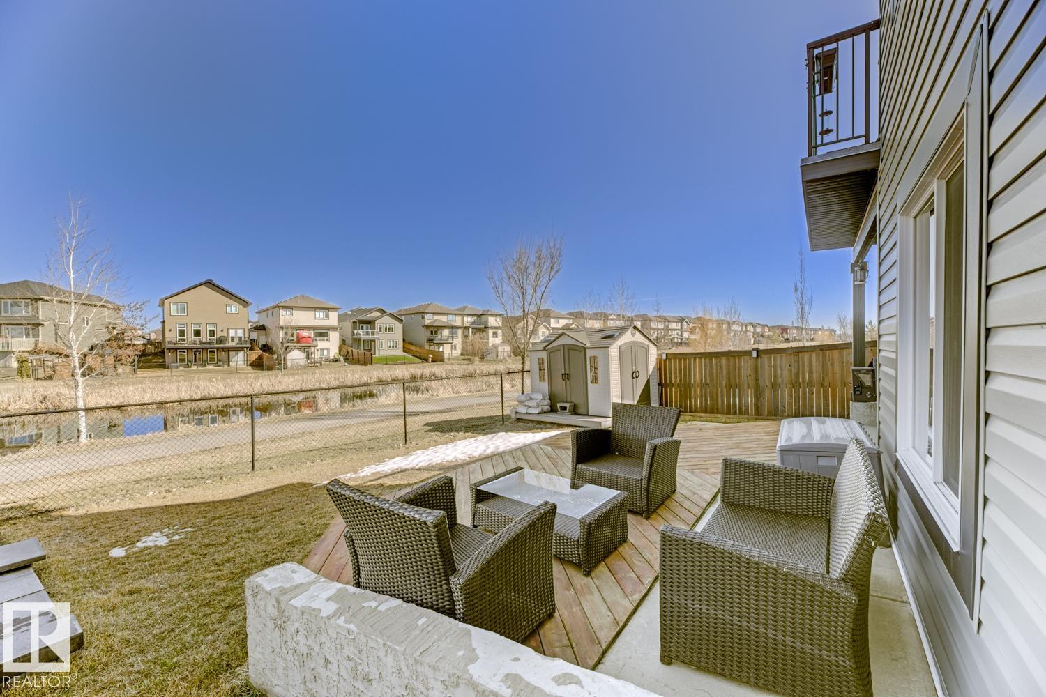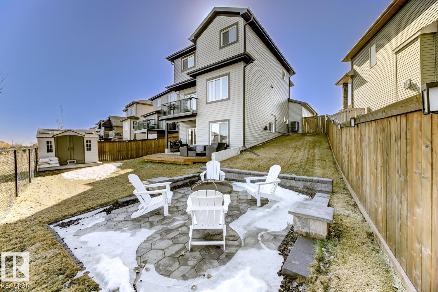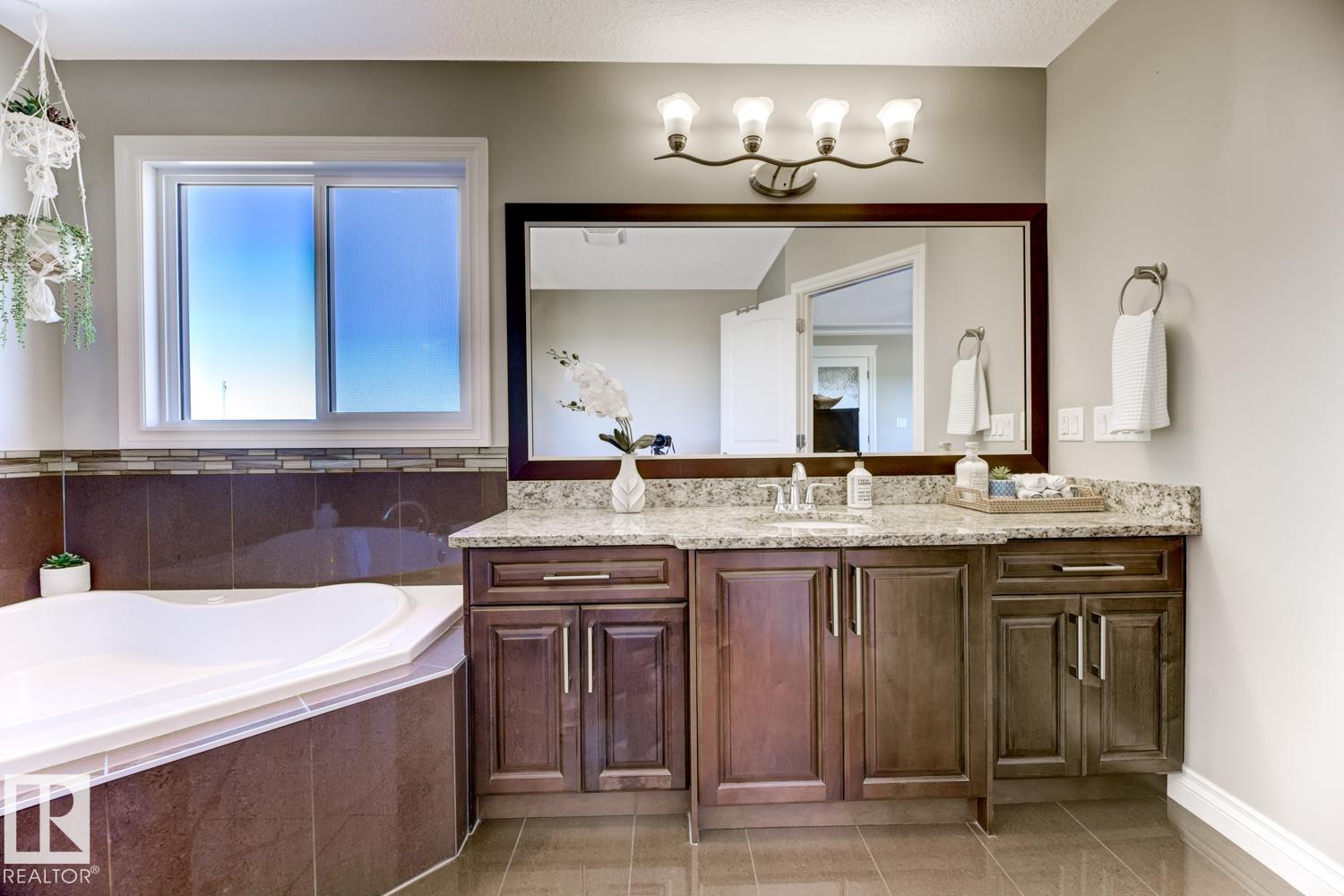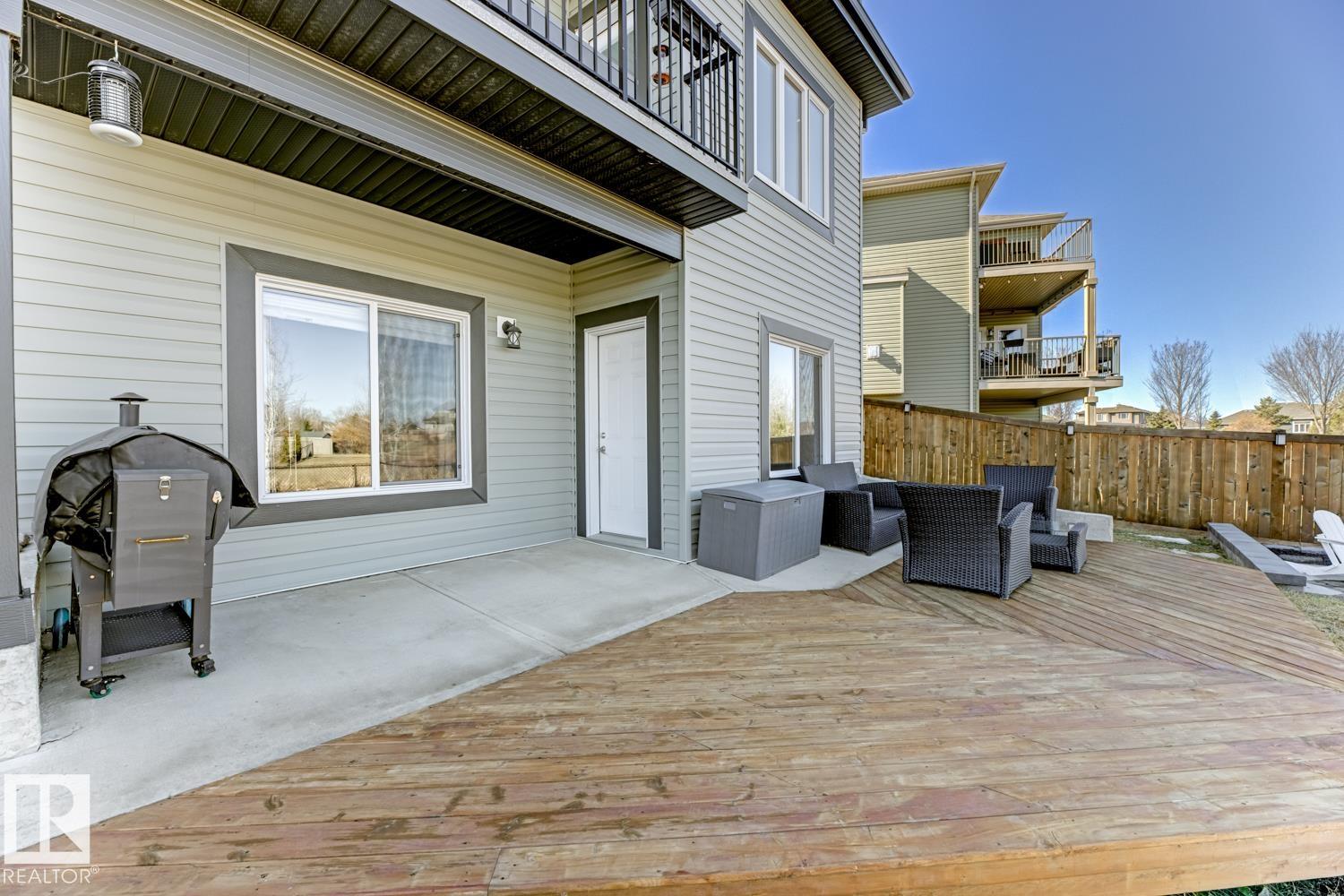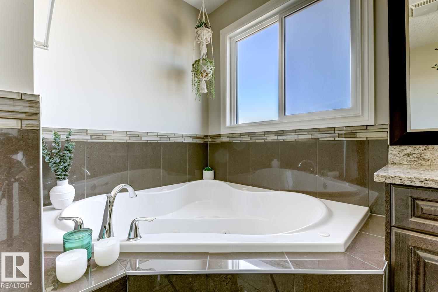 Stunning walkout home backing onto green space. This 1858 sq.ft. two storey features 4 bedrooms and 3.5 baths with a fully finished walkout basement. The main floor offers hardwood floors, a bright dining area, and a high end kitchen with full height cabinets and generous prep space. Enjoy peaceful views from your deck overlooking the greenbelt. Upstairs includes a vaulted bonus room and three large bedrooms. The primary suite has a walk in closet and a 4 piece ensuite with a corner soaker tub. The professionally finished basement includes a fourth bedroom, full bathroom, and spacious family room that opens to the patio and fully fenced yard. Other features include central air conditioning and an oversized 23x23 attached garage. Move in ready and located in a beautiful setting with no rear neighbors. A perfect family home in a sought after location.
