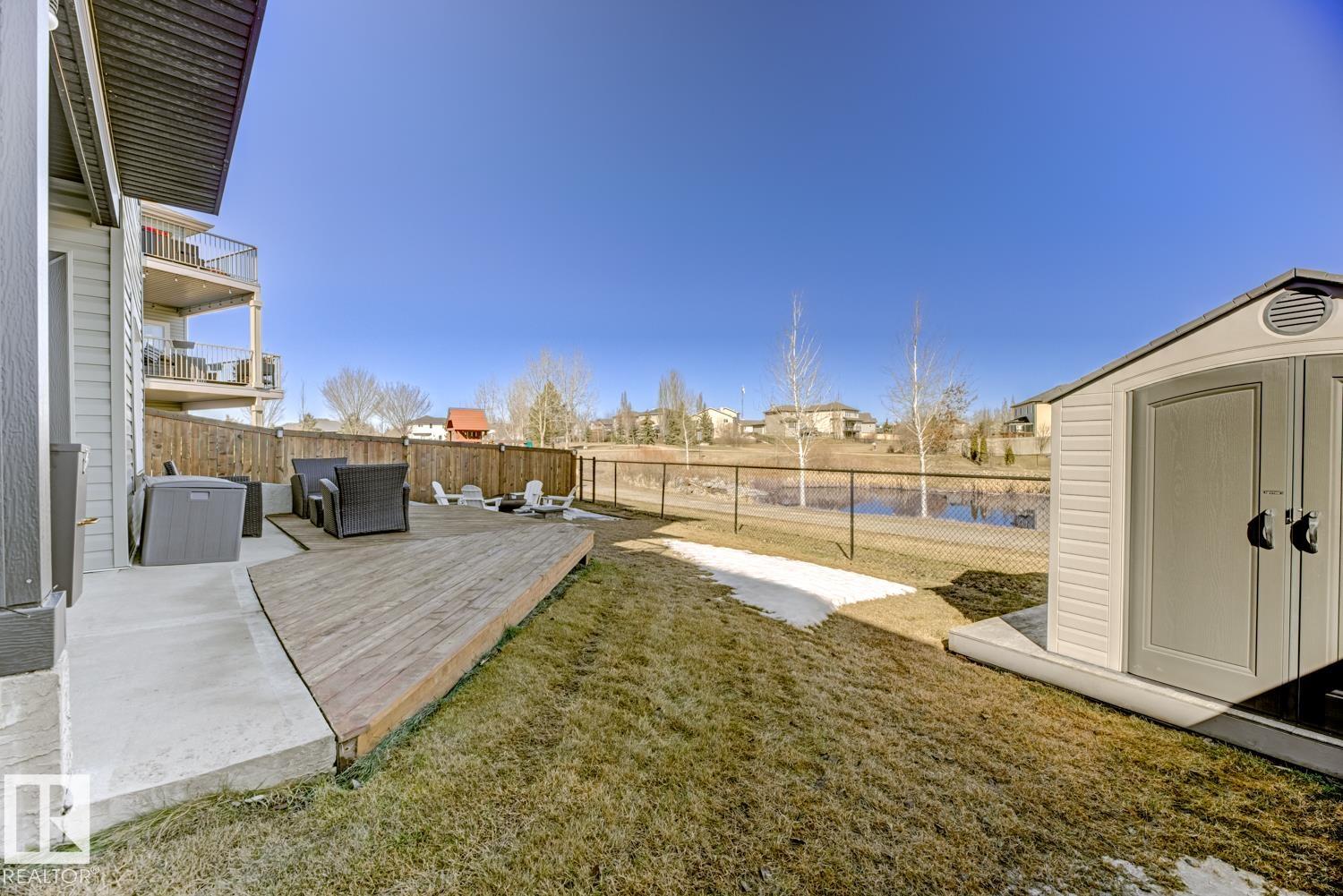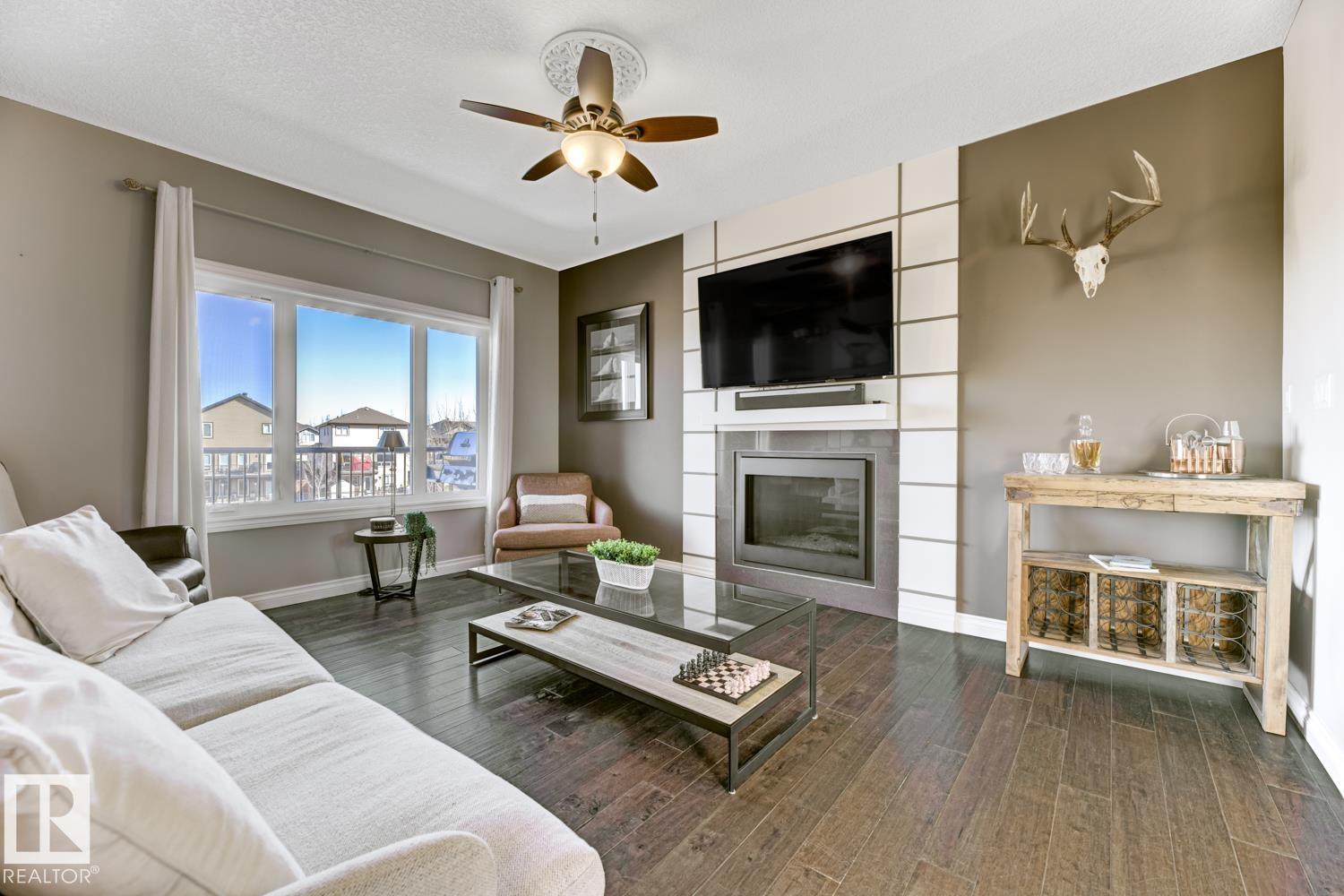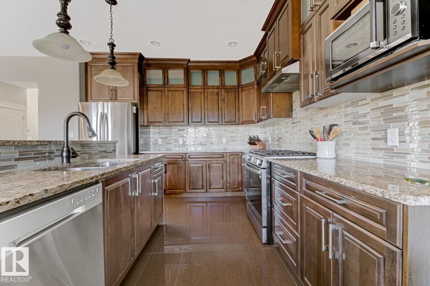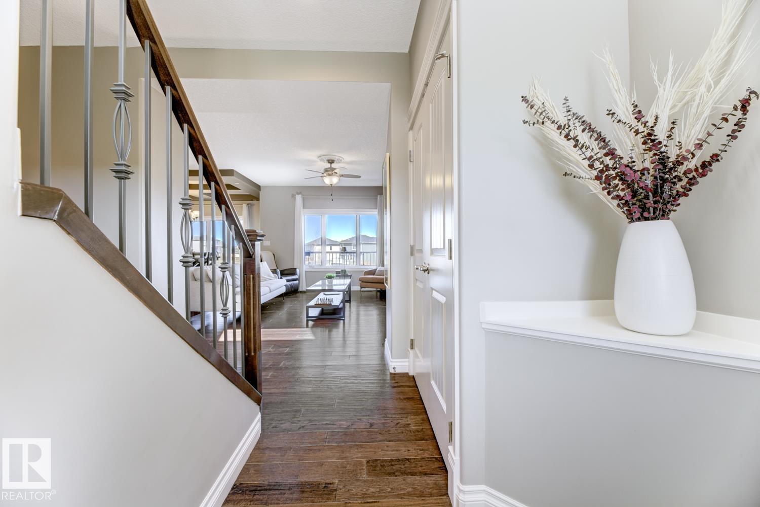 Stunning walkout home backing onto green space. This 1858 sq.ft. two storey features 4 bedrooms and 3.5 baths with a fully finished walkout basement. The main floor offers hardwood floors, a bright dining area, and a high end kitchen with full height cabinets and generous prep space. Enjoy peaceful views from your deck overlooking the greenbelt. Upstairs includes a vaulted bonus room and three large bedrooms. The primary suite has a walk in closet and a 4 piece ensuite with a corner soaker tub. The professionally finished basement includes a fourth bedroom, full bathroom, and spacious family room that opens to the patio and fully fenced yard. Other features include central air conditioning and an oversized 23x23 attached garage. Move in ready and located in a beautiful setting with no rear neighbors. A perfect family home in a sought after location.