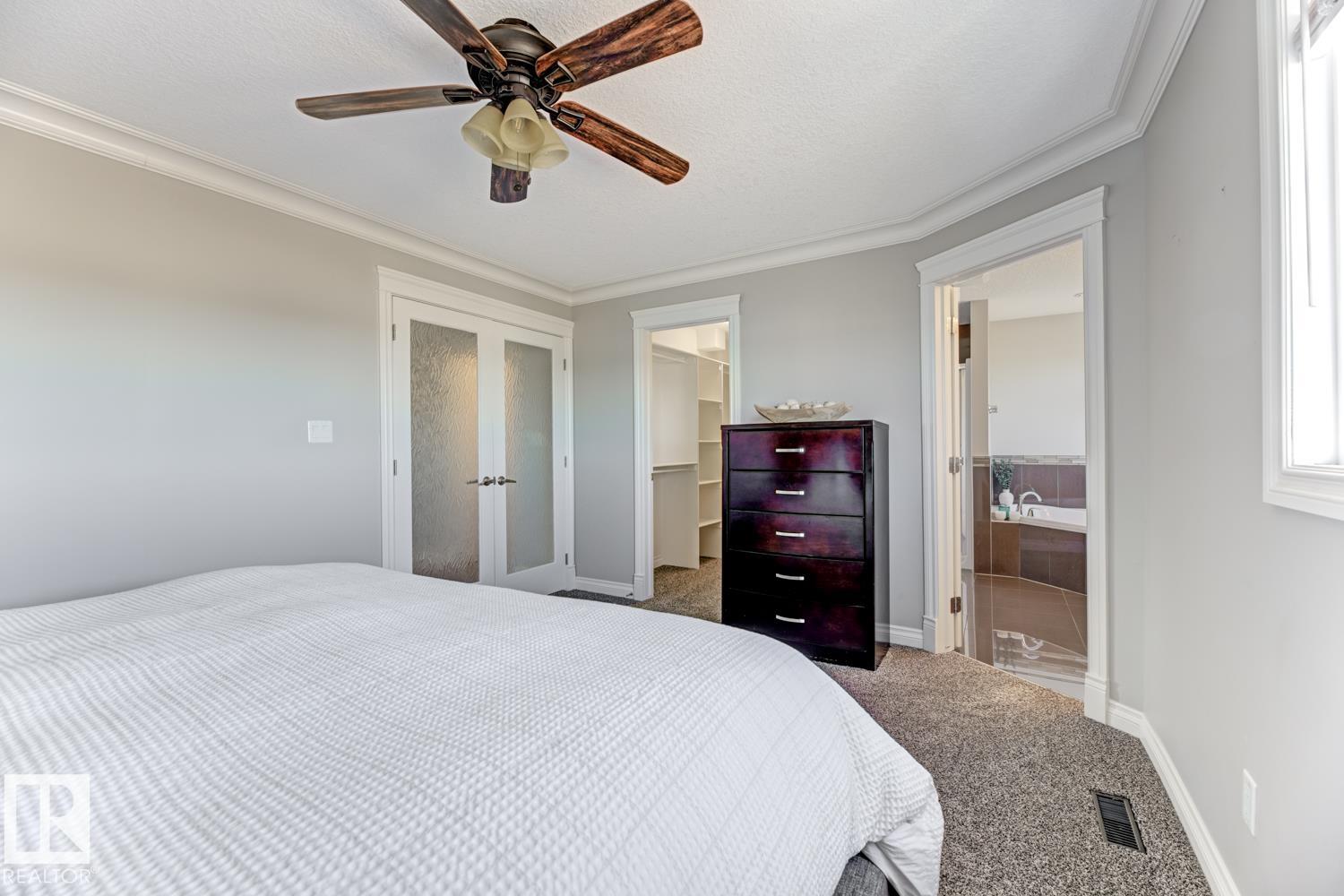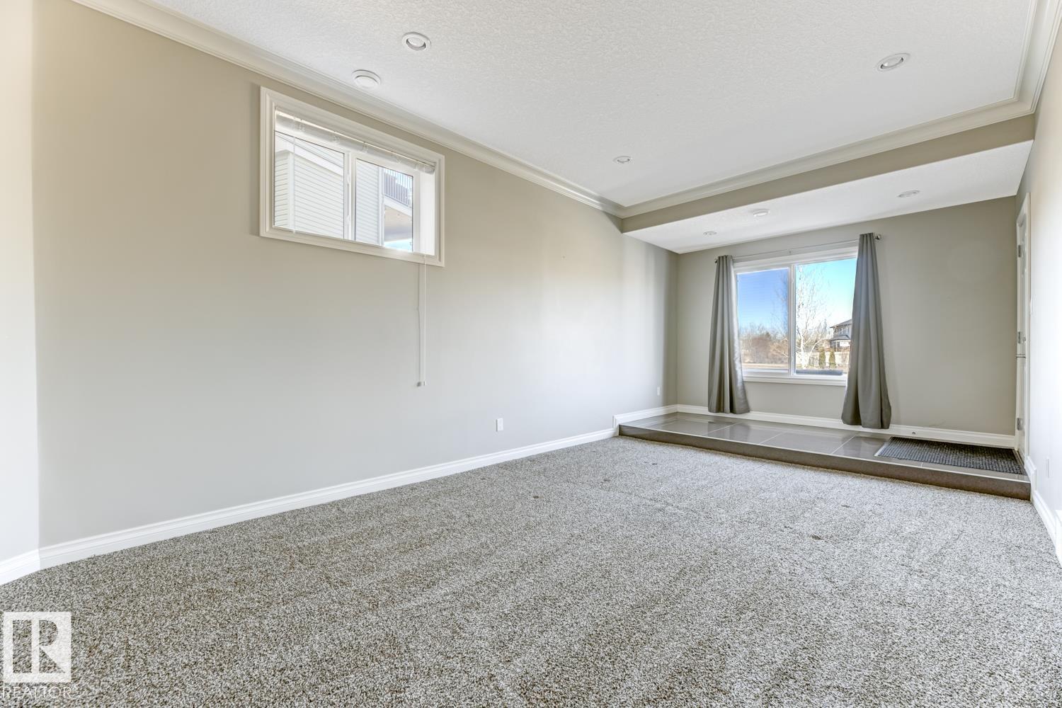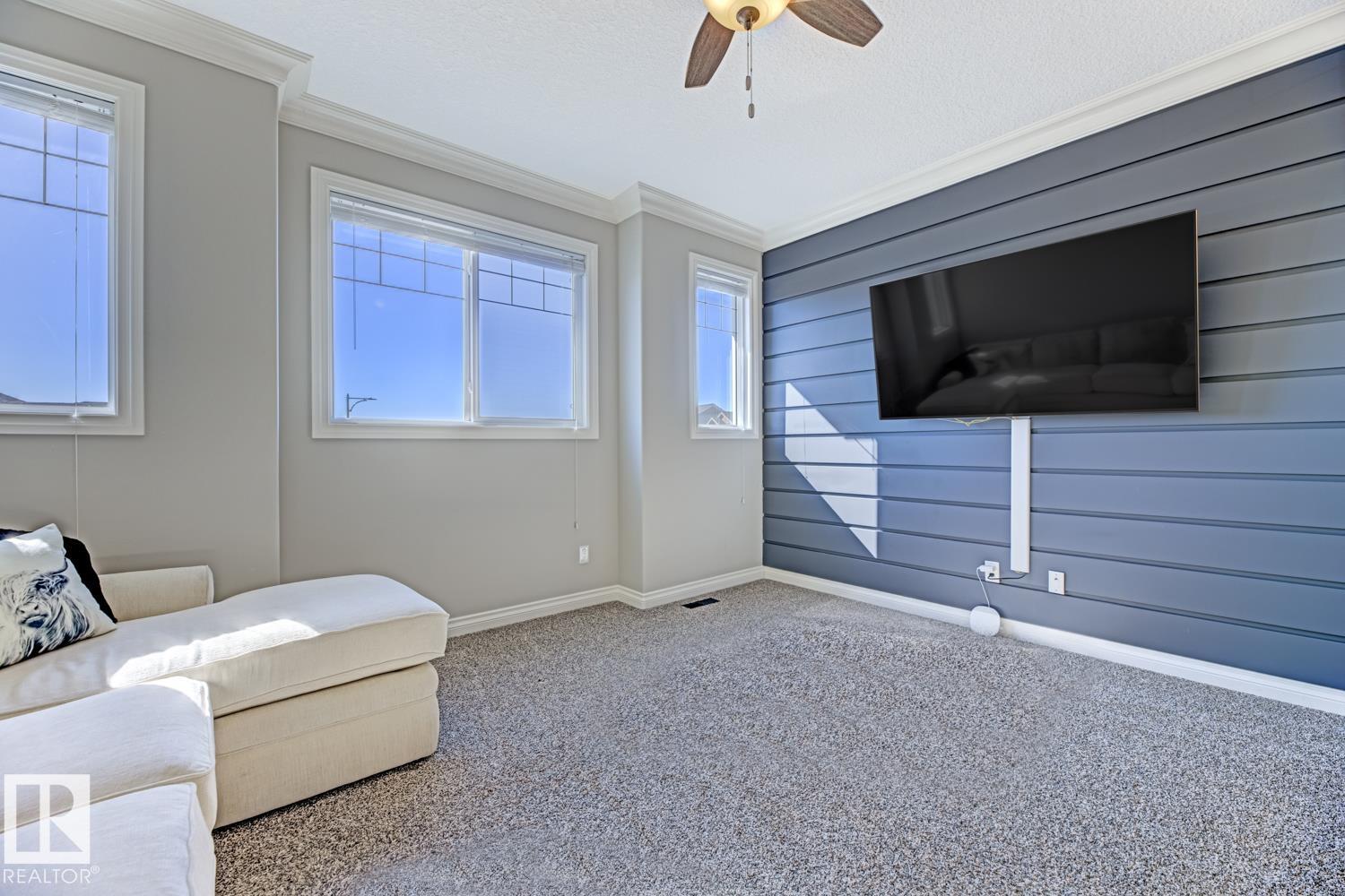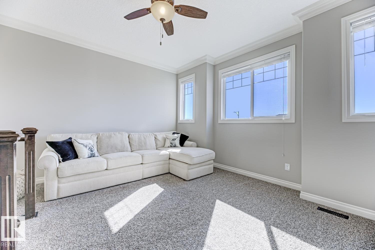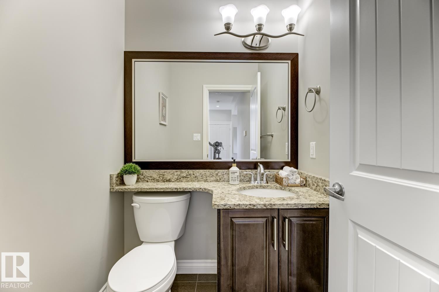 Stunning walkout home backing onto green space. This 1858 sq.ft. two storey features 4 bedrooms and 3.5 baths with a fully finished walkout basement. The main floor offers hardwood floors, a bright dining area, and a high end kitchen with full height cabinets and generous prep space. Enjoy peaceful views from your deck overlooking the greenbelt. Upstairs includes a vaulted bonus room and three large bedrooms. The primary suite has a walk in closet and a 4 piece ensuite with a corner soaker tub. The professionally finished basement includes a fourth bedroom, full bathroom, and spacious family room that opens to the patio and fully fenced yard. Other features include central air conditioning and an oversized 23x23 attached garage. Move in ready and located in a beautiful setting with no rear neighbors. A perfect family home in a sought after location.