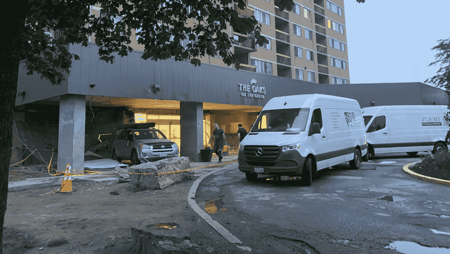 事故发生后,消防局已将情况上报给多伦多市建筑部门,相关结构安全调查正在进行中。初步现场图像显示,垮塌结构由钢筋混凝土构成,坍塌范围波及整块门廊顶盖,涉及重大公共安全隐患。