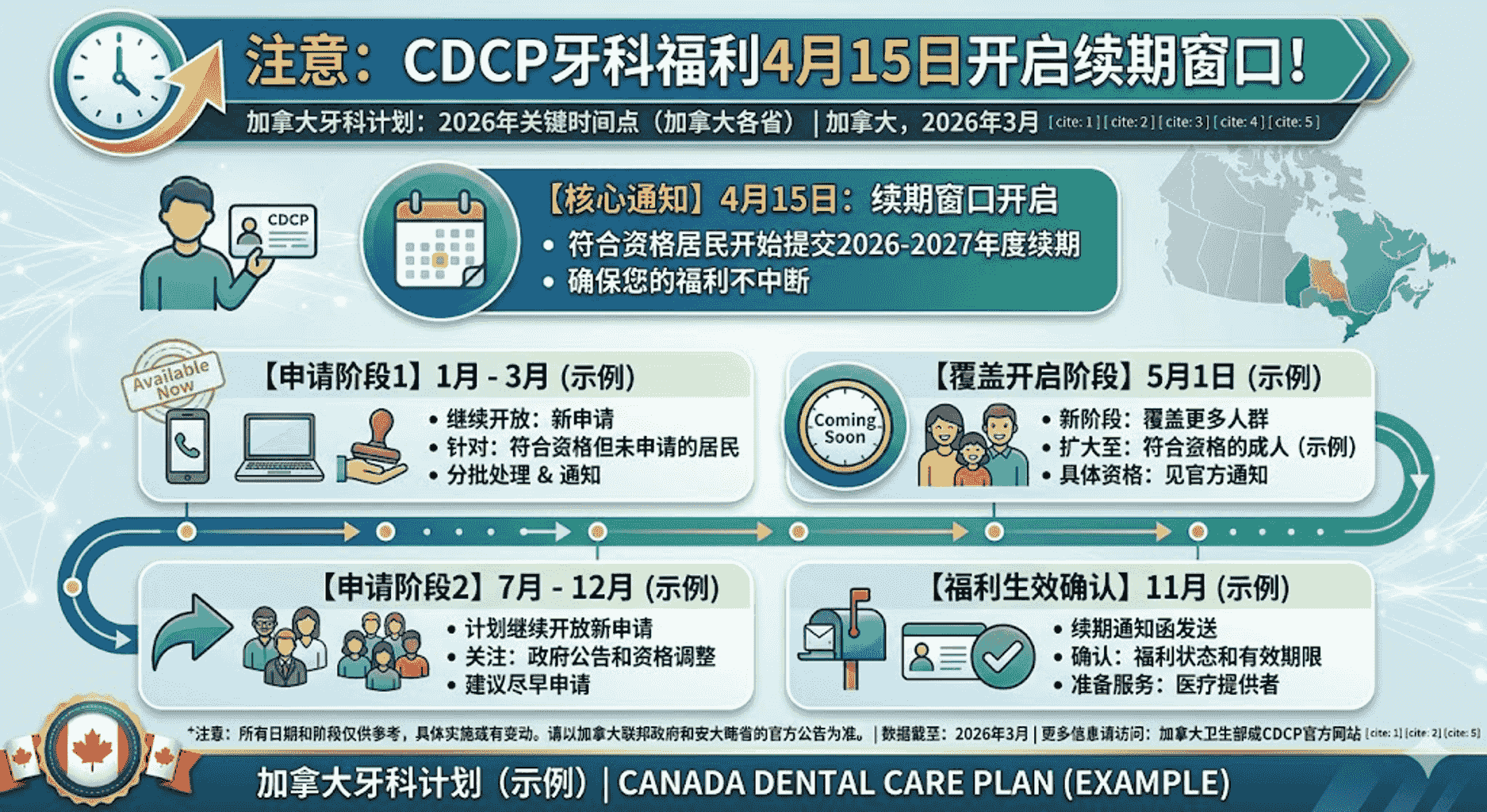 最近,加拿大不少人都在关注一个和“看牙”直接相关的时间节点:加拿大牙科护理计划(CDCP)即将进入新一轮续期。根据最新消息,这项已经覆盖超过630万人的公共项目,将在4月中旬正式开启续保窗口。对于已经在计划中的人来说,这不仅关系到能不能继续享受补贴,更直接影响到日常看牙的花费是否还能保持在较低水平。