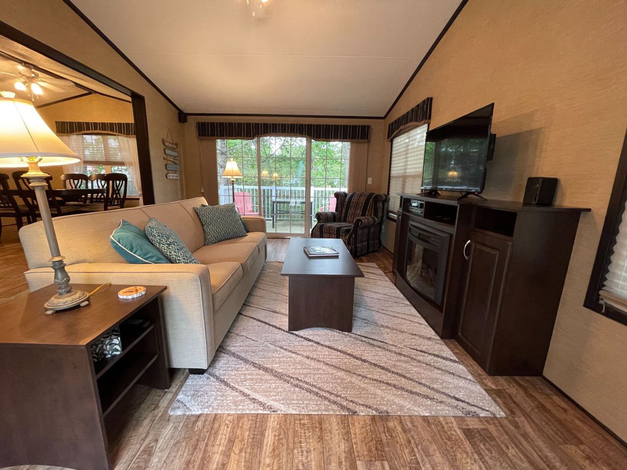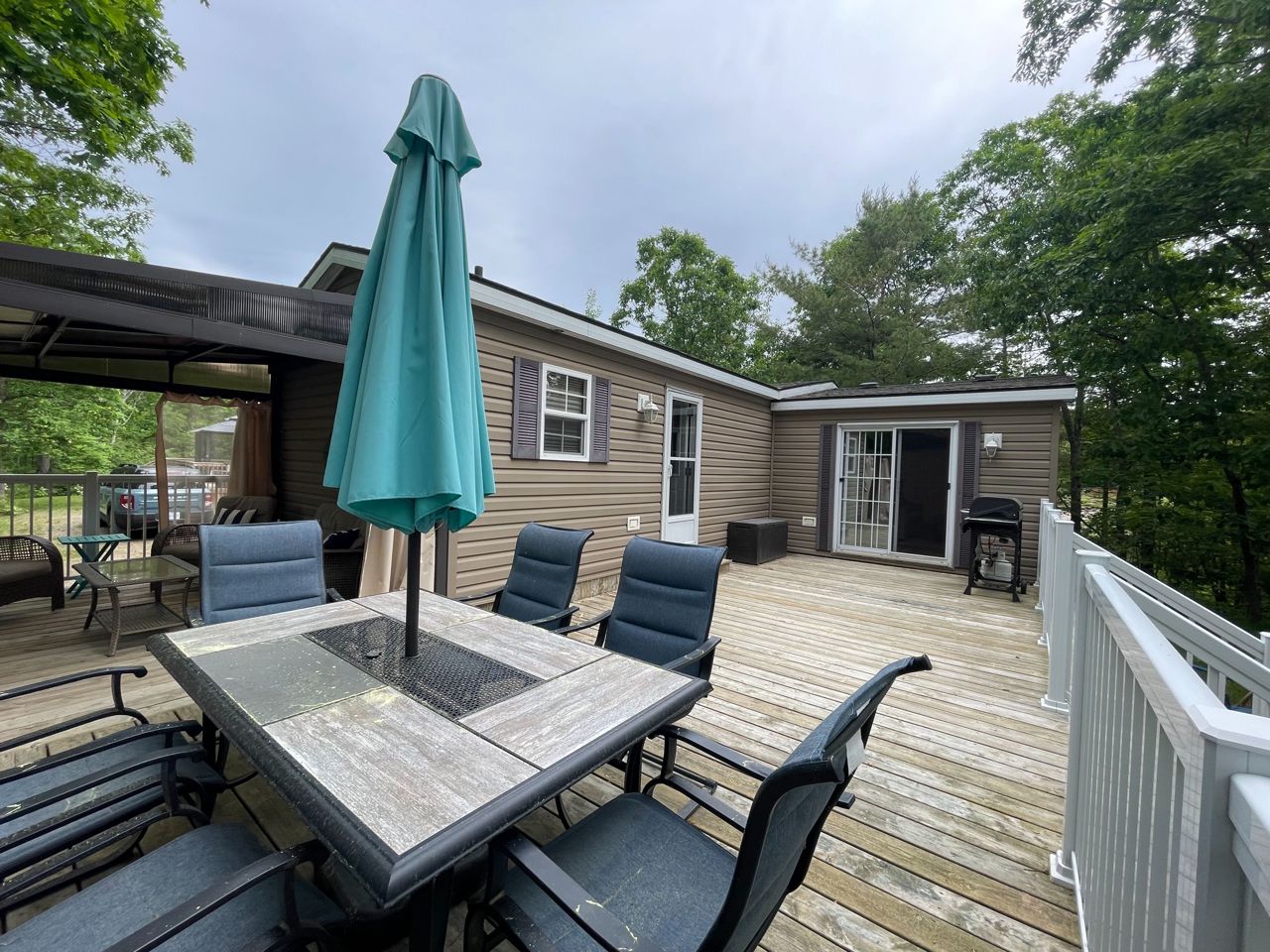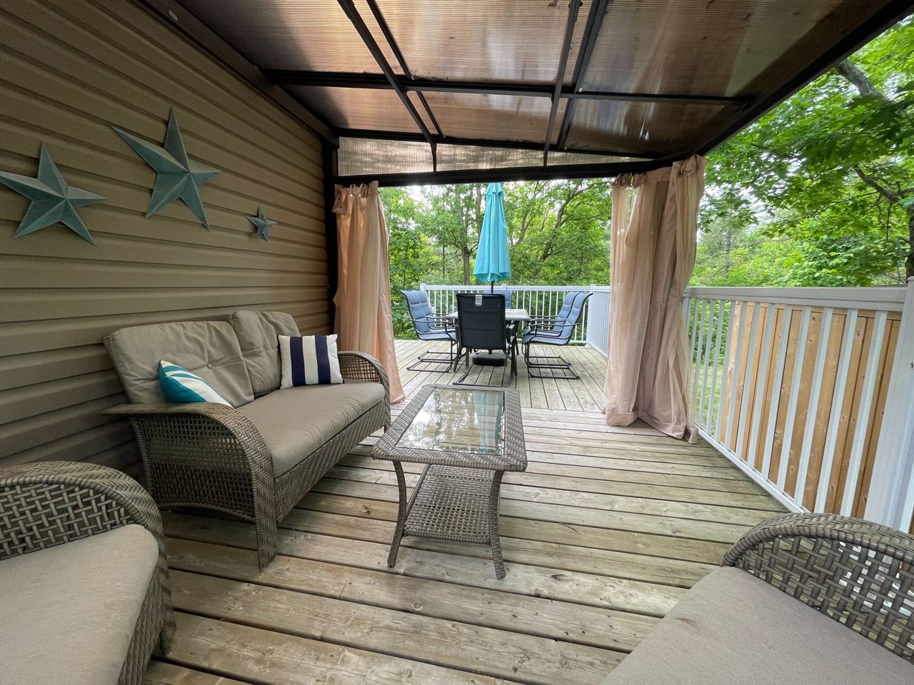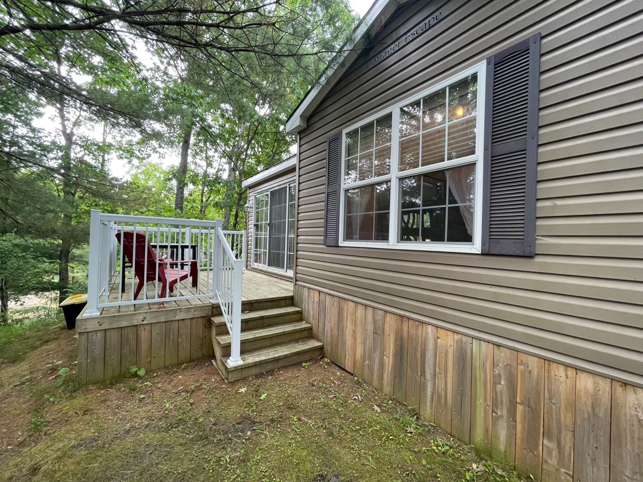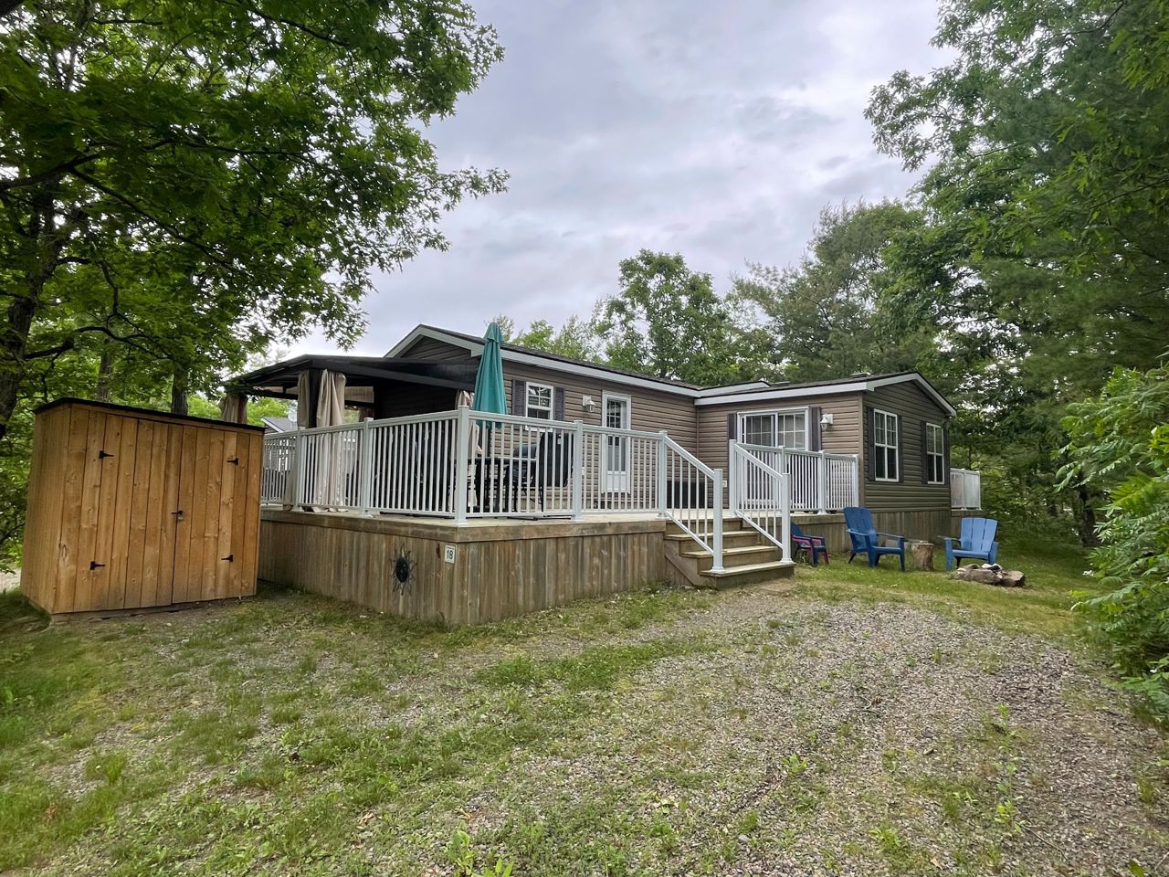PRIVATE RENTALS VIA AIRBNB & VRBO WILL BE ALLOWED FOR 2026!* Escape to this charming cottage, set on one of the largest and most private lots in Lantern Bay. Offering 736 sq. ft. of cozy living space, this retreat features 3 bedrooms, 1 full bath, and an inviting open-concept living area that seamlessly connects the kitchen and living room. Step outside to enjoy the extensive decking that wraps around the cottage, providing the perfect space to unwind and take in the peaceful surroundings. Gather around the fire pit for evenings filled with laughter, storytelling, and roasted marshmallows. Inside, the sleeping arrangements are designed for comfort, including a queen bedroom and two additional rooms with double/single bunk beds and built-in storage. Beyond the cottage, you're just a short walk from everything the resort has to offer sandy beaches, a marina, two pools, community areas, a sports court, and horseshoe pits. Whether you're in the mood for relaxation or adventure, this location has it all. The all-inclusive seasonal fee of $10,425 + HST covers resort activities and amenities, lot rental, hydro, water, sewer, and lawn maintenance leaving you free to simply enjoy your getaway. Owners are only responsible for propane and internet. Plus, HST does not apply to the sale of these units. Ready to make this your seasonal home away from home? *conditions will apply