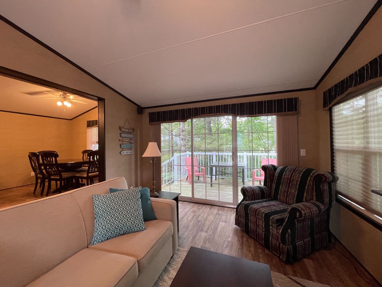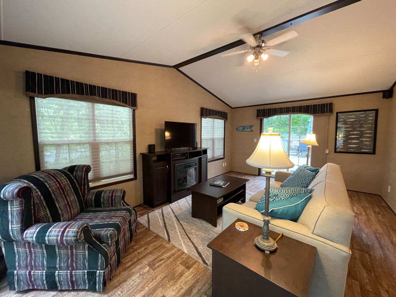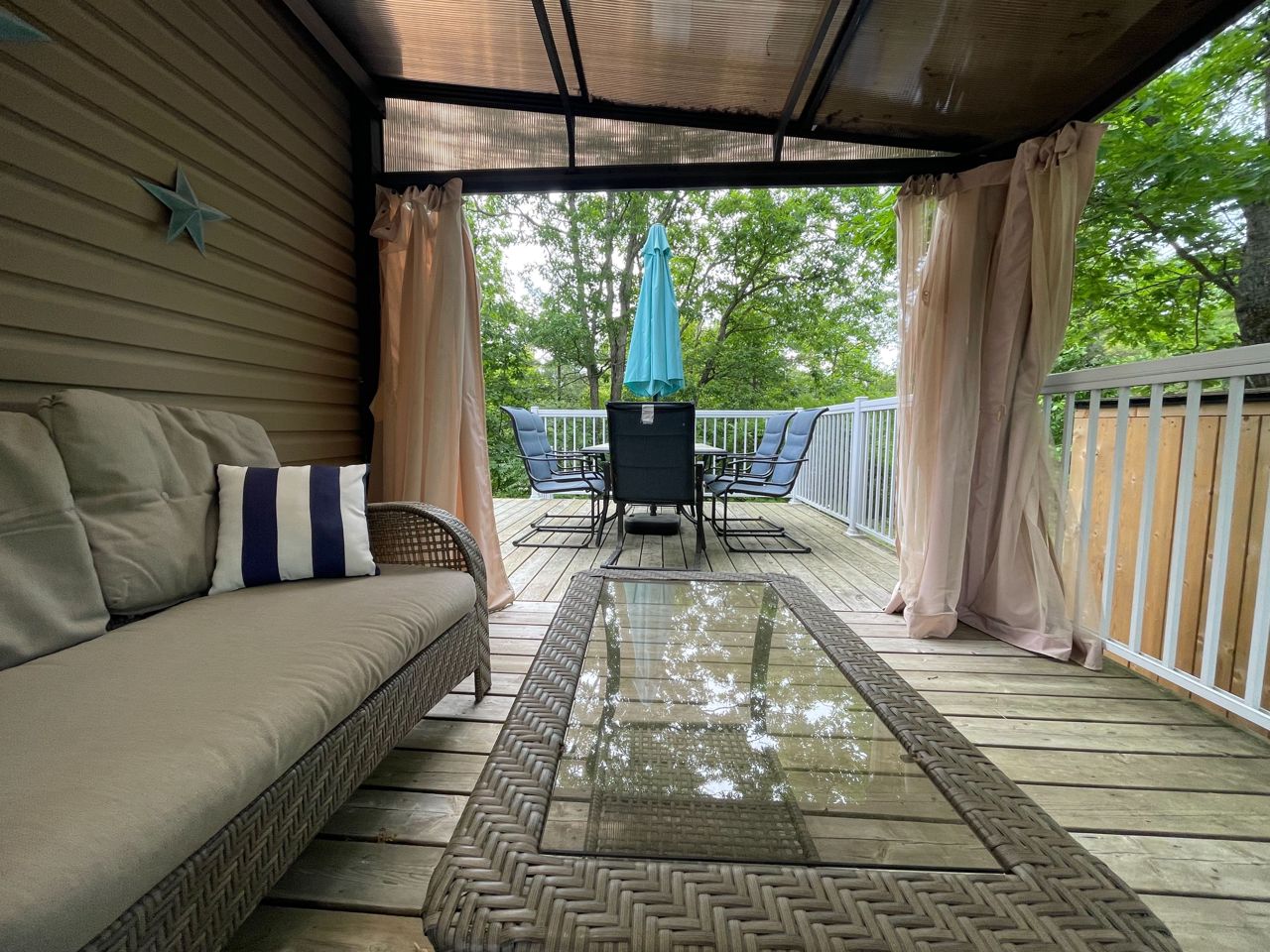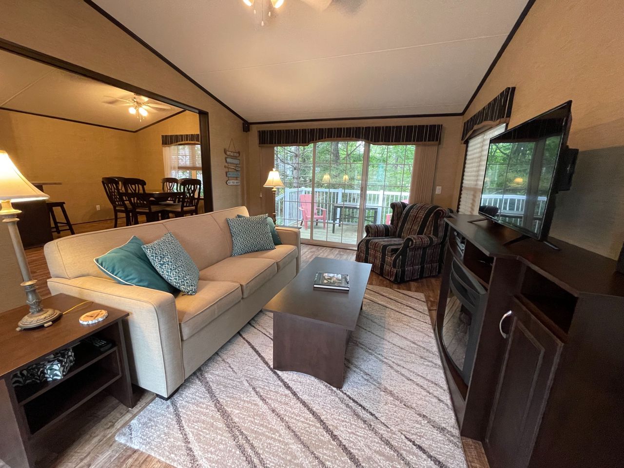 PRIVATE RENTALS VIA AIRBNB & VRBO WILL BE ALLOWED FOR 2026!* Escape to this charming cottage, set on one of the largest and most private lots in Lantern Bay. Offering 736 sq. ft. of cozy living space, this retreat features 3 bedrooms, 1 full bath, and an inviting open-concept living area that seamlessly connects the kitchen and living room. Step outside to enjoy the extensive decking that wraps around the cottage, providing the perfect space to unwind and take in the peaceful surroundings. Gather around the fire pit for evenings filled with laughter, storytelling, and roasted marshmallows. Inside, the sleeping arrangements are designed for comfort, including a queen bedroom and two additional rooms with double/single bunk beds and built-in storage. Beyond the cottage, you're just a short walk from everything the resort has to offer sandy beaches, a marina, two pools, community areas, a sports court, and horseshoe pits. Whether you're in the mood for relaxation or adventure, this location has it all. The all-inclusive seasonal fee of $10,425 + HST covers resort activities and amenities, lot rental, hydro, water, sewer, and lawn maintenance leaving you free to simply enjoy your getaway. Owners are only responsible for propane and internet. Plus, HST does not apply to the sale of these units. Ready to make this your seasonal home away from home? *conditions will apply