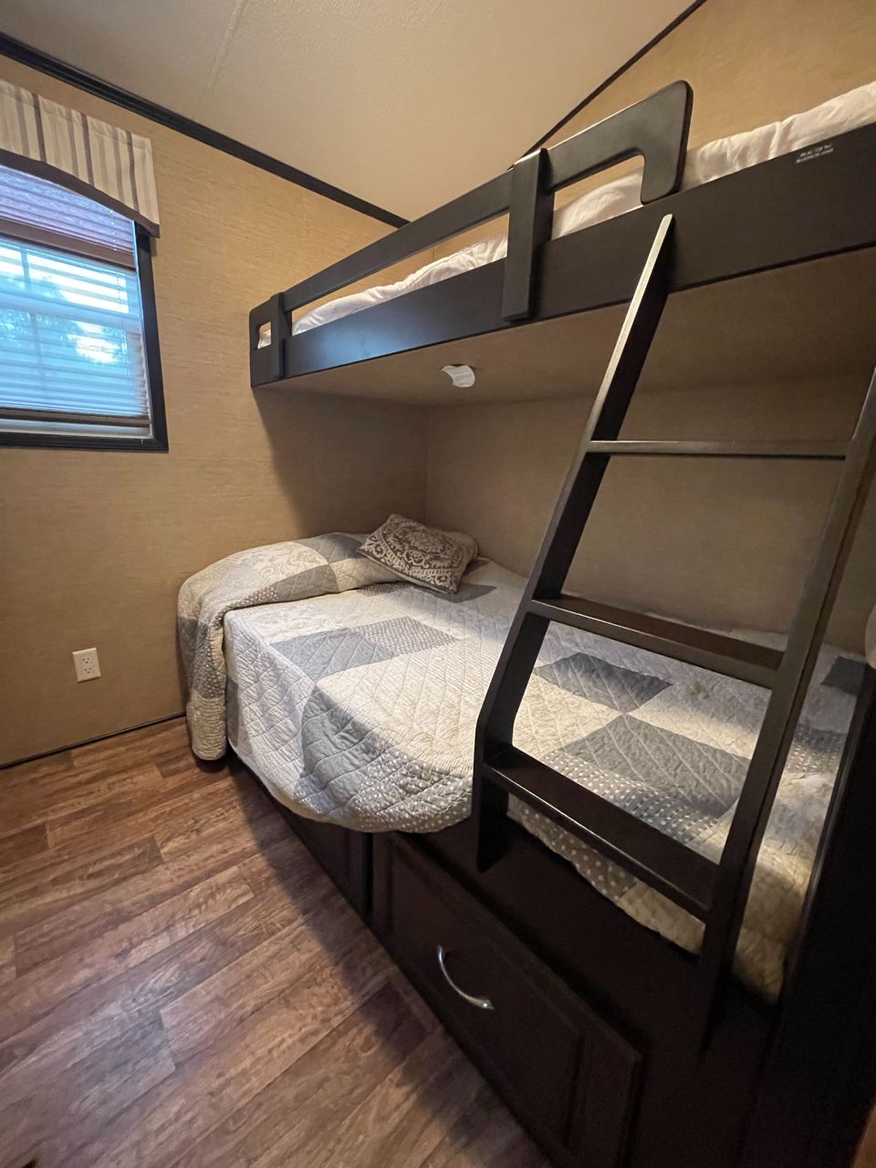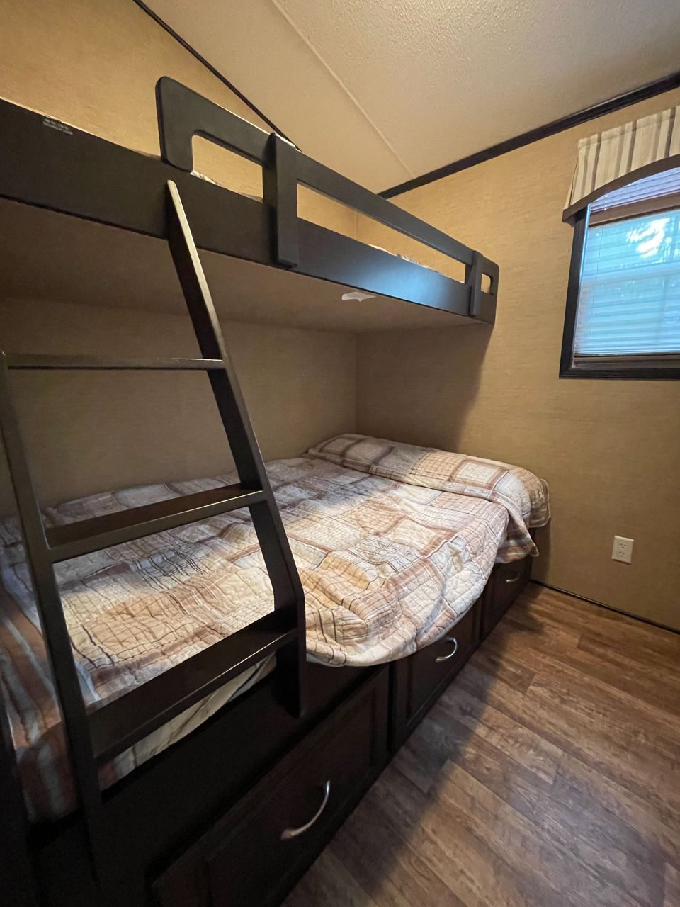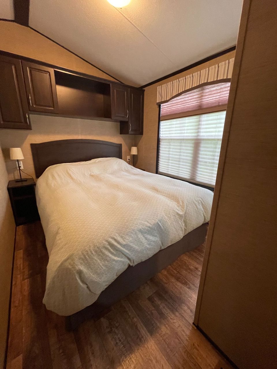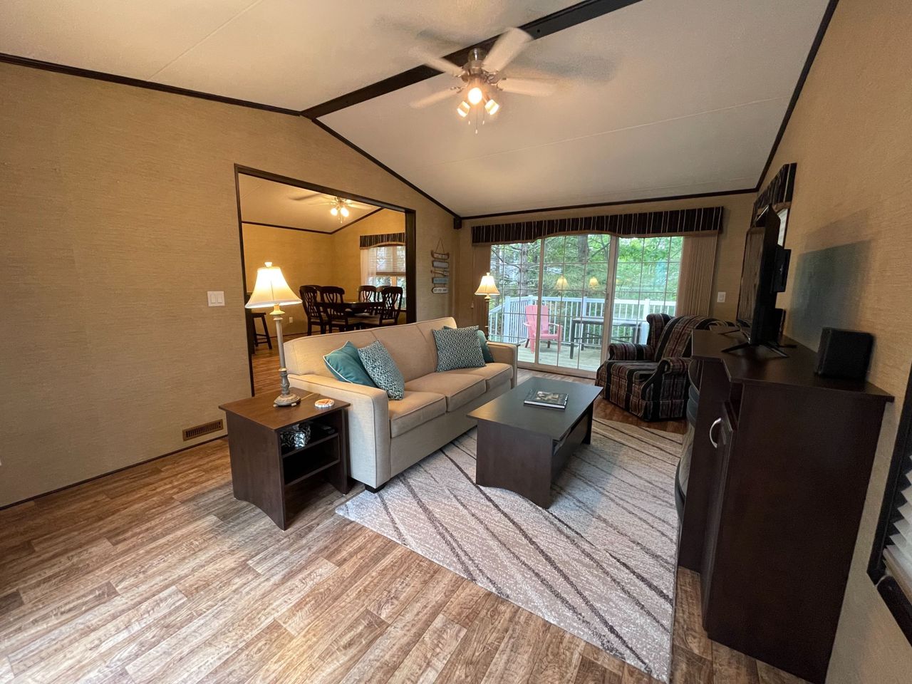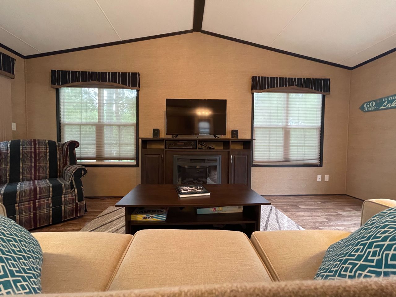 PRIVATE RENTALS VIA AIRBNB & VRBO WILL BE ALLOWED FOR 2026!* Escape to this charming cottage, set on one of the largest and most private lots in Lantern Bay. Offering 736 sq. ft. of cozy living space, this retreat features 3 bedrooms, 1 full bath, and an inviting open-concept living area that seamlessly connects the kitchen and living room. Step outside to enjoy the extensive decking that wraps around the cottage, providing the perfect space to unwind and take in the peaceful surroundings. Gather around the fire pit for evenings filled with laughter, storytelling, and roasted marshmallows. Inside, the sleeping arrangements are designed for comfort, including a queen bedroom and two additional rooms with double/single bunk beds and built-in storage. Beyond the cottage, you're just a short walk from everything the resort has to offer sandy beaches, a marina, two pools, community areas, a sports court, and horseshoe pits. Whether you're in the mood for relaxation or adventure, this location has it all. The all-inclusive seasonal fee of $10,425 + HST covers resort activities and amenities, lot rental, hydro, water, sewer, and lawn maintenance leaving you free to simply enjoy your getaway. Owners are only responsible for propane and internet. Plus, HST does not apply to the sale of these units. Ready to make this your seasonal home away from home? *conditions will apply