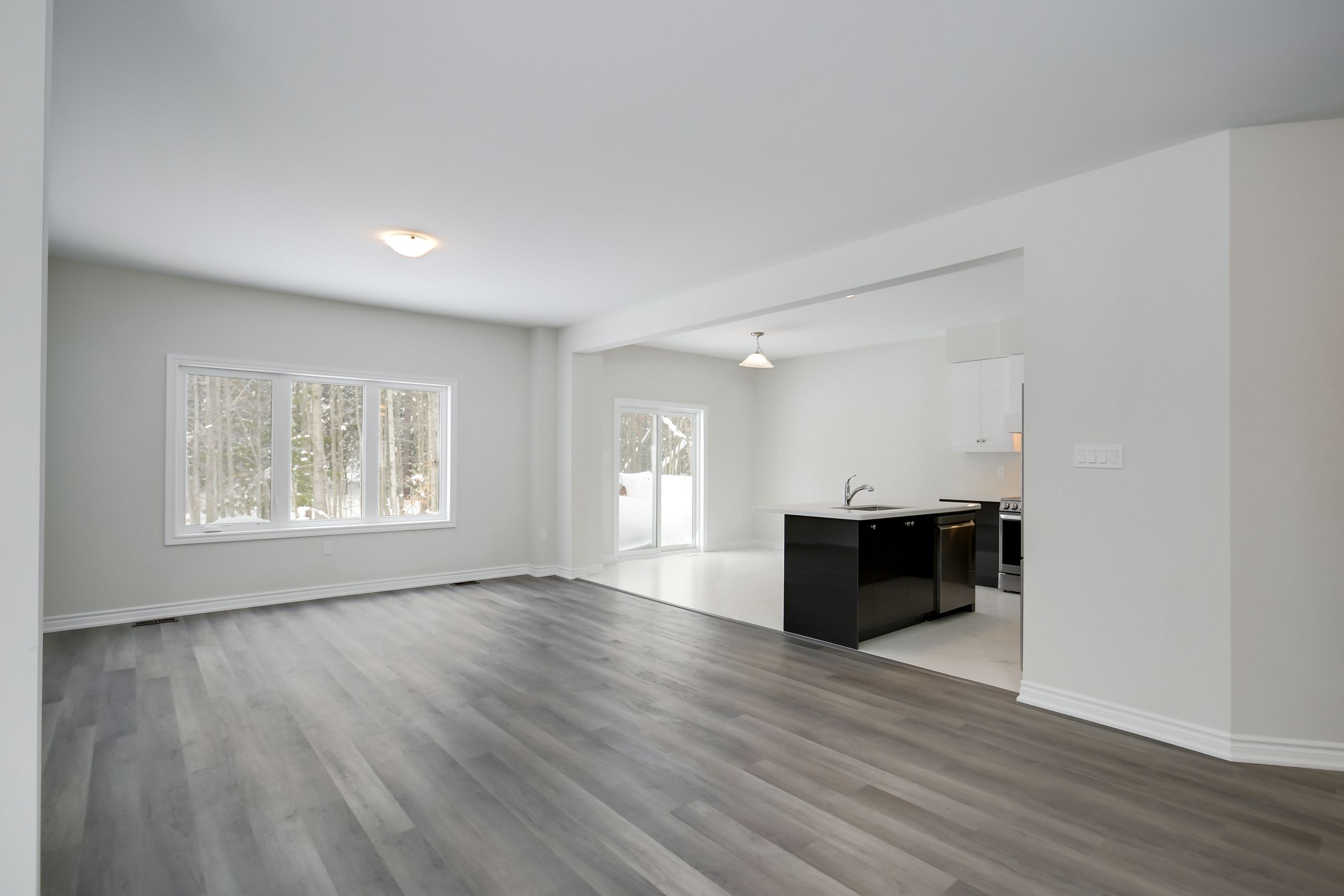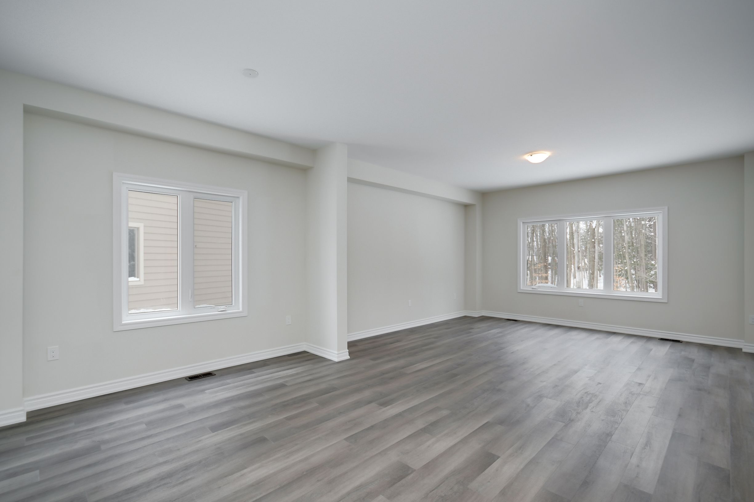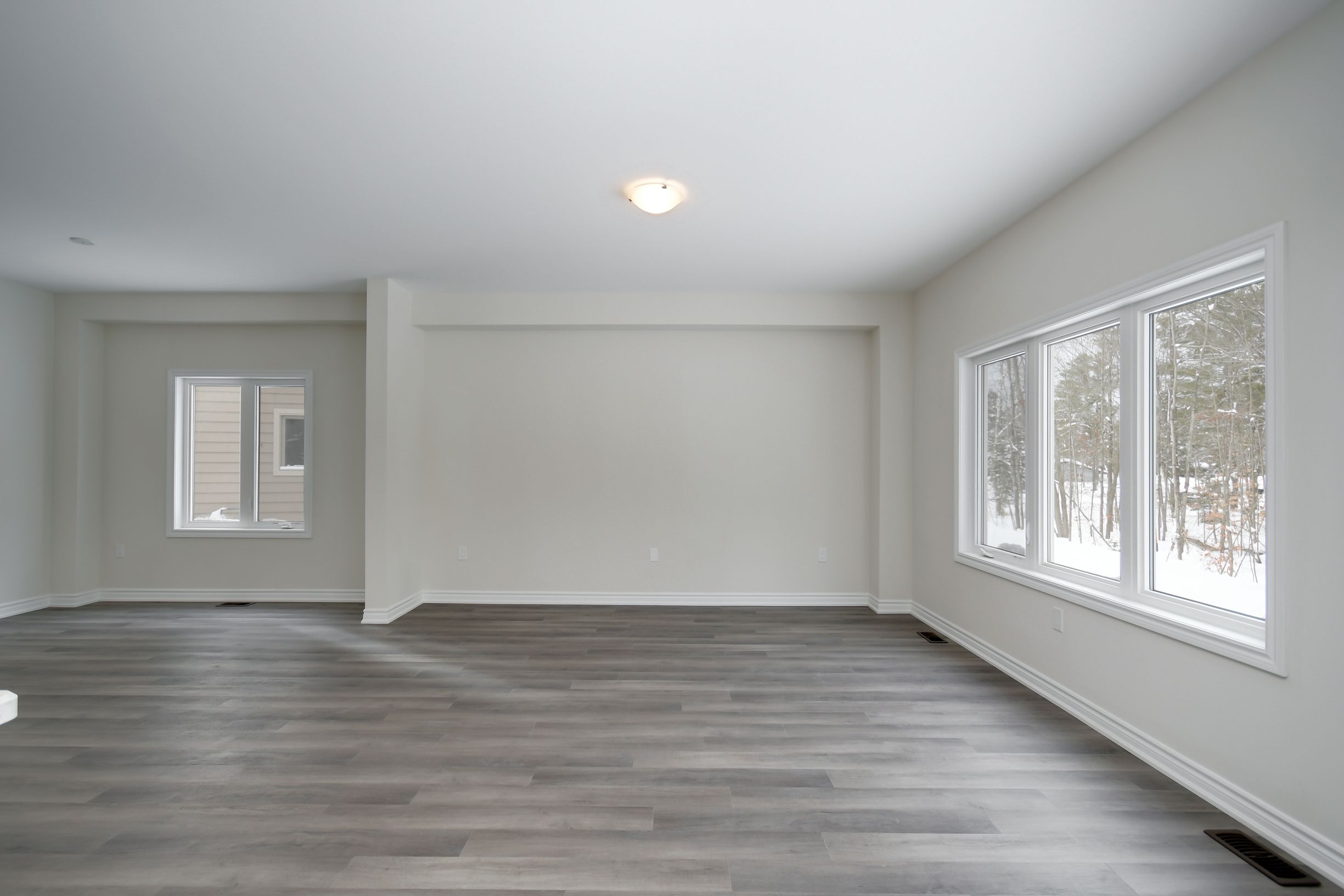 Welcome to the Cedars at Brydon bay, a new subdivision in lovely Gravenhurst the Gateway to Muskoka! This newly constructed Muskoka 6 model has 4 spacious bedrooms, 2.5 bathrooms and offers over 2,327 sq. ft. of finished living space, with an additional full height unfinished basement ready for your customization. The main floor features a spacious open-concept design with soaring 9 foot ceilings throughout, creating a bright and spacious atmosphere. The large kitchen is clean and crisp, complete with a central island, stainless steel appliances, and quartz countertops. The adjoining eat-in kitchen area opens onto a deck, perfect for access to outdoor entertaining space. A convenient powder room completes the main level. Upstairs boasts four generously sized bedrooms, including the luxurious primary suite. The primary suite includes two closets as well as a spa-like 5 pc ensuite bathroom with a separate glass-enclosed shower, soaker tub, and double vanity. The upper level also includes a laundry room for added convenience and a large 4-piece bathroom. This home offers a tranquil retreat for your family with an oversized backyard facing the forest, easy to host social gatherings . This home is ideally located close to Taboo Resort and Golf Course, Muskoka Beach, as well as a variety of restaurants and town amenities. Don't miss the chance to own this move-in-ready new build in the heart of Muskoka - perfect for families, nature lovers, and anyone seeking a blend of luxury and convenience!