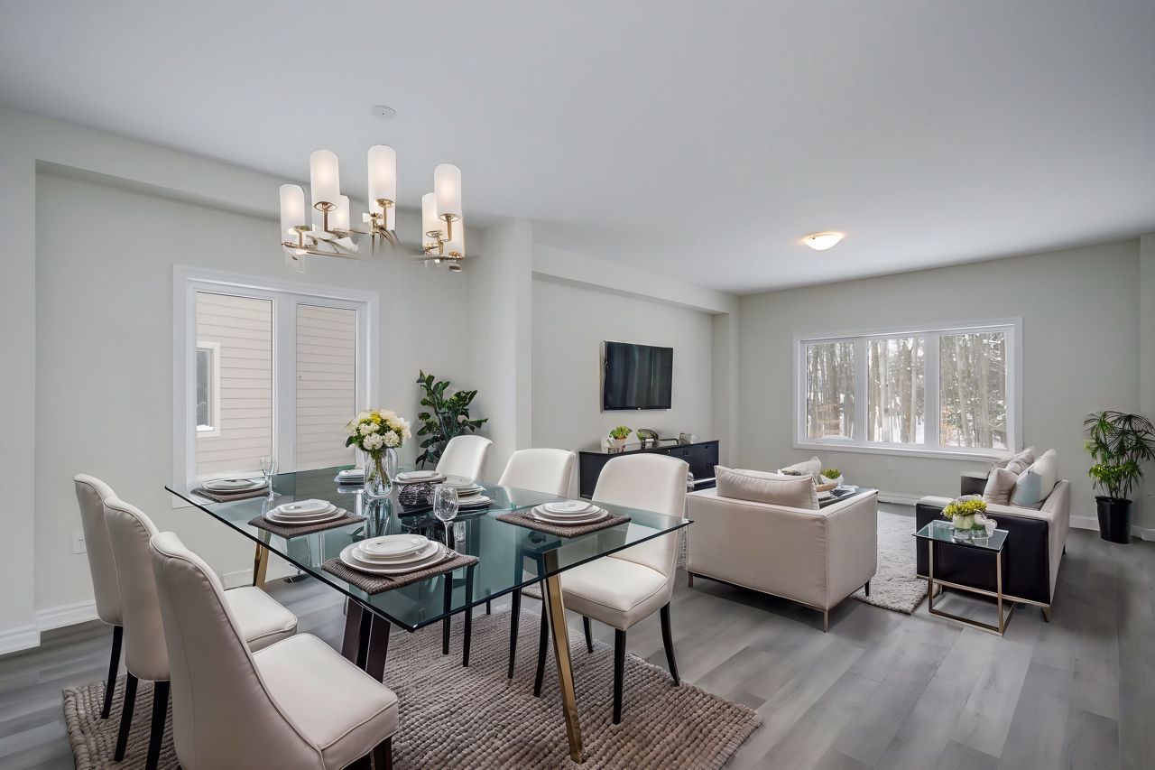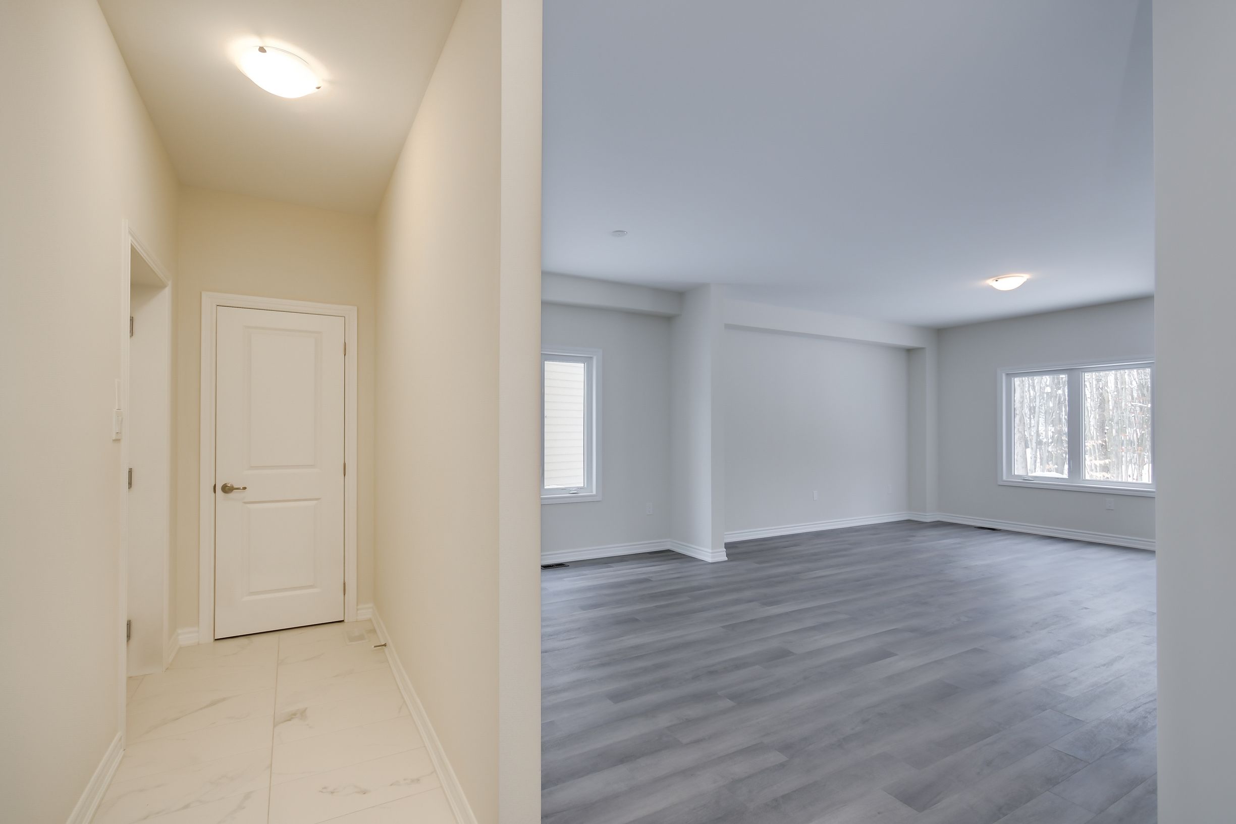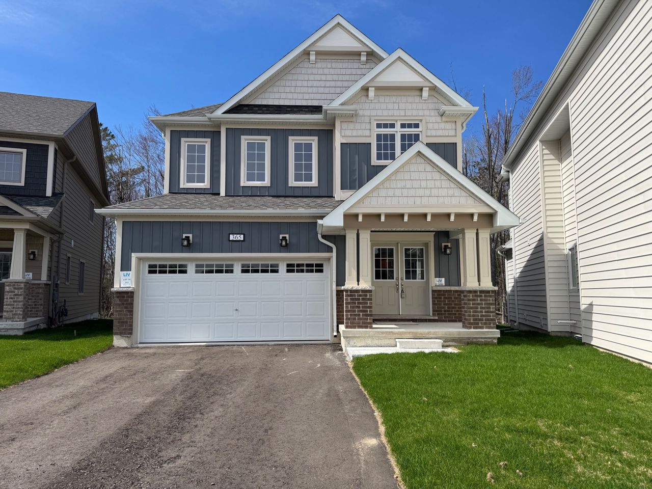 Welcome to the Cedars at Brydon bay, a new subdivision in lovely Gravenhurst the Gateway to Muskoka! This newly constructed Muskoka 6 model has 4 spacious bedrooms, 2.5 bathrooms and offers over 2,327 sq. ft. of finished living space, with an additional full height unfinished basement ready for your customization. The main floor features a spacious open-concept design with soaring 9 foot ceilings throughout, creating a bright and spacious atmosphere. The large kitchen is clean and crisp, complete with a central island, stainless steel appliances, and quartz countertops. The adjoining eat-in kitchen area opens onto a deck, perfect for access to outdoor entertaining space. A convenient powder room completes the main level. Upstairs boasts four generously sized bedrooms, including the luxurious primary suite. The primary suite includes two closets as well as a spa-like 5 pc ensuite bathroom with a separate glass-enclosed shower, soaker tub, and double vanity. The upper level also includes a laundry room for added convenience and a large 4-piece bathroom. This home offers a tranquil retreat for your family with an oversized backyard facing the forest, easy to host social gatherings . This home is ideally located close to Taboo Resort and Golf Course, Muskoka Beach, as well as a variety of restaurants and town amenities. Don't miss the chance to own this move-in-ready new build in the heart of Muskoka - perfect for families, nature lovers, and anyone seeking a blend of luxury and convenience!