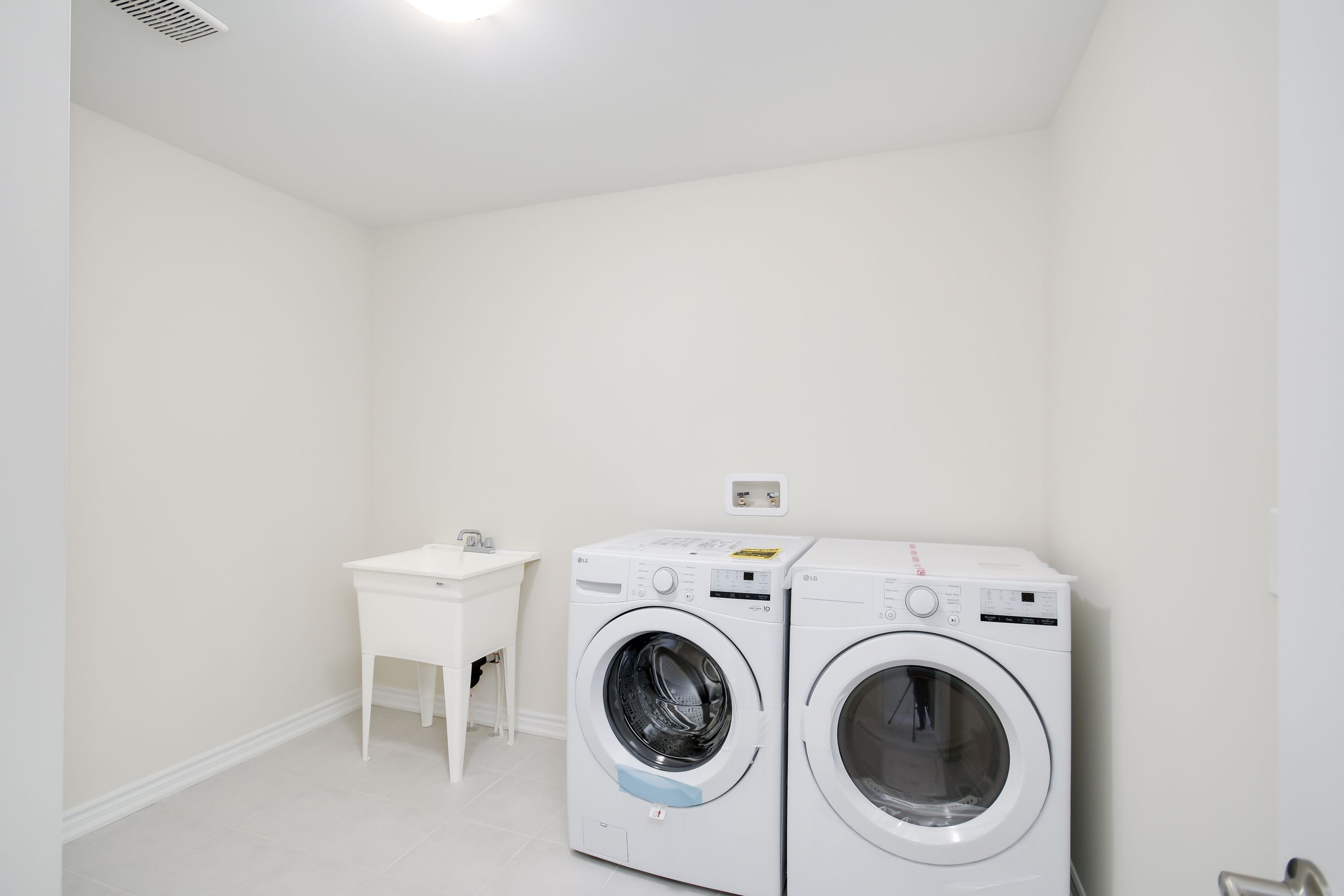 楼上设有四间宽敞的卧室,包括豪华的主卧套房。主卧套房内设两个衣柜以及一个如SPA般的五件套套间浴室,配有独立玻璃淋浴间、浸泡浴缸和双洗手台。上层还包括一间洗衣房,增添了便利性,以及一间大型四件套浴室。