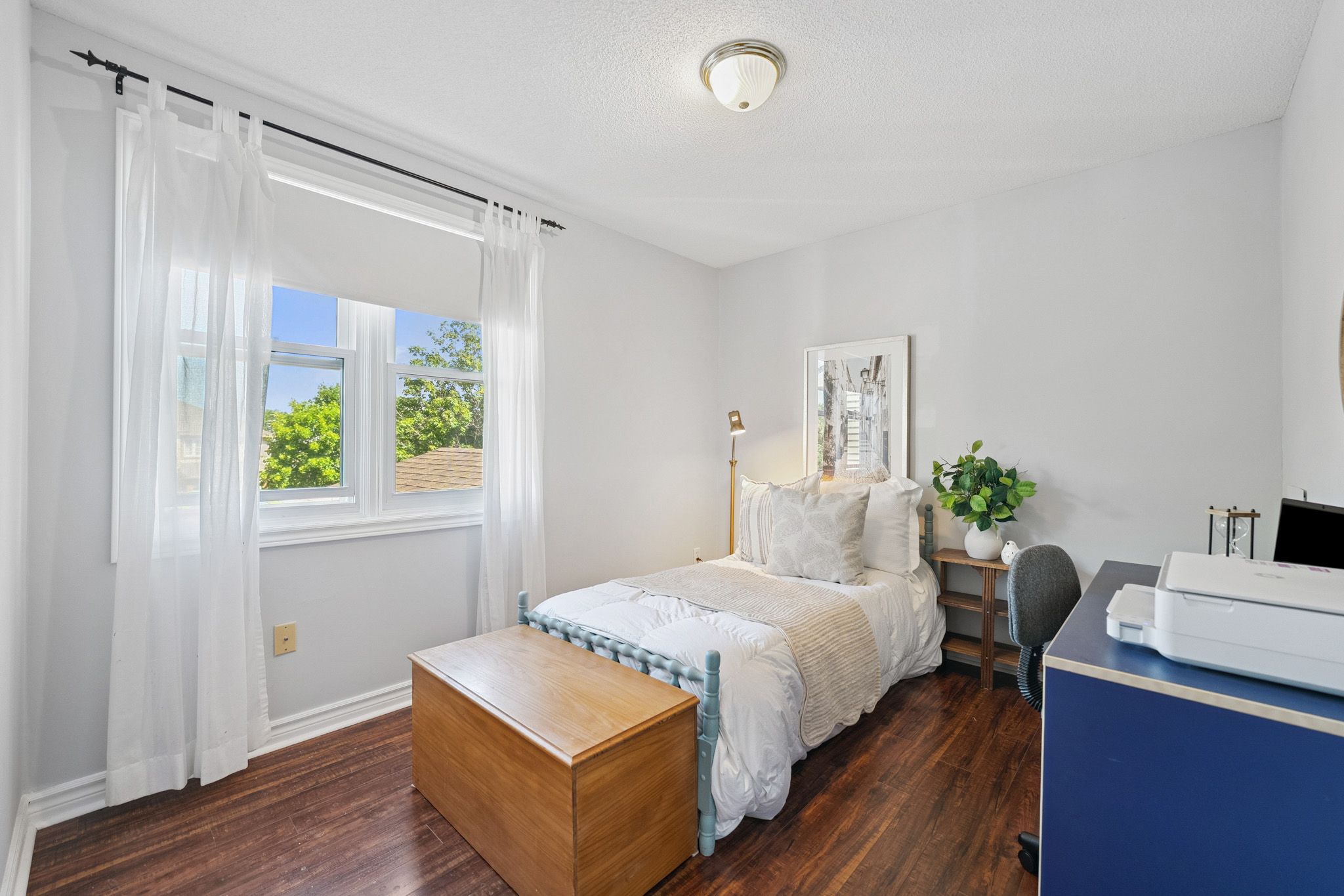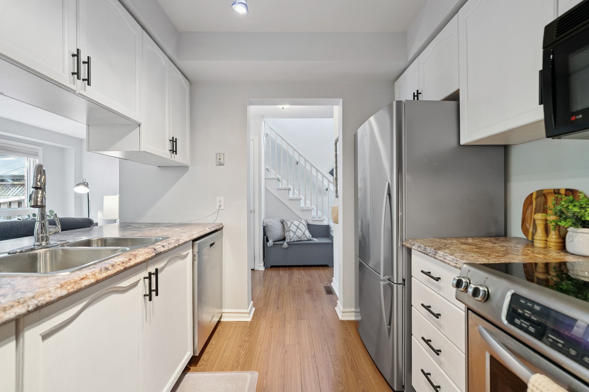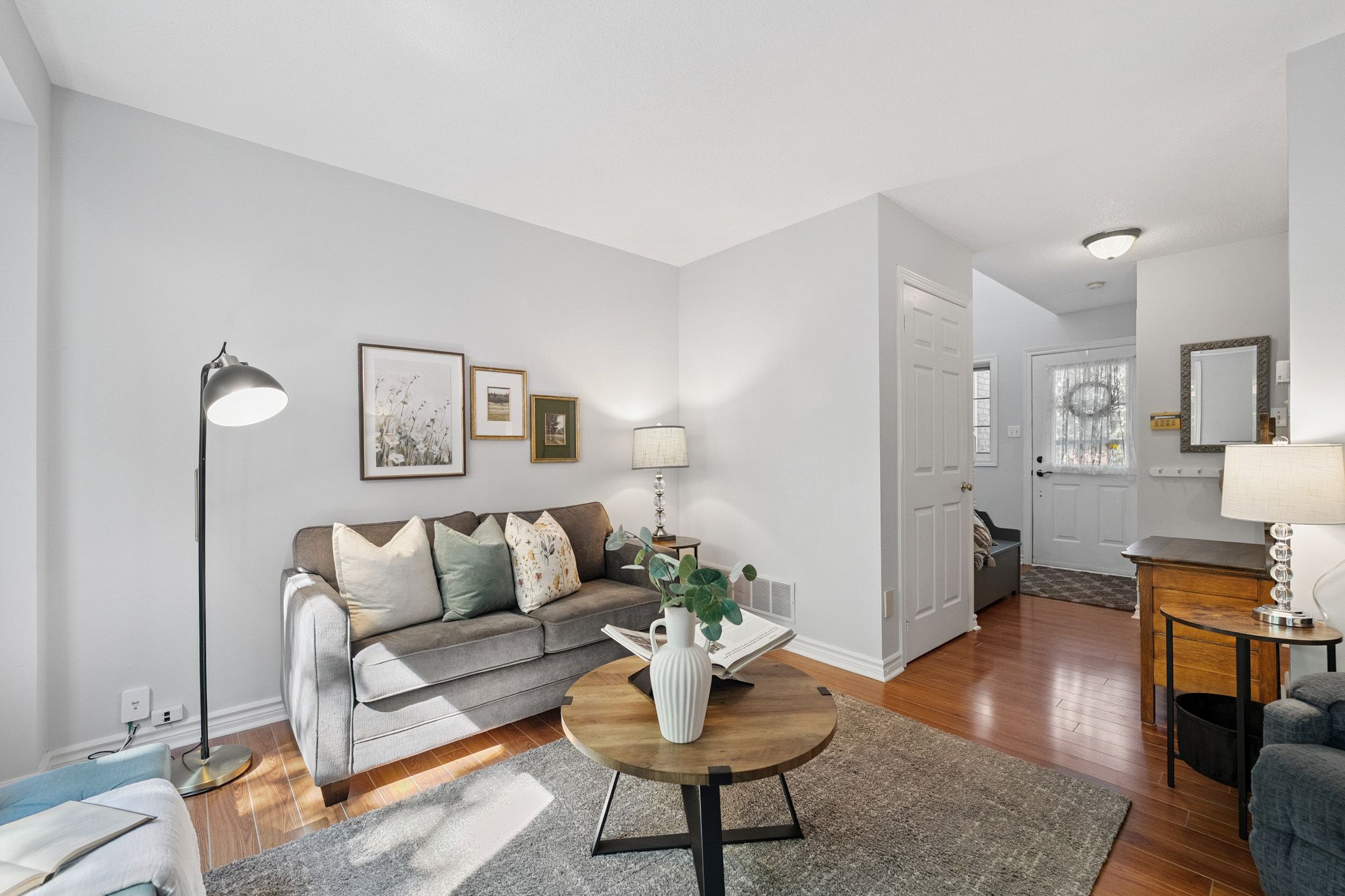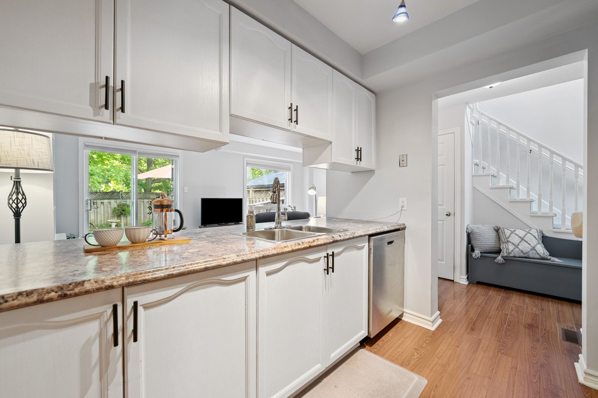 Welcome to this bright and inviting 2-storey, 2-bedroom, 1-bathroom freehold townhome, ideally located on a quiet cul-de-sac in beautiful Grimsby. This home offers a fantastic blend of comfort, convenience, and privacyperfect for first-time buyers, downsizers, investors and professionals. The open-concept main floor features a spacious living and dining area that has a view into the kitchen with breakfast nook seating, creating an ideal space for entertaining and everyday living. Upstairs, youll find two well-sized bedrooms and a full bathroom with ensuite privilege, offering a functional and cozy layout. Enjoy your own private backyard oasis with no direct rear neighbours, mature trees, and plenty of room to relax or entertain outdoors. The unfinished basement is a blank canvas with a rough-in bathroom, ready for your personal touch-whether you're envisioning a rec room, home gym, or extra storage. Additional highlights include a 1-car garage and parking for two more vehicles in the driveway. Located within minutes from parks, schools, a short walk to Lincoln Memorial Hospital, downtown Grimsby shops and Grimsbys farmers market, and with quick highway access, this home offers small-town charm with modern-day convenience. Move-in ready and full of potentialthis is a must-see!