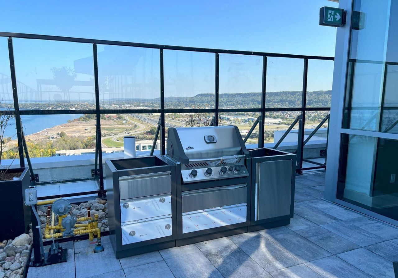Enjoy the stunning views of Lake Ontario and the Niagara Escarpment from this premium corner unit with two spacious bedrooms, two bathrooms, and two balconies. This unit features bright windows, a modern kitchen with stainless steel appliances, quartz countertops, and a kitchen island, and an open concept living room with a walk-out balcony. The primary bedroom has a three-piece ensuite with a glass shower. The unit also has laminate floors, in-suite laundry with a stacked washer and dryer, one underground parking spot, and one locker The amenities include Concierge, Full Gym with Yoga & Spin , Wi-Fi Enabled Lounge Area, Bicycle Parking Area, Visitor Parking, Multi-Purpose Room with Bar, Dining, Lounge, Fireplace & Kitchen, Barbeques, Pet Spa, Surveillance Cameras, Terrace; There are many parks, conservation areas, win and hiking trails to explore nearby. Easy commute, Just minutes from the QEW, connecting you to Toronto or Niagara Falls and will also be close to the future GO Station.Brand New never lived in Condo; Bright colors; Tons of Natural Light; Window Coverings will be installed.