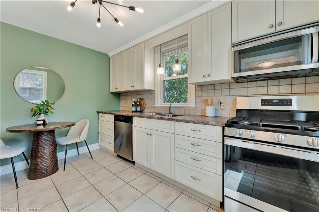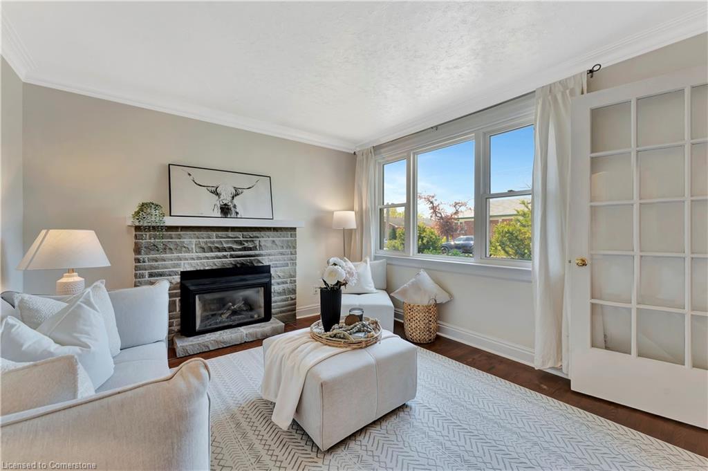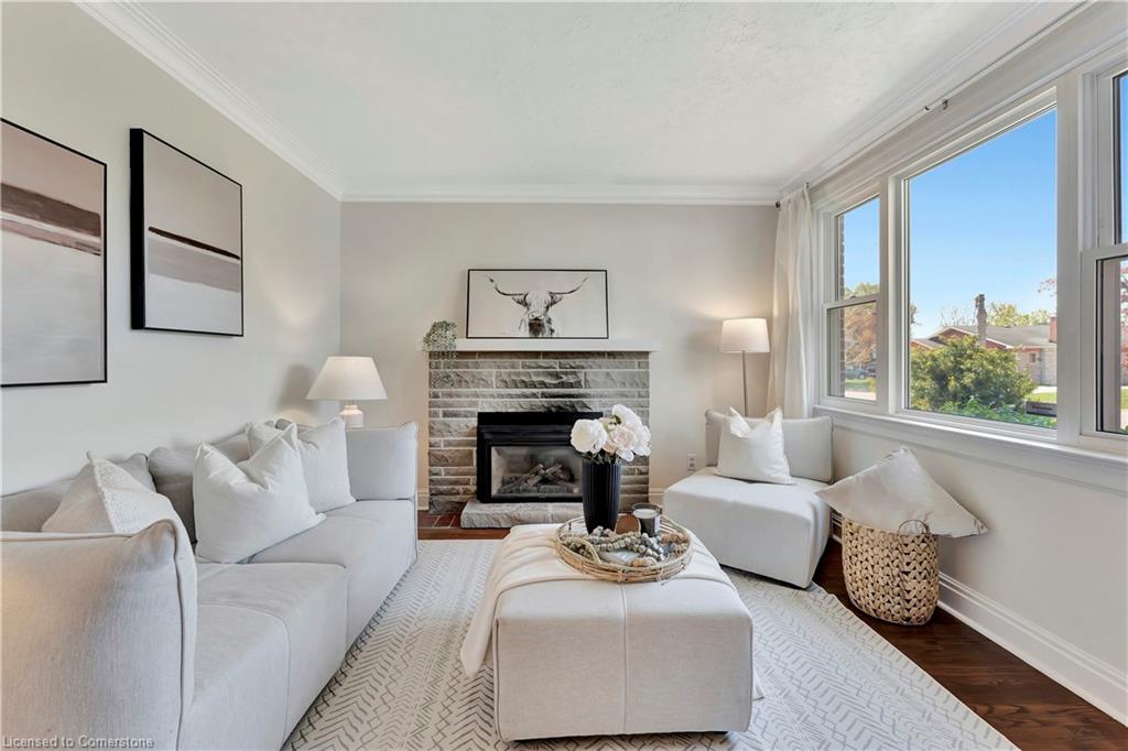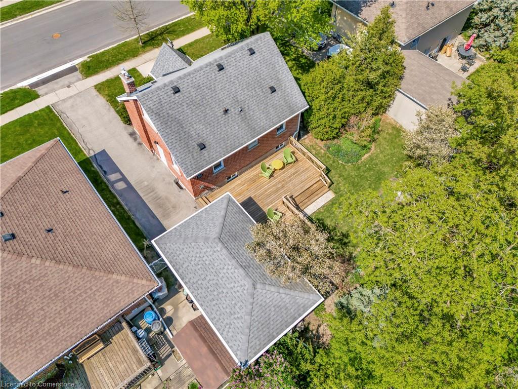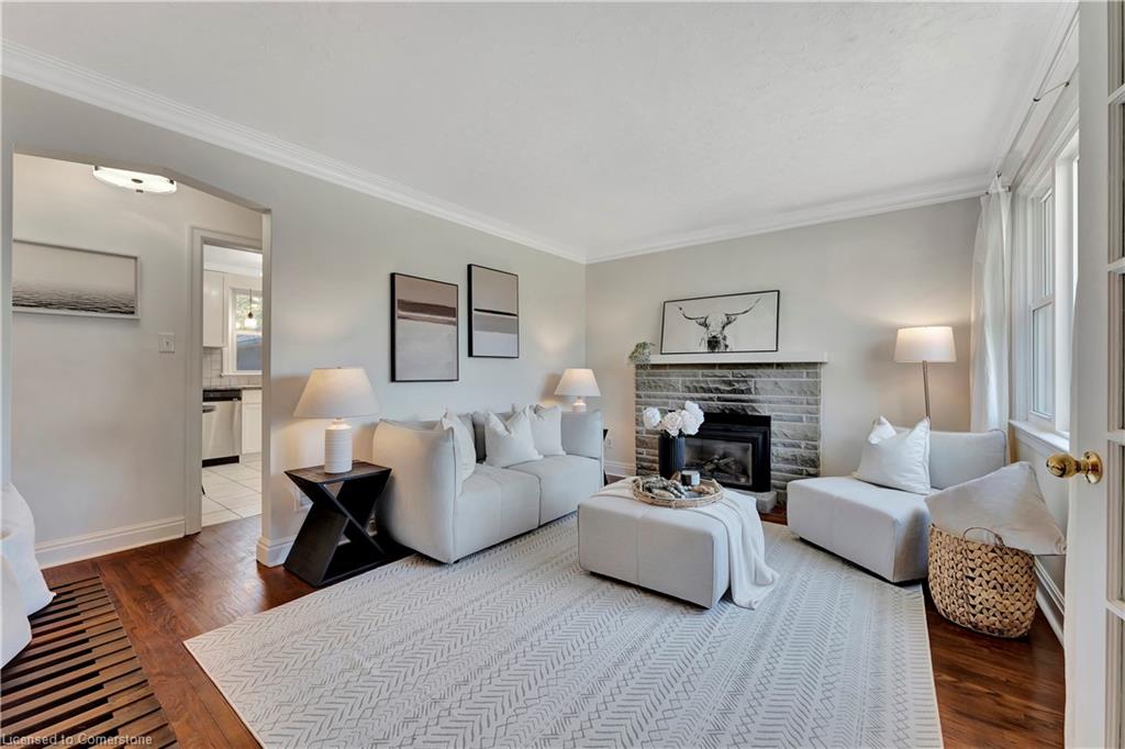 Located in a peaceful, family-oriented Guelph neighbourhood, this delightful detached home at 25 Rosewood Ave offers approximately 1,200 square feet of updated living space on the main and upper levels, plus a finished basement. The interior has been recently painted throughout and features stylish updates. The living room is bright and inviting with a comfortable Napoleon gas fireplace. The kitchen boasts white cabinets, plenty of counter space and stainless steel appliances, including a new refrigerator and gas range. The kitchen also overlooks the dreamy backyard! The main level also includes a full bathroom with stunning glass block shower details, a primary bedroom and a versatile second room, suitable as a home office, dining room or as an additional main floor bedroom. A convenient side door from the kitchen provides outdoor access. The serene backyard features a massive deck, mature trees and a beautiful garden, perfect for outdoor enjoyment. The property also includes a detached single-car garage and a driveway with parking for plenty of vehicles. Upstairs, discover two bedrooms with ample natural light and built-in extra storage. The finished basement expands the living space with new carpeting, a large recreation room with a wet bar area, a second full bathroom for added convenience and a laundry room with generous storage and new washer and dryer. This property enjoys a prime location with exceptional convenience. Everyday necessities such as groceries, shopping and restaurants are just minutes away. Families will appreciate the close proximity to Paisley Road Public School, Sleeman Park and the Norm Jary Splash Pad. Make sure to book your private showing today and find out if this might be the home that you have been waiting for!