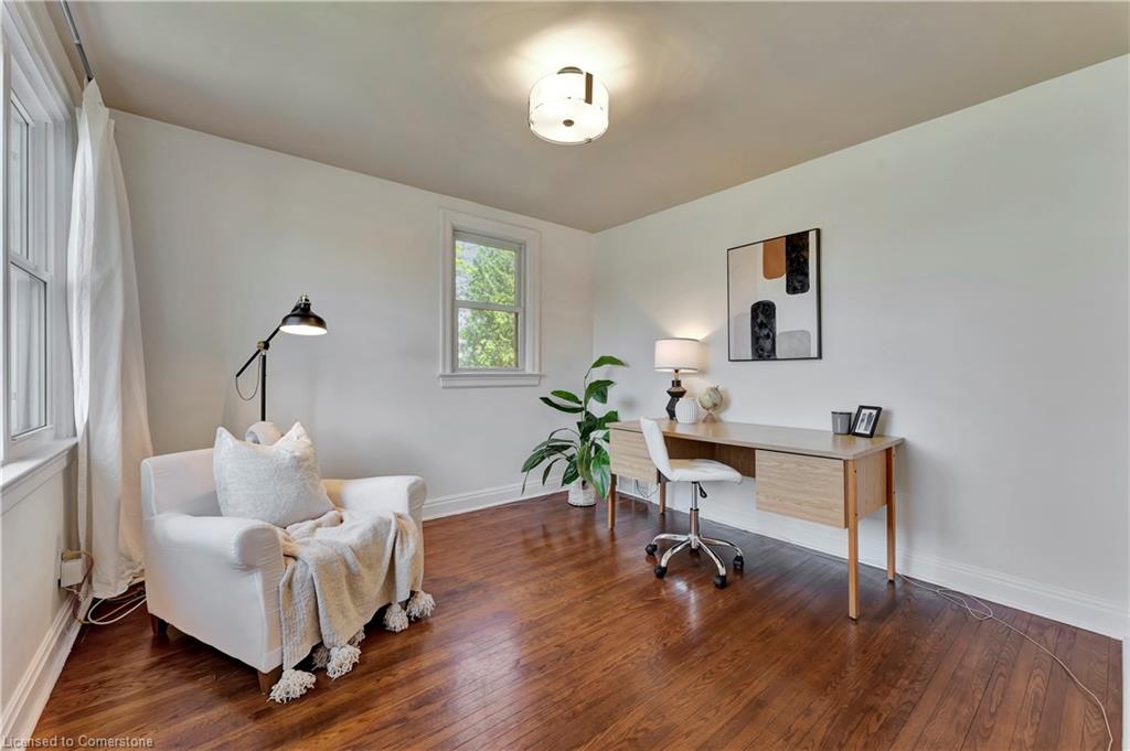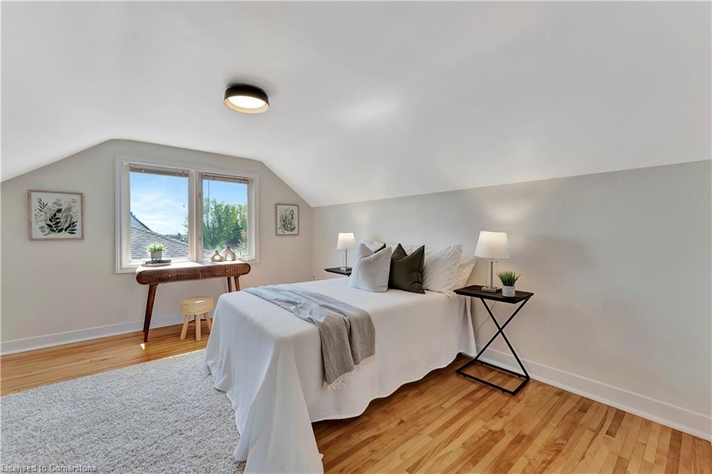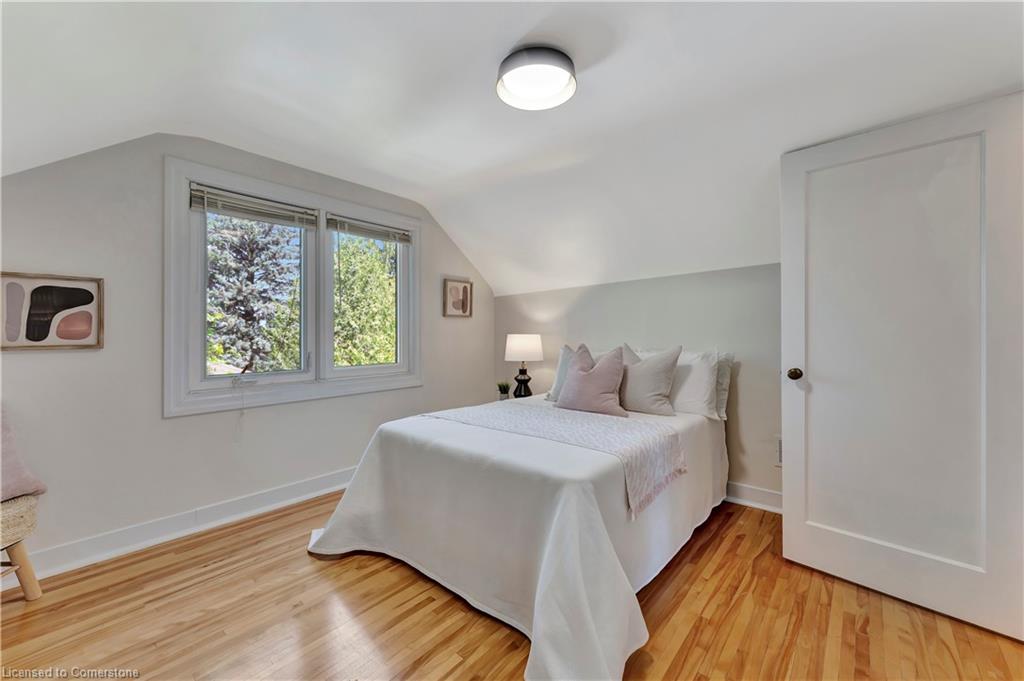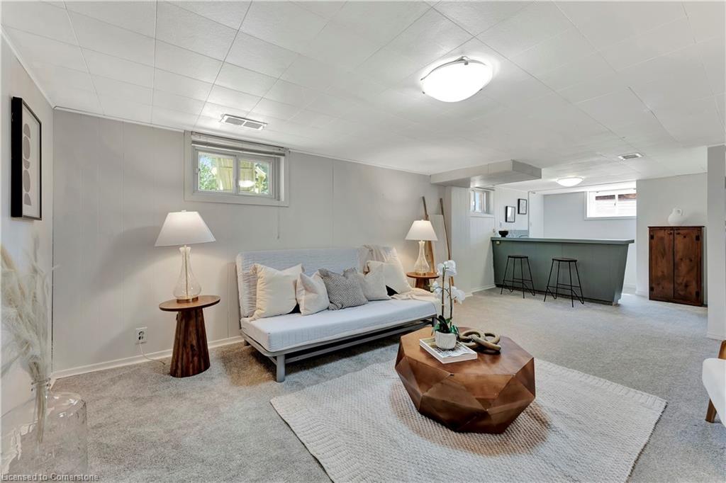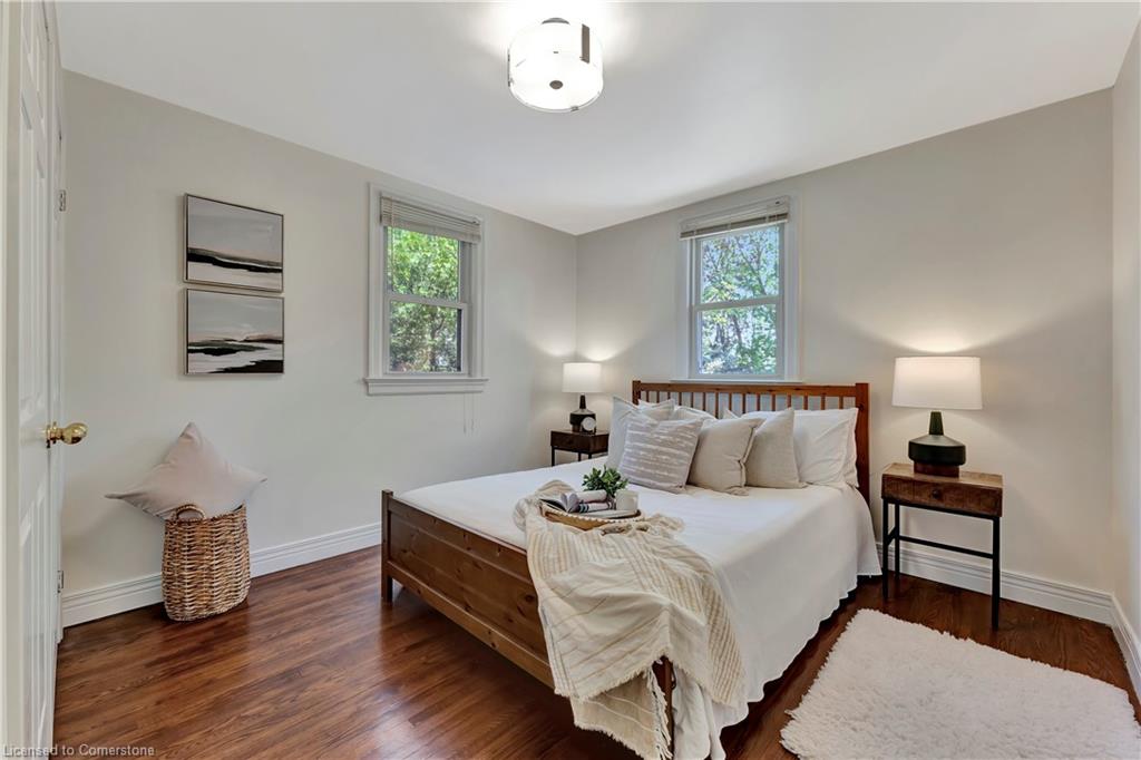Located in a peaceful, family-oriented Guelph neighbourhood, this delightful detached home at 25 Rosewood Ave offers approximately 1,200 square feet of updated living space on the main and upper levels, plus a finished basement. The interior has been recently painted throughout and features stylish updates. The living room is bright and inviting with a comfortable Napoleon gas fireplace. The kitchen boasts white cabinets, plenty of counter space and stainless steel appliances, including a new refrigerator and gas range. The kitchen also overlooks the dreamy backyard! The main level also includes a full bathroom with stunning glass block shower details, a primary bedroom and a versatile second room, suitable as a home office, dining room or as an additional main floor bedroom. A convenient side door from the kitchen provides outdoor access. The serene backyard features a massive deck, mature trees and a beautiful garden, perfect for outdoor enjoyment. The property also includes a detached single-car garage and a driveway with parking for plenty of vehicles. Upstairs, discover two bedrooms with ample natural light and built-in extra storage. The finished basement expands the living space with new carpeting, a large recreation room with a wet bar area, a second full bathroom for added convenience and a laundry room with generous storage and new washer and dryer. This property enjoys a prime location with exceptional convenience. Everyday necessities such as groceries, shopping and restaurants are just minutes away. Families will appreciate the close proximity to Paisley Road Public School, Sleeman Park and the Norm Jary Splash Pad. Make sure to book your private showing today and find out if this might be the home that you have been waiting for!