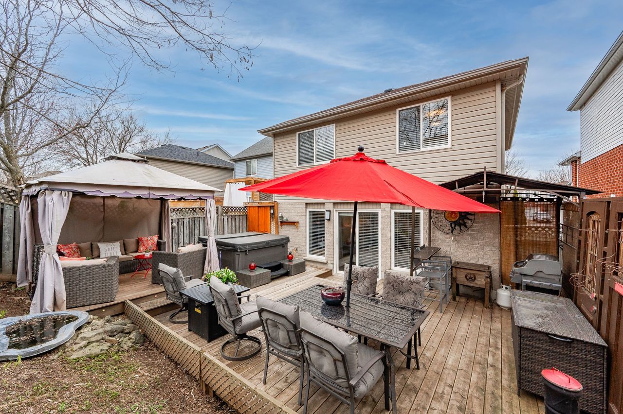 This beautiful backsplit, located in Guelph's diverse and vibrant east end, offers so much for a first-time homebuyer, downsizer or growing family. This 3 bedroom, family home features 2 full 4pc bathrooms, finished basement and sprawled-out main floor layout. The kitchen overlooks the dining and living rooms with soaring vaulted ceilings, and the expansive family room will accommodate the largest of gatherings! The low maintenance and private yard is a dreamy landscaped oasis, complete with inviting hot tub and outdoor living. Another perk? The extra long driveway! Enjoy access to several parks, sports fields, trails and green spaces nearby, providing you with opportunities to enjoy the outdoors. Fantastic elementary schools are within easy walking distance too. Conveniently located near major transportation routes, including Highway 7 and the Hanlon Expressway, making it easy to travel to other parts of Guelph or the GTA. View it today!
