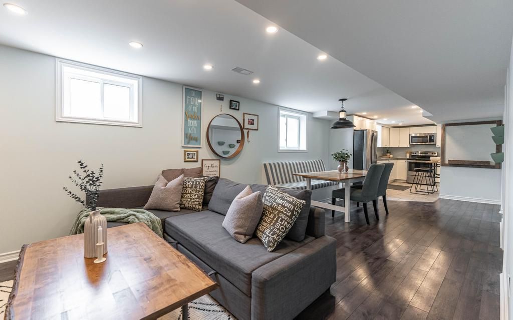 Welcome to 14 Yorkdale Crescent! This beautifully finished raised bungalow offers modern living with exceptional versatility. The main level features three spacious bedrooms, flooded with natural light, and exquisite finishes throughout. A separate side entrance leads to the lower-level in-law suite, complete with two bedrooms, a full kitchen, dining area, cozy living room, and a stylish 4-piece bathroom- perfect for extended family or rental income. Step outside to a meticulously landscaped yard and a sleek concrete patio, ideal for outdoor entertaining. The large detached garage has been transformed into a fully equipped home gym, complete with power and plumbing- easily convertible to an ADU for additional living space or rental potential. This unique property combines comfort, style, and income potential- don't miss your chance to make it yours!
