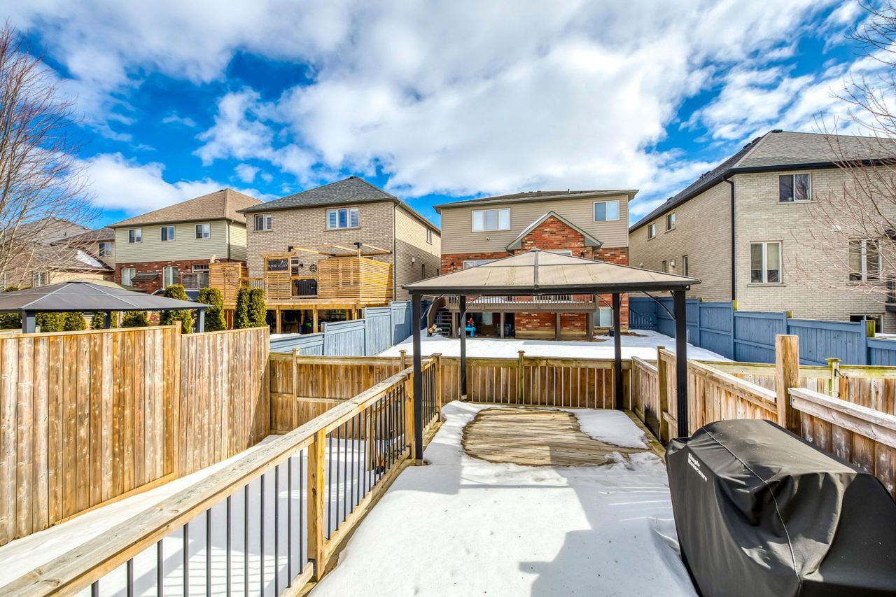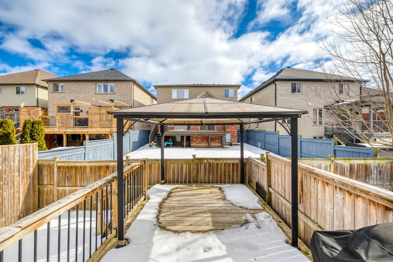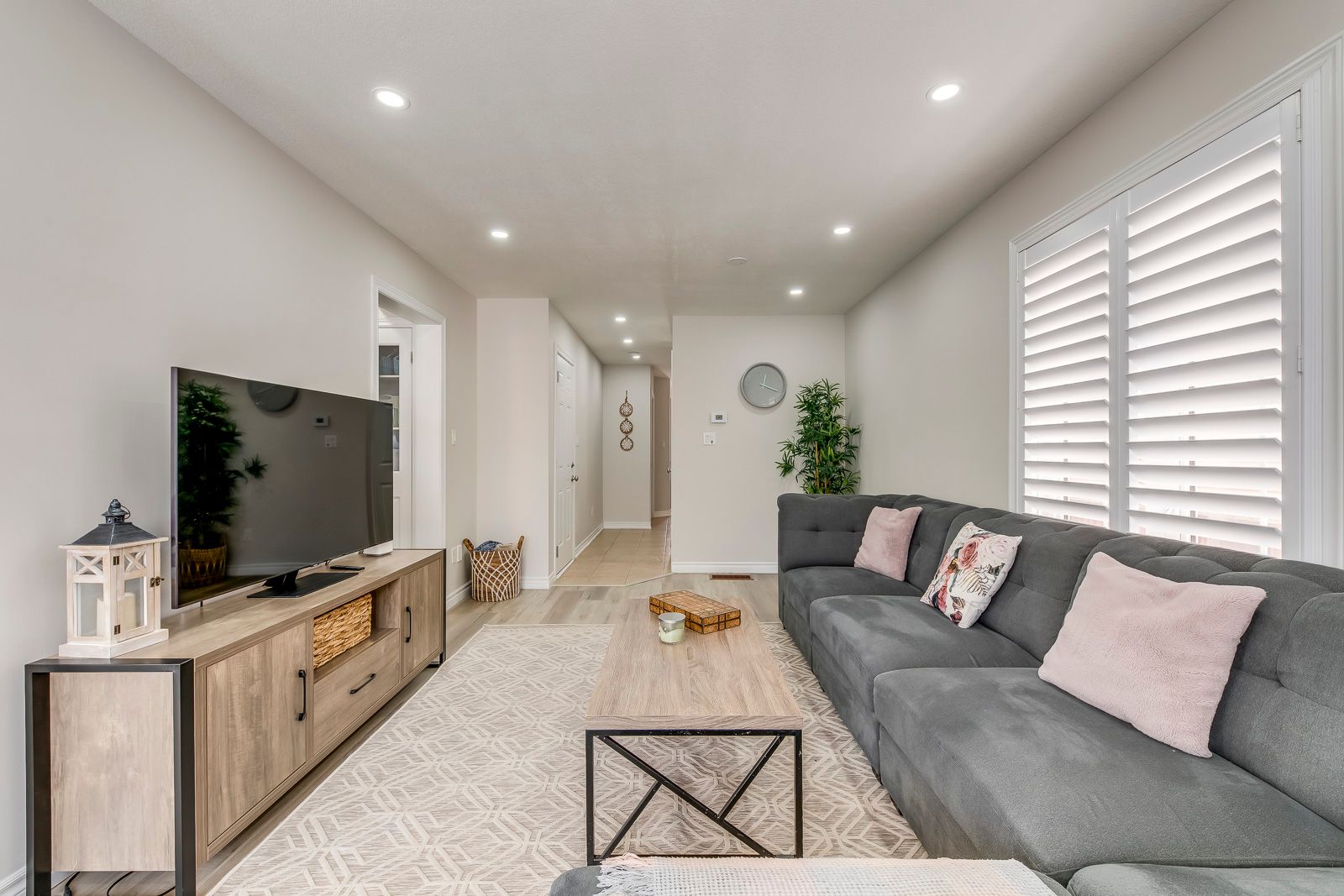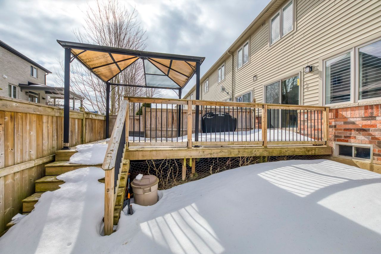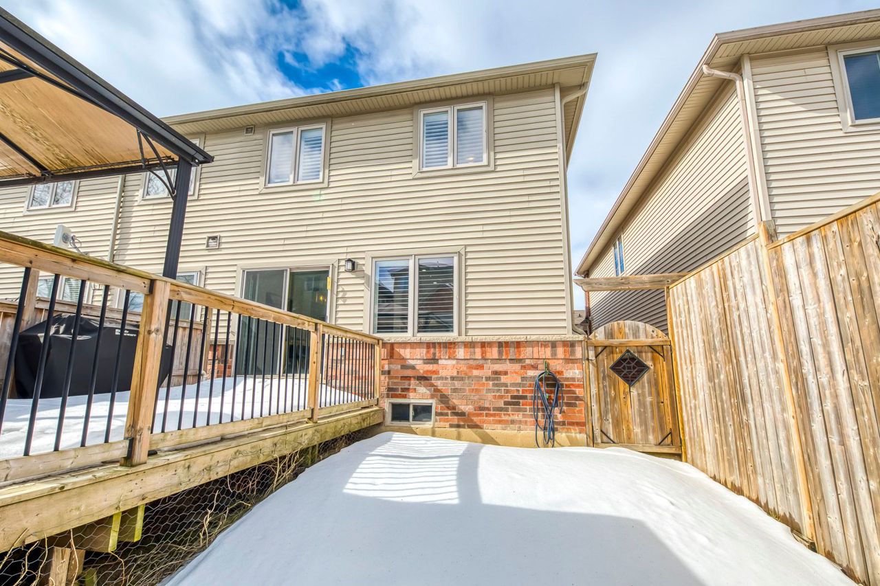 Discover this bright and airy end-unit townhome, offering a perfect blend of style and functionality in the heart of Binbrook. With three spacious bedrooms and 2.5 bathrooms, this home is designed for comfortable living in a family-friendly neighbourhood, just steps from parks, schools, and local conveniences. The open-concept main level is enhanced by modern finishes, including quality laminate flooring, pot lights, and sliding doors that lead to a fully fenced backyard with a large wooden deck perfect for summer gatherings and outdoor relaxation. Upstairs, the primary suite stands out with its elegant double-door entry, walk-in closet, and private 4-piece ensuite. A second full bathroom and the convenience of upper-level laundry complete the space.Roof shingles, furnace and A/C were all replaced in 2019 This move-in-ready home is ideal for first-time buyers, investors, or families looking for a welcoming community with easy access to nature trails and everyday essentials. Don't miss the opportunity to make it yours!