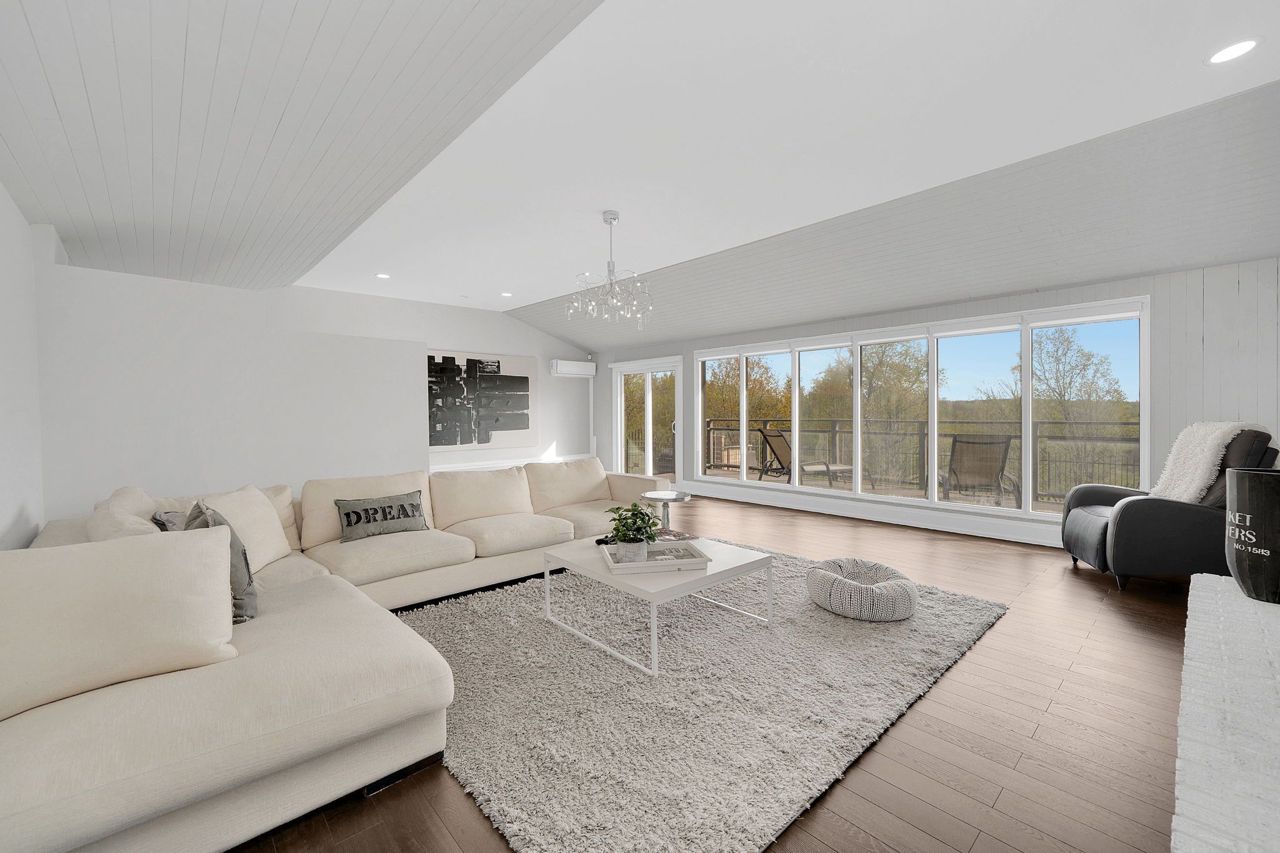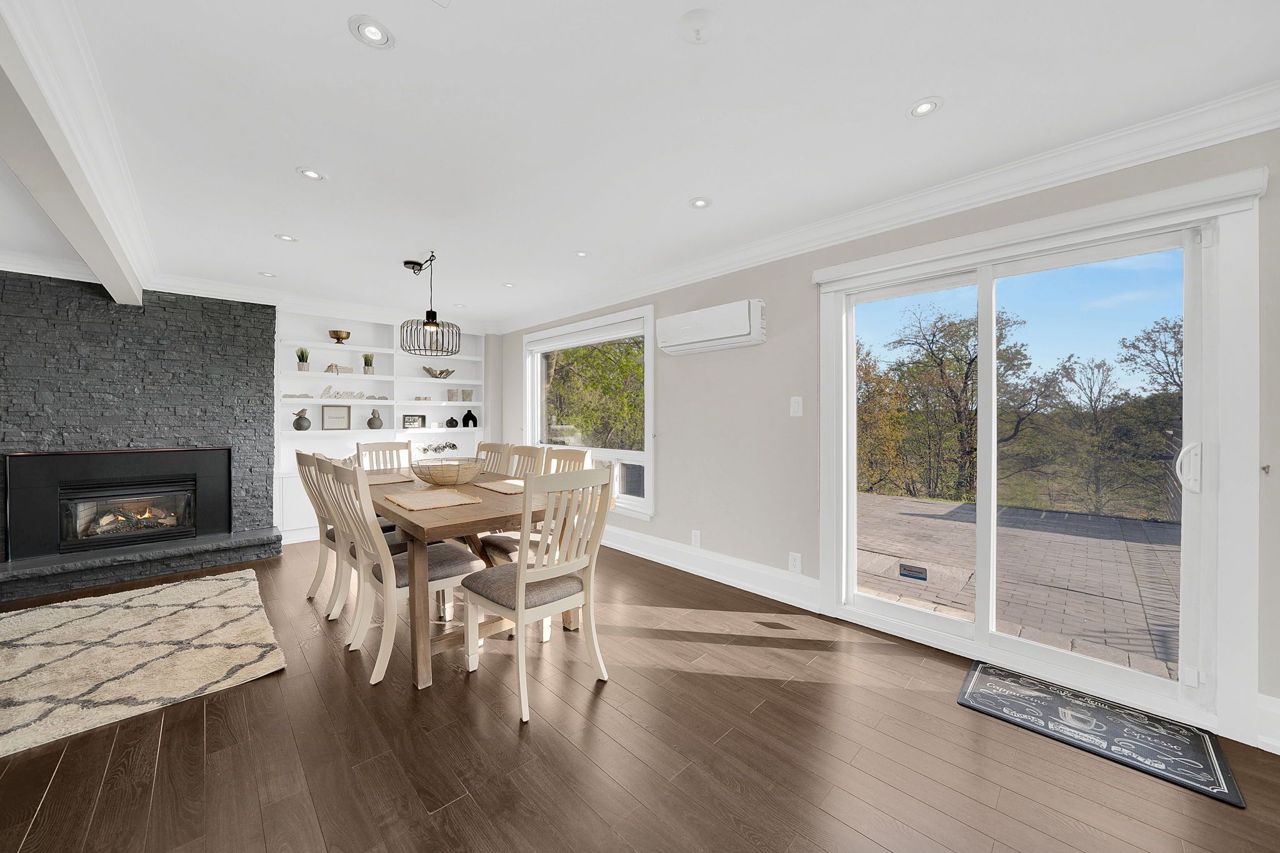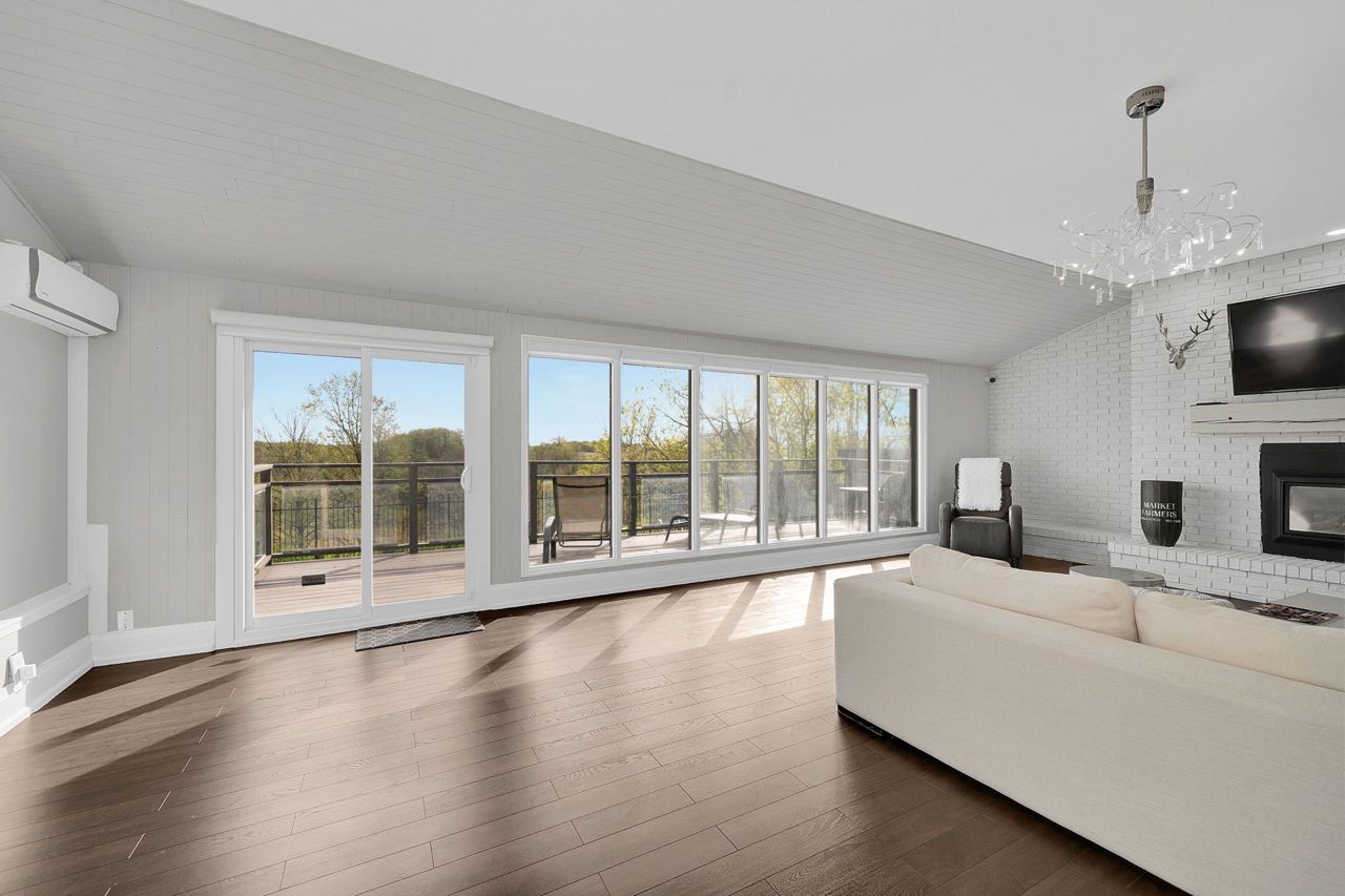 金市一条私人小路上的迷人河畔地块。这栋经过装修的四卧室独立式住宅提供了一个非常独特而如画的氛围。这个绝佳的机会提供约占满有一英亩的地块,带有装修完成的住宅,主楼层采用开放式概念设计,配备了石英台面的新厨房,中央岛屿,早餐吧台,新的不锈钢电器和抽油烟机。宽敞的起居/餐厅,落地到天花板的石材燃气壁炉,大面积的景观窗,盆灯和内置书架,以及完全翻新的楼上浴室。按原样享受,或者建造您梦想中的家,享受类似于Muskoka的景色。距离400高速公路只需几秒钟。机会是无限的。**额外设施**:现有不锈钢冰箱,现有洗碗机,现有炉灶,现有洗衣机和烘干机,现有电气灯具,现有窗帘,车库门开启器,现有游泳池设备。