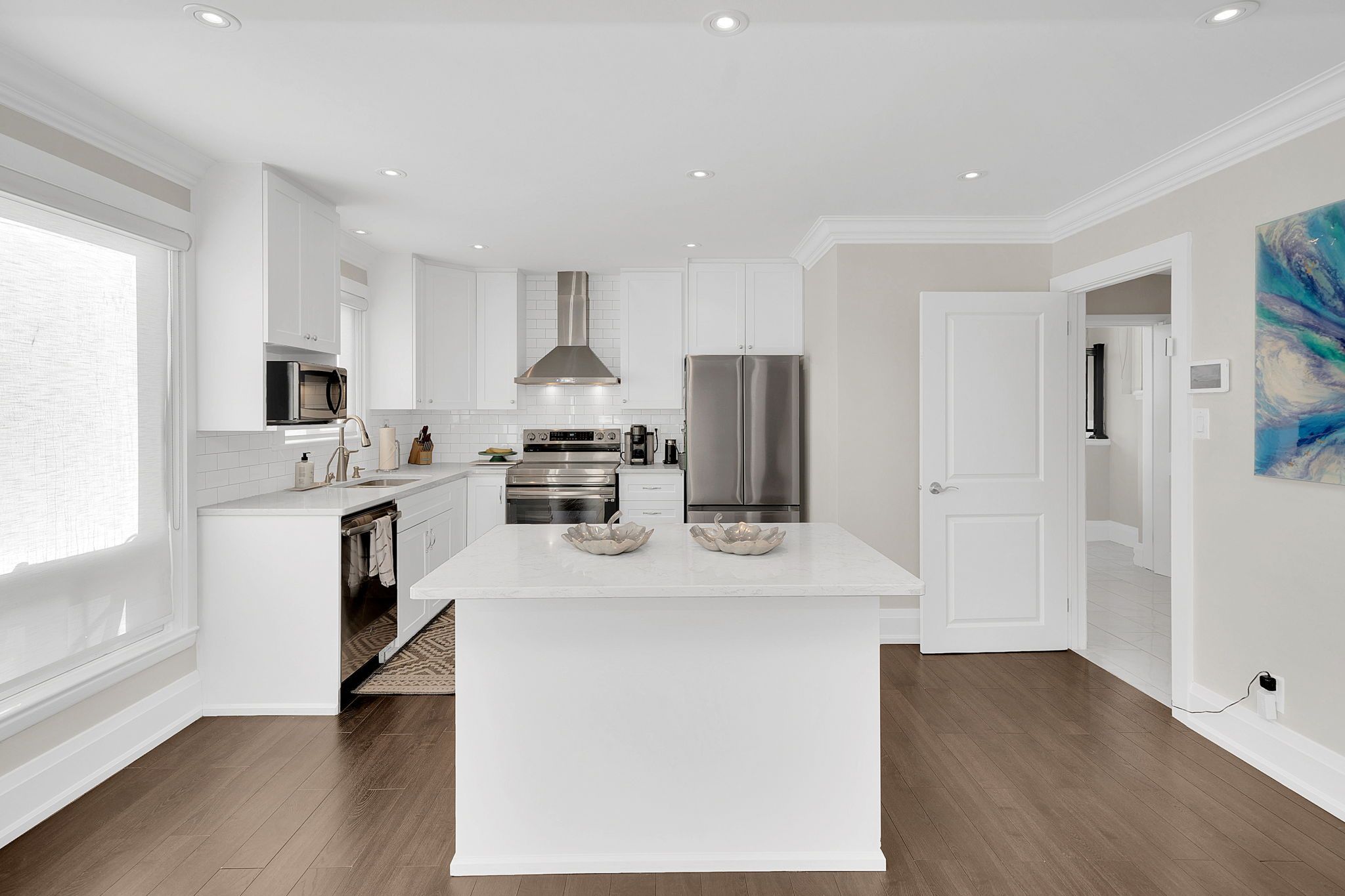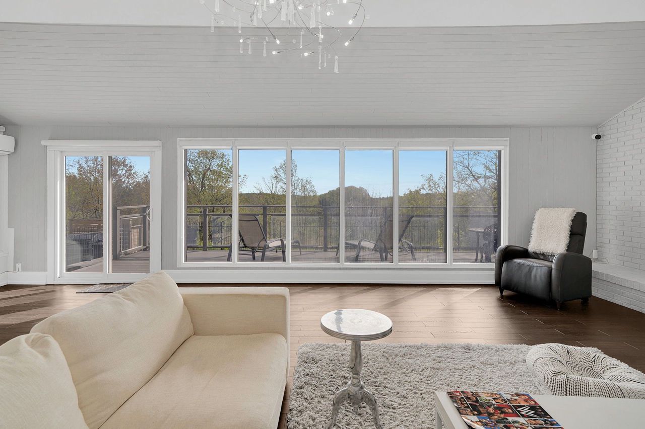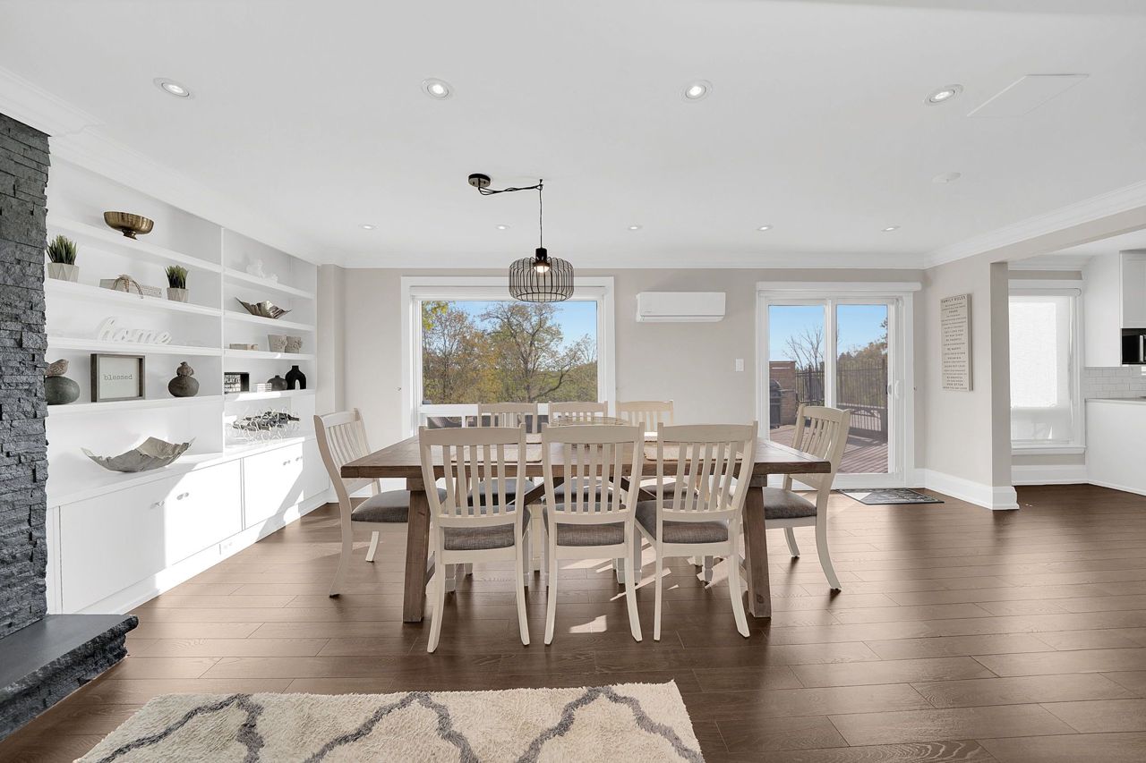 金市一条私人小路上的迷人河畔地块。这栋经过装修的四卧室独立式住宅提供了一个非常独特而如画的氛围。这个绝佳的机会提供约占满有一英亩的地块,带有装修完成的住宅,主楼层采用开放式概念设计,配备了石英台面的新厨房,中央岛屿,早餐吧台,新的不锈钢电器和抽油烟机。宽敞的起居/餐厅,落地到天花板的石材燃气壁炉,大面积的景观窗,盆灯和内置书架,以及完全翻新的楼上浴室。按原样享受,或者建造您梦想中的家,享受类似于Muskoka的景色。距离400高速公路只需几秒钟。机会是无限的。**额外设施**:现有不锈钢冰箱,现有洗碗机,现有炉灶,现有洗衣机和烘干机,现有电气灯具,现有窗帘,车库门开启器,现有游泳池设备。