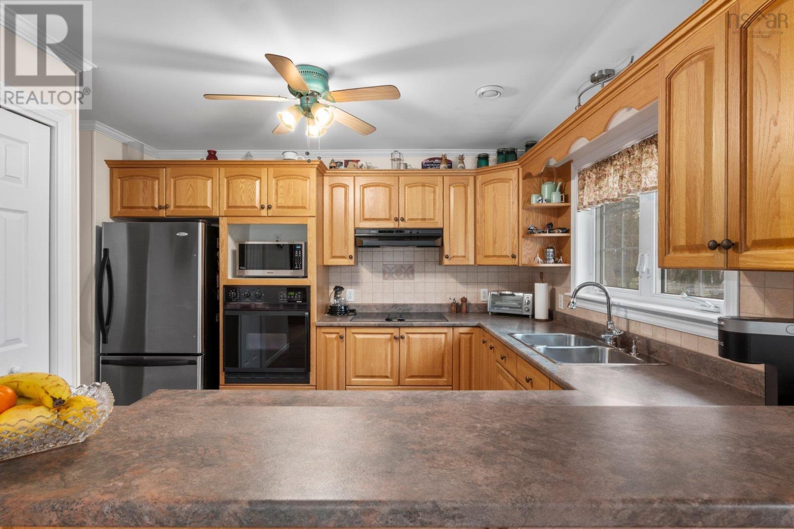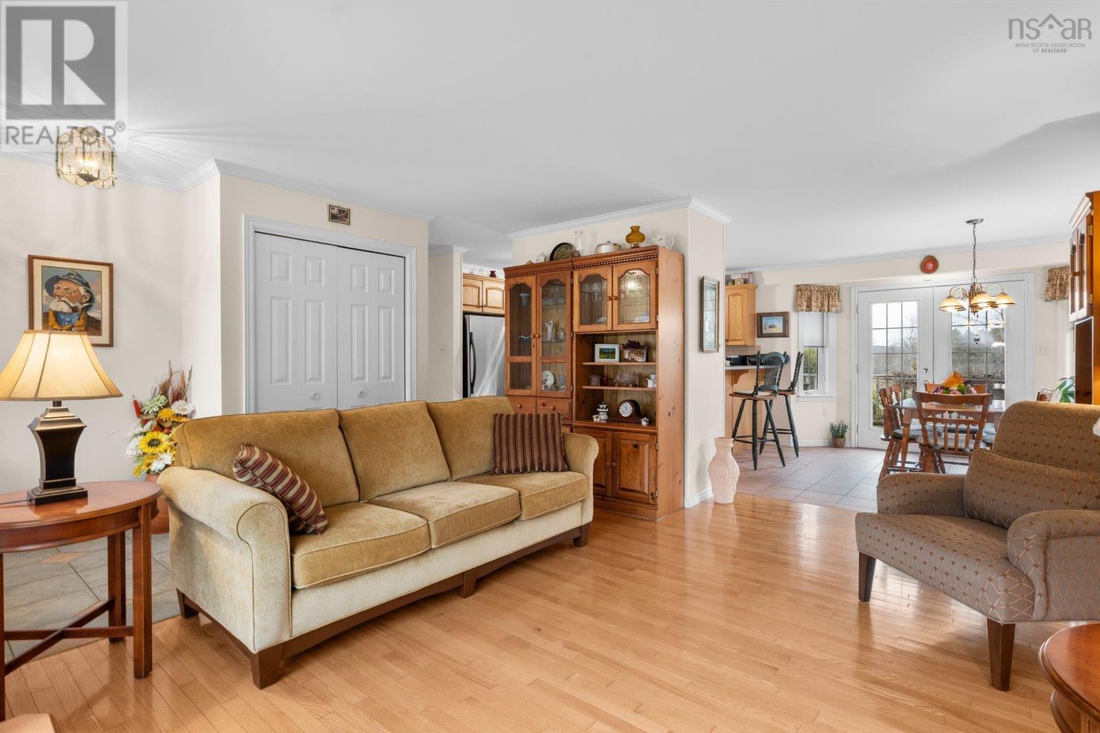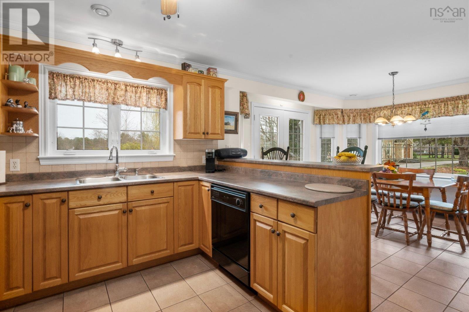 Beautifully designed and ideally located in the heart of Kingston, this 3-bedroom, 2-bath bungalow with attached garage and mostly finished basement offers a rare blend of comfort, space, and lifestyle. Can you say FORE?! This large, landscaped lot backs directly onto the Rails to Trails and the 6th fairway of Greenwood Golf Club - a perfect setting for golf lovers and outdoor enthusiasts alike. Inside, the thoughtful floor plan places spacious principal rooms at one end of the home and the bedrooms, baths, and laundry at the other. The primary suite features an open-concept dressing area with built-in closets leading into a private ensuite with walk-in shower. Two additional bedrooms - each with double closets - share a second full bath with a tub/shower combo. The main-floor laundry room connects directly to the garage, which leads into a sprawling basement featuring a huge family room with oil drip stove, two separate rooms ideal for an office, gym, or hobby space, two utility rooms, and a smartly designed cold room for all your preserving needs. This home is wired with a generator panel for peace of mind during outages and is connected to municipal sewer. Outside, you're greeted by strong curb appeal with a paved driveway, tidy landscaping, and a welcoming front verandah. The backyard includes a 12'2 x 10'3 shed and a deck off the dining area - solidly built but ready for a little love. Conveniently located on the main Kings Transit bus route, just minutes from schools, shopping, and 14 Wing Greenwood, with easy access to Middleton, Berwick, Kentville, and under 1.5 hours to Halifax. (id:61201)