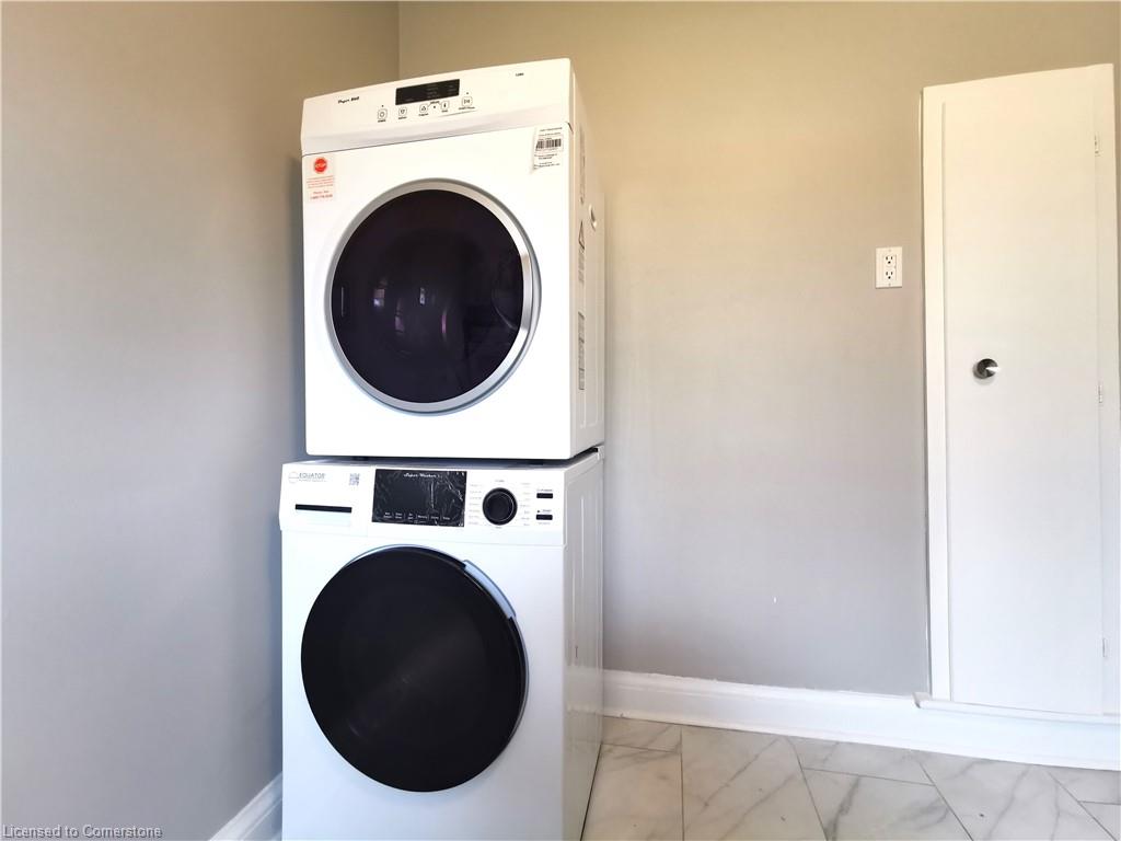 Great layout with two bedrooms , kitchen, four-piece bathroom, and specious living room with large windows allowing lots of natural light. High-quality laminate floor throughout and new refrigerator, washer, and dryer. Private main entrances/exit (not shared).Two parking spots and Internet are included in the rent. $1,950 + hydro (Separate Hydrometer) (Shared 40% of water and gas bills).